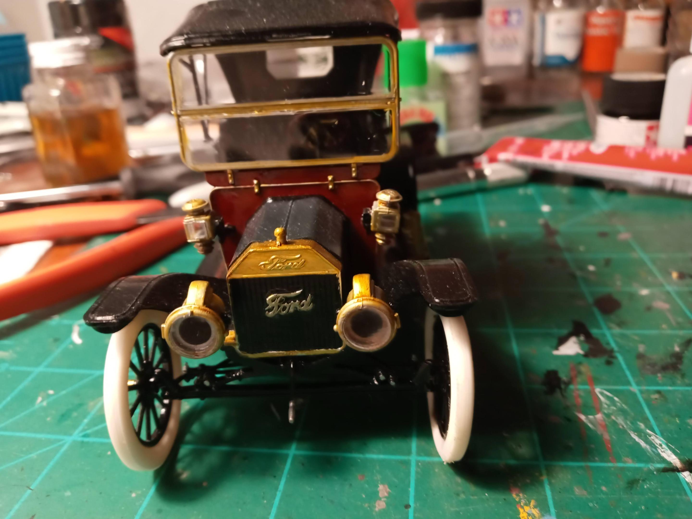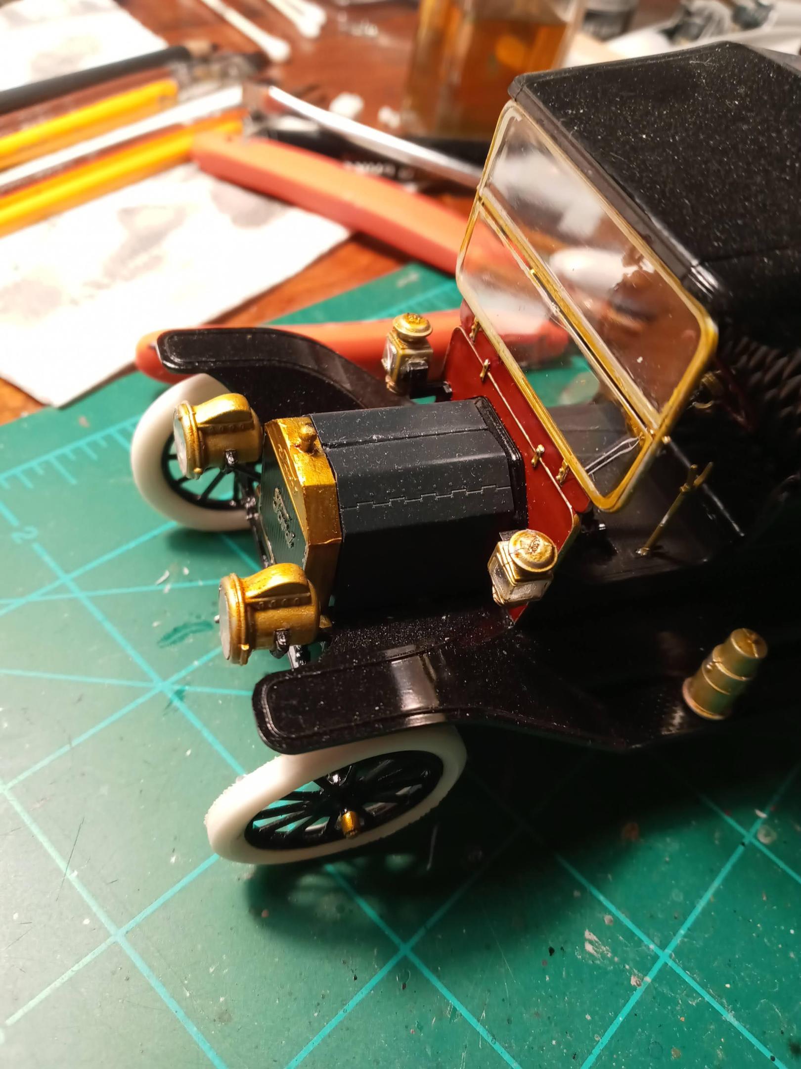 The last ICM Model T I built I used bare metal foil on the radiator, Model Master Aluminum metalizer on the lights & firewall band. I then went over all these with a mix of Tamiya 80% Clear Yellow & 20% Clear orange. Not perfect but looks pretty close to me. -