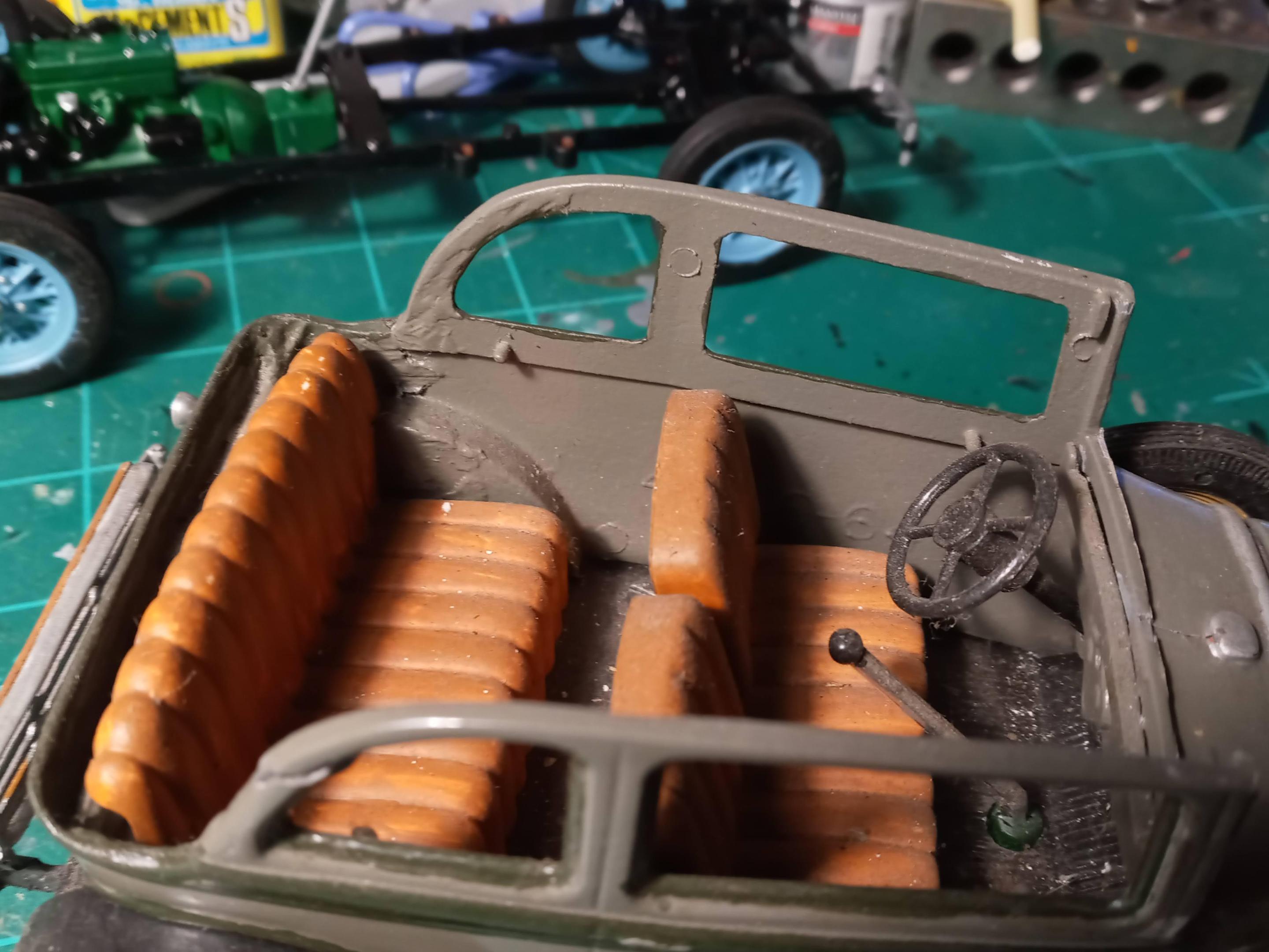 Here's the final installment of this build thread, ended up going back to work so that cut my "covid quarantine build" short. Here's a few shots to bring it up to date. I used the kit windows as patterns to cut new ones from a fresh sheet of clear acetate and glued them in with Humbrol Clearfix. At this stage I have the interior done and painted window frames to simulate the original car even though you won't see much when the roof is installed.
