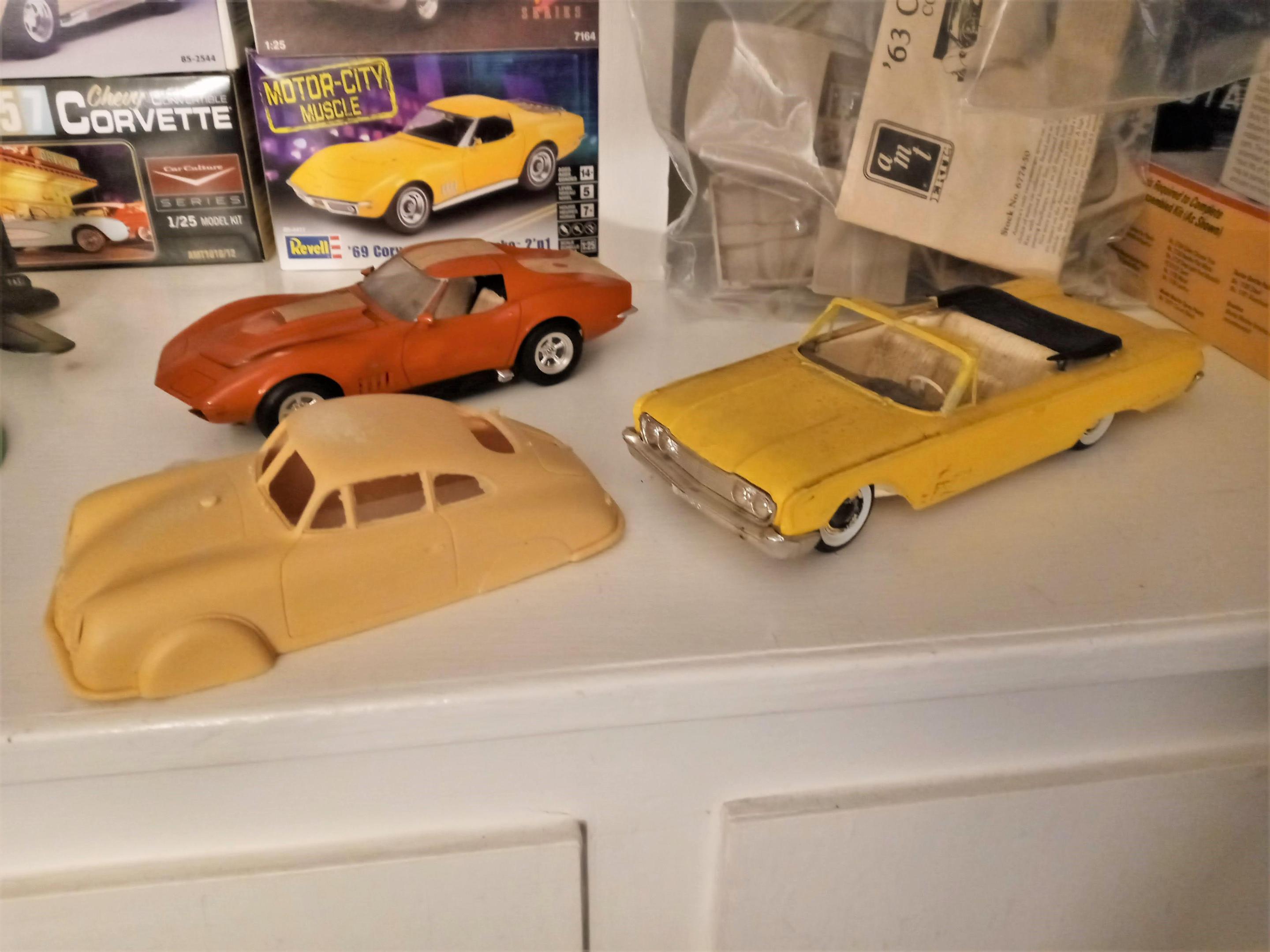 My haul from the Southlandz show in Largo, FL. The screwbottom '60 Galaxie came from the $5 bin as did the '68 Vette and '63 Vette kit in the ziploc bag. The Hot Rod Ford Set I last built as a kid in 1988- it was nice to see another set reasonably priced! I posted some photos of the show in this thread-