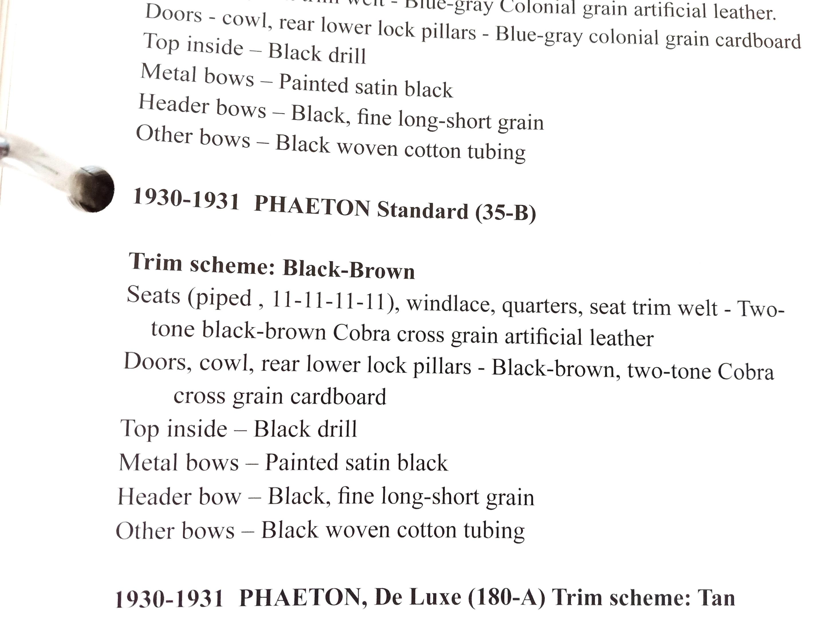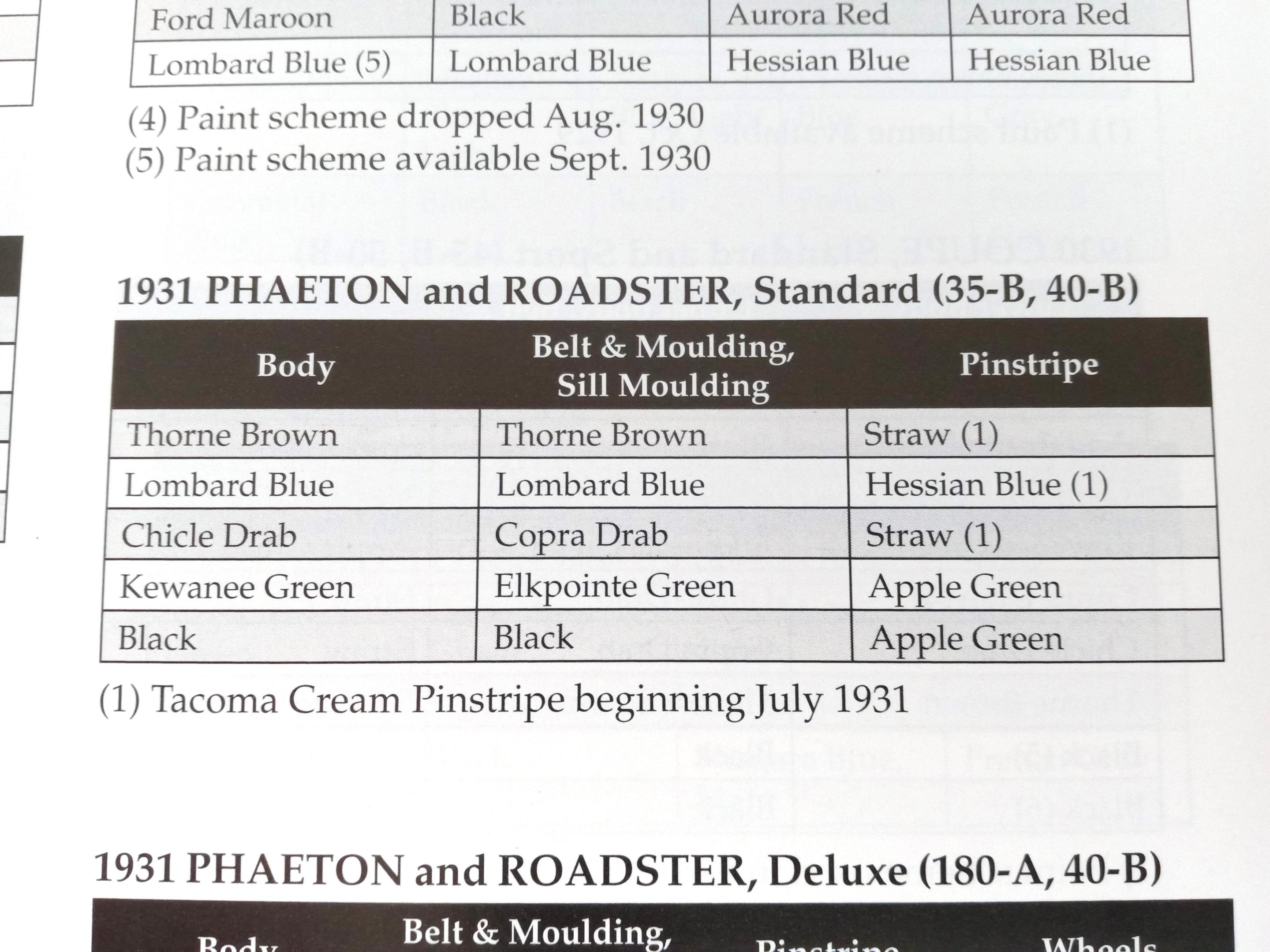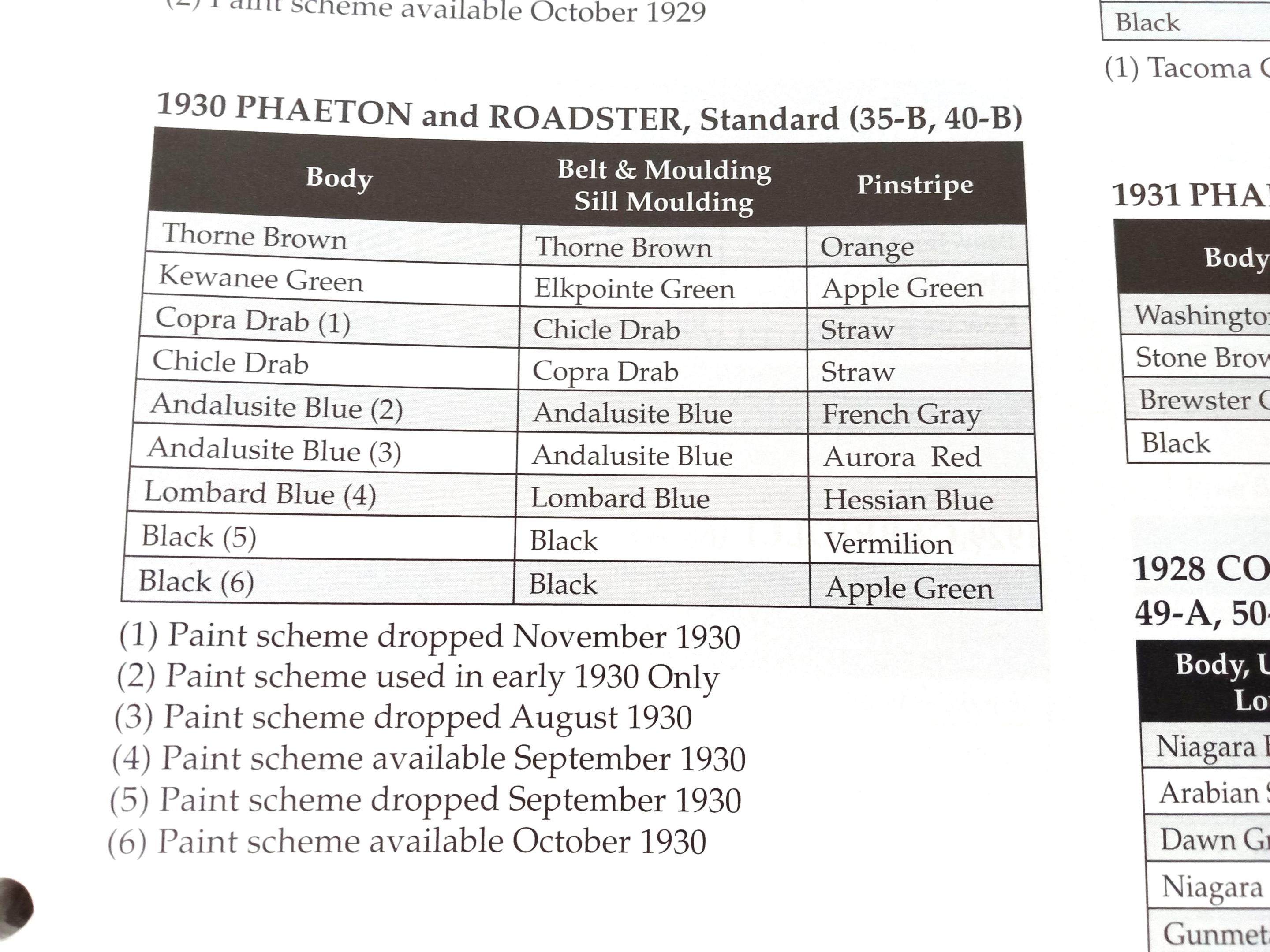 Since I had this laying on my desk already, thought I'd post the color schemes available for the 1930-31 Standard Phaeton for those interested. The Standards is a thick compendium that tells you anything you want to know about Model A & AA's.