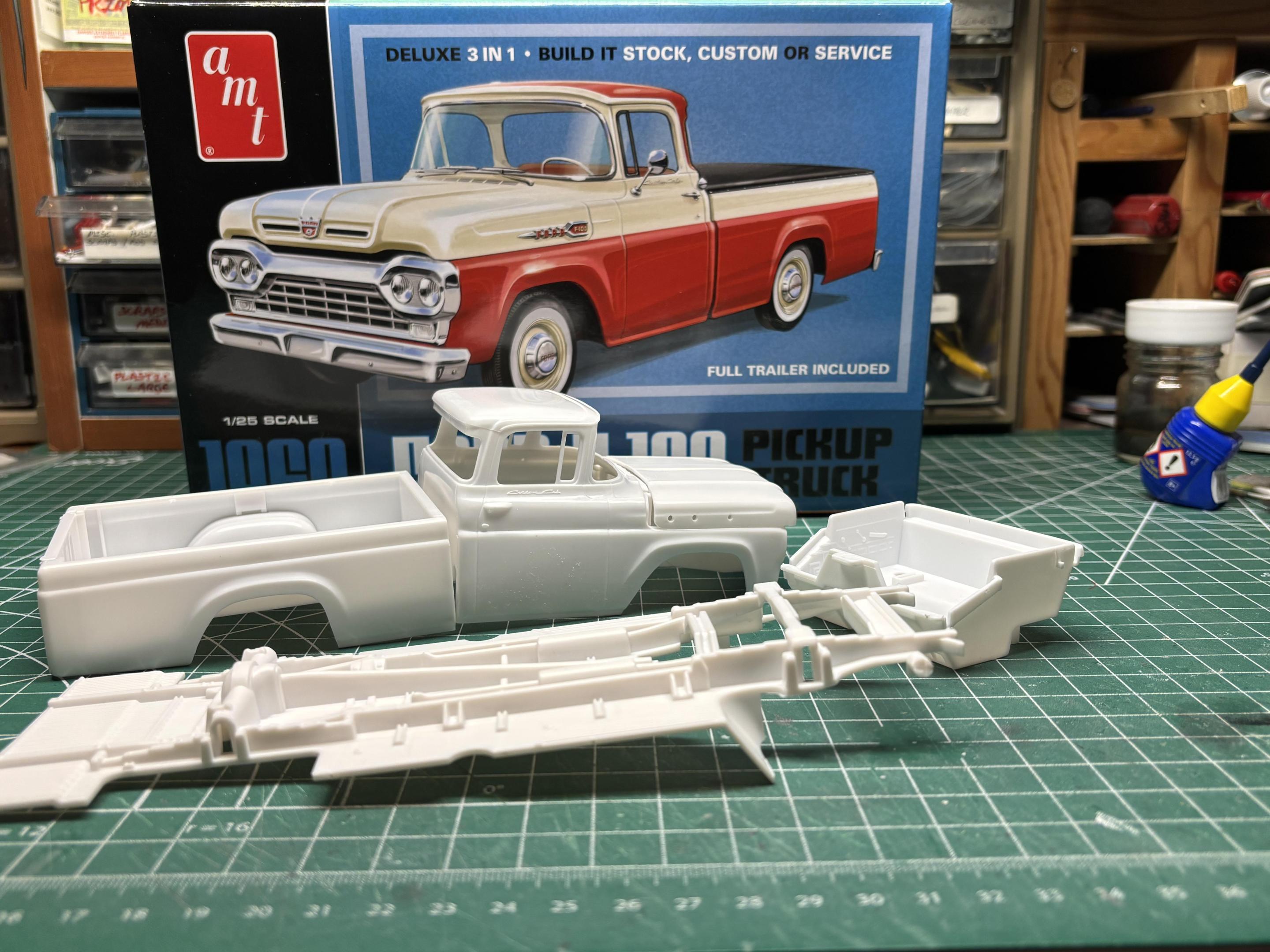 Hi all, Not exactly sure where to start here… I hope that you will take a minute to read this before you go further. It has been just over 2 years since we lost our friend Plowboy (Roger Hayes). Anyone that knows me here would know that I REALLY liked Roger’s builds. Apart from his amazing sense of style, I liked his diverse interest. His builds were always well thought out, cleanly built, and his colour choices were often understated and unique. If you are not familiar with Roger’s work, I would encourage you to check out some of his threads on the forum. His WIP threads always had something useful to add to your, “I gotta try that” arsenal. Man he was knowledgeable, and good… I learned a ton from him, and he made me a much better builder. I have had a tribute build in my mind for 2 years now. Actually, 3 builds, but I will start with this one. My plan here is to build a tribute, but more importantly, showcase some of Roger’s work. I will be showing a bunch of his work on this thread. I also encourage anyone who wants to share photos of their favourite builds, or tips from Roger, or links to one of his threads, to please do so. This build is about Roger!! We often talk here about not “hijacking” someone’s thread, but for this one I’m encouraging it!! I sat down at my desk Wednesday night (Jan 15th) to come up with a plan. About an hour and a half later, I had a fairly good idea of exactly how to proceed. Colours were an obvious no brainer too. I then sat down with my IPad and went back over some of Roger’s builds, realizing that I had missed some of his earlier posts. (I joined the forum about a year after Roger) As I read thru one of his 60 Ford builds I began smiling, many of the things I planned to do just minutes ago, he had done! I will share more of that as the build progresses. So… my plan: 1960 Ford shop truck. Here’s the starting point… As always, thanks for having a look, and all comments welcome. I will have some progress soon. Cheers, Steve
