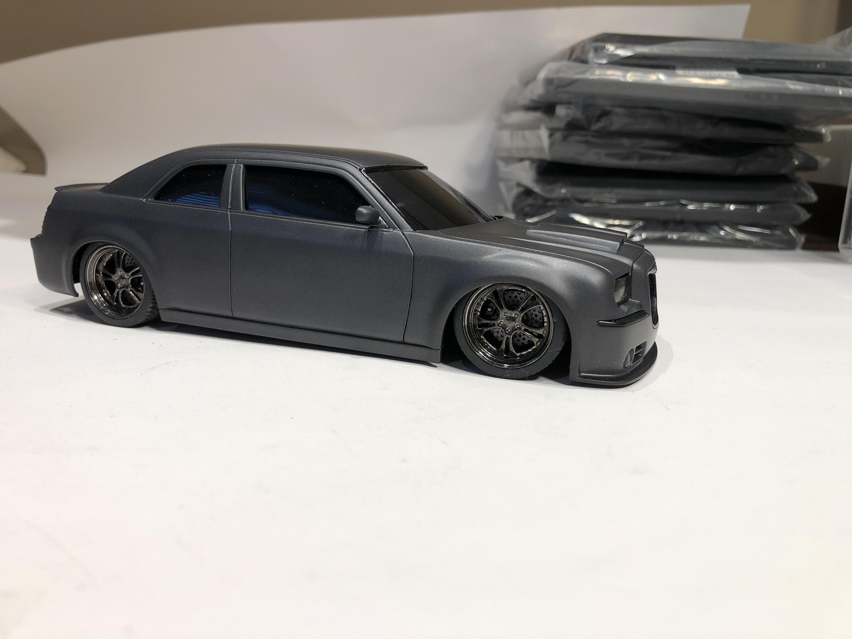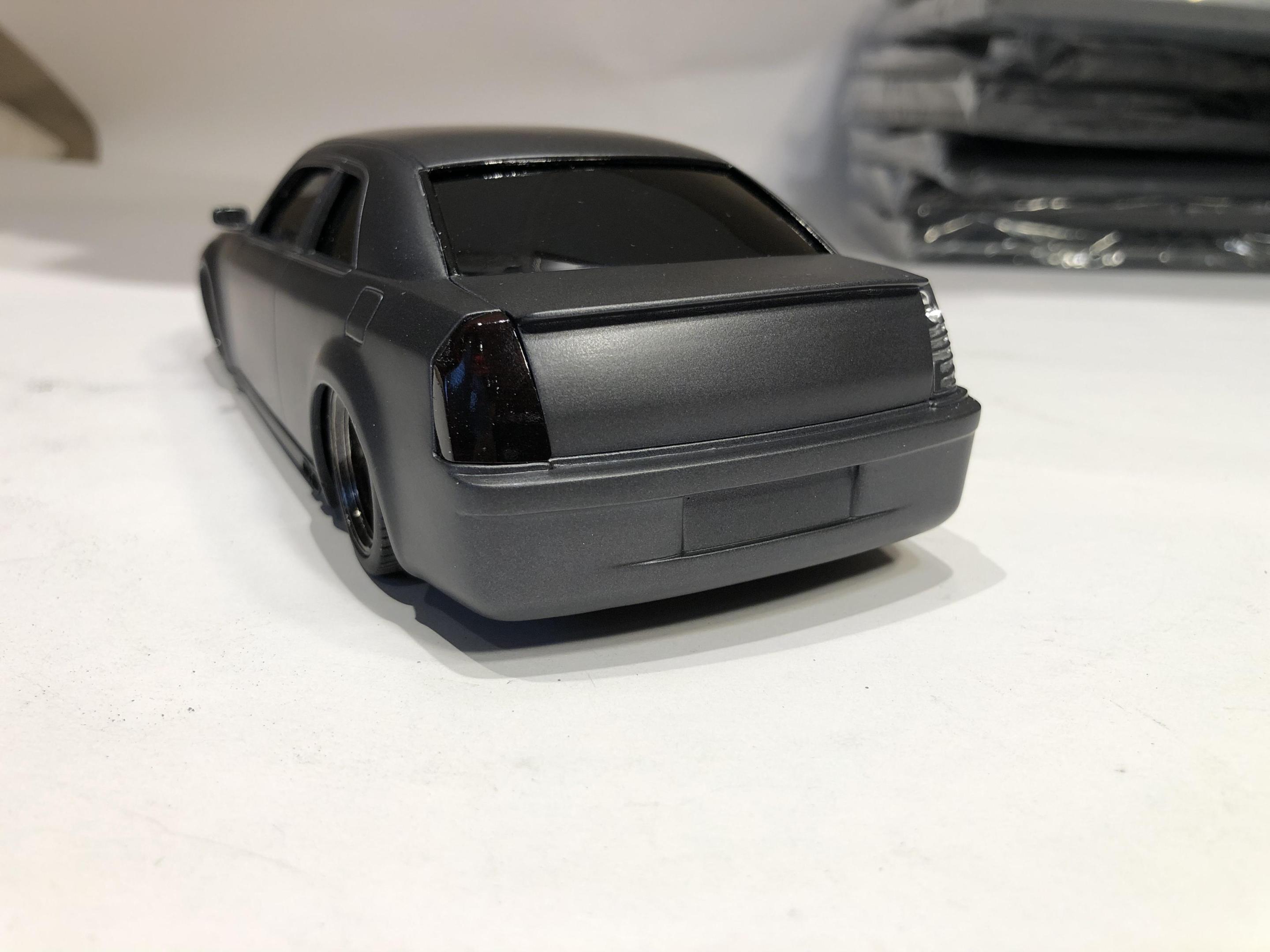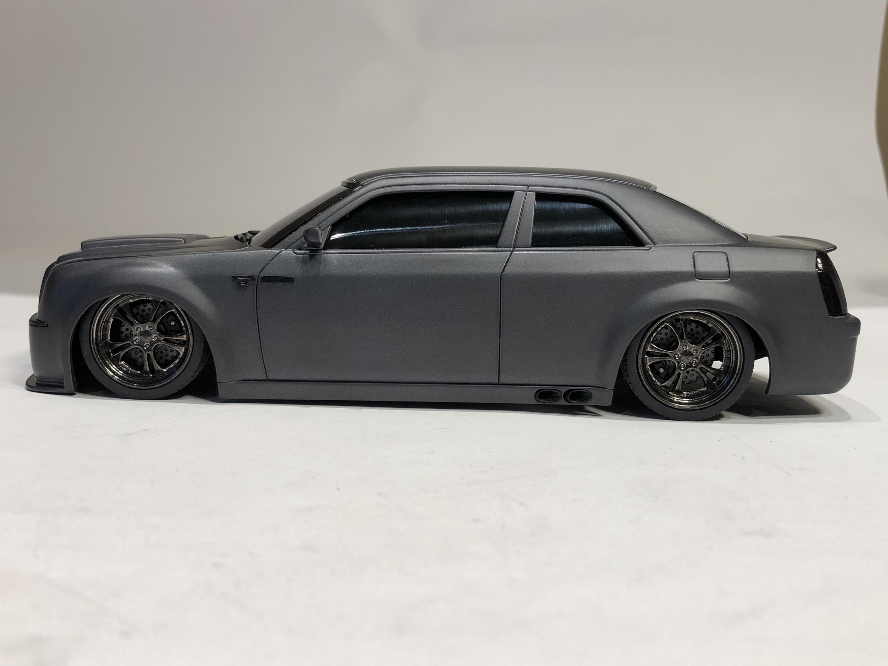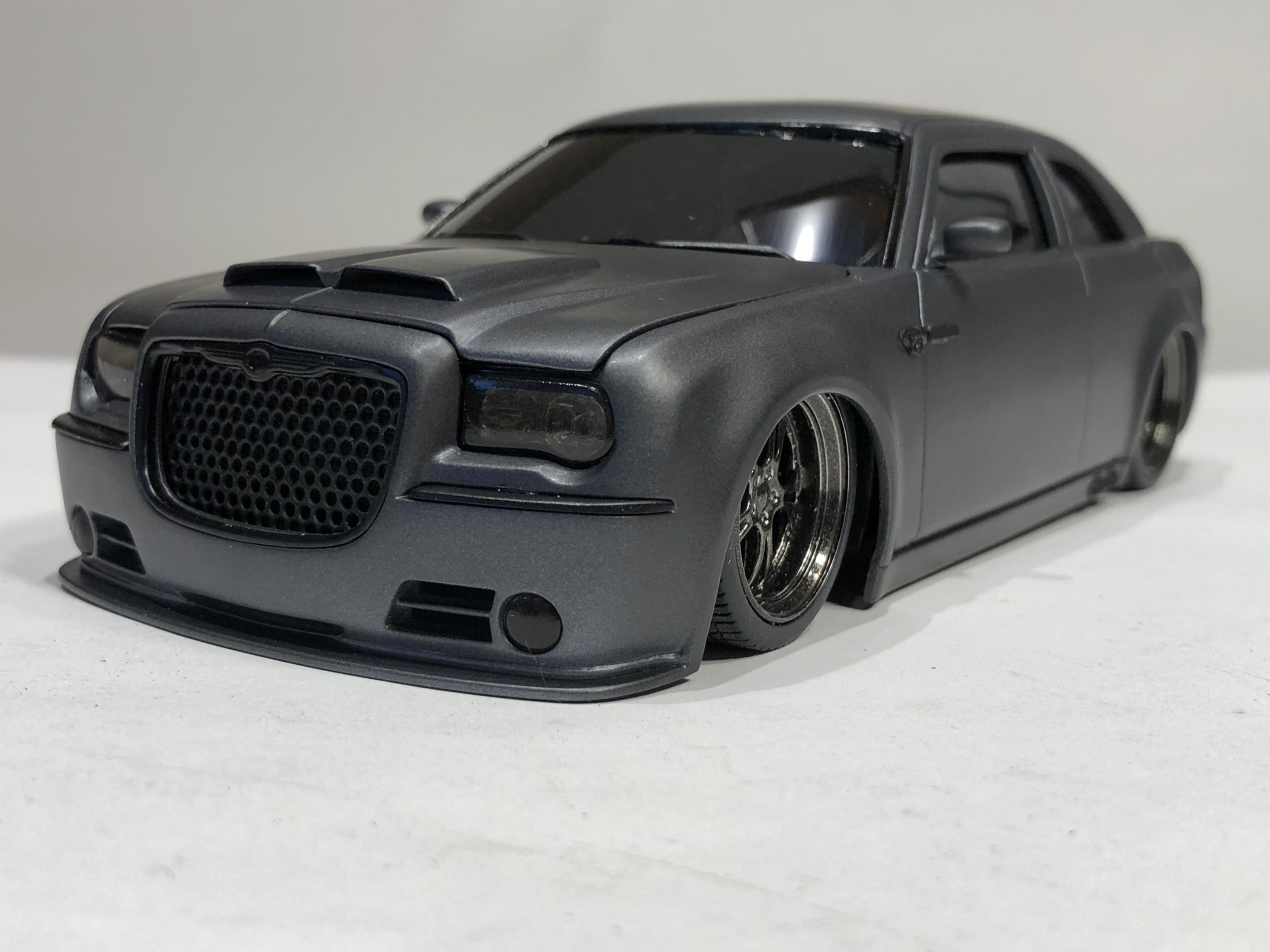 Hi all, I have had the idea for this build for years and finally got around to building it. A couple of things I like about these cars, they have a “gangster” look about them, and they have a slightly chopped top look straight out of the factory. IMO they have stood the test of time. The idea was to give it a much more aggressive look, and convert it to a 2 door. The first photo was the main inspiration. So…. Convert the 4dr into a 2dr, and add suicide door handles. Remove the body molding, add a splitter and rear spoiler, mold the front and rear bumpers into the body. The front bumperettes were thinned and “tucked in” flush, the grill is speaker grill screen. Open up the lower front grilles, the 300c logo was removed from the side trim, sanded thin, then installed higher on the body by the door handle. Side exit exhaust in the rocker panel. Wheels, tires and brakes are Pegasus, wheels have several coats of smoke. All the trim is semi gloss black. The paint is Tamiya TS100 semi gloss gunmetal, followed with a light coat of smoke, then flat clear. All lenses have multiple coats of smoke. This is just a simple curbside build with no interior, and only the bottom half of the engine. Unfortunately, I didn’t notice the warp in the hood til it was painted, I decided to live it. Thanks for having a look, all comments welcome. Inspiration…. My vision…. A big thank you to those of you that followed along on the WIP. Your input and comments were inspirational and very much appreciated. Cheers, Steve