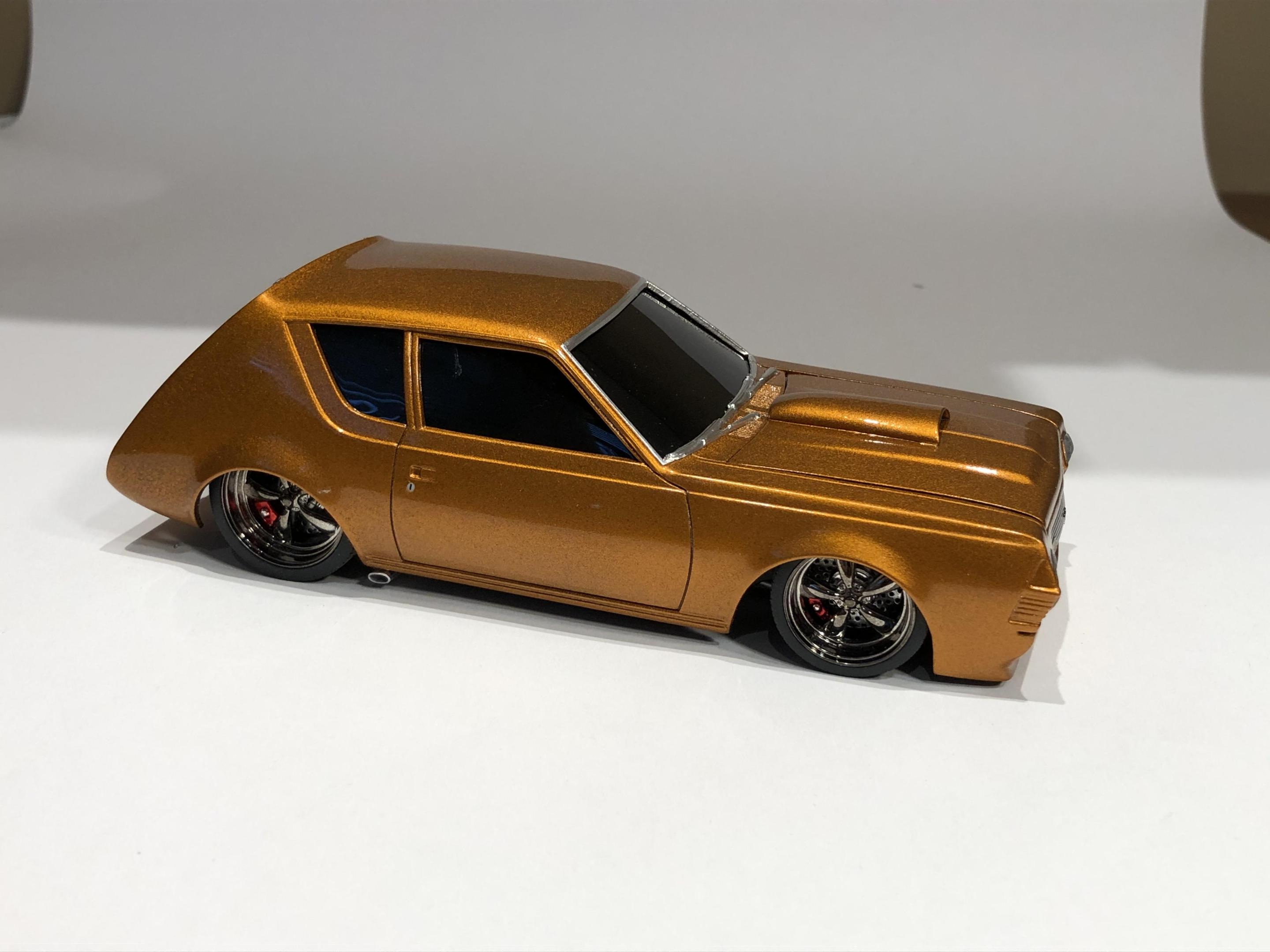 Another update. I have most of the chassis painted, and a majority of it assembled. The heat shields were treated to 6-8 coats of smoke. The only “chrome” on this build will be the side view mirrors. Headlight and taillights were also treated to multiple coats of smoke. (No photos yet) I had to re-stock my smoke supply today!! The body work is really close now. Side view mirrors are installed. The plan is for side exit exhaust in the rocker panel, after that it will be a final sand, one more coat of primer and paint. As always thanks for having a look and comments welcome.