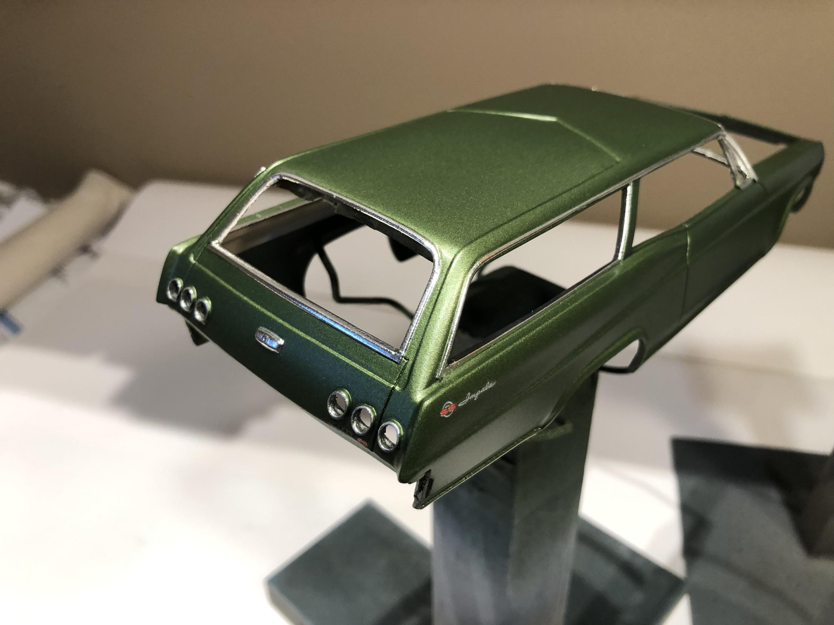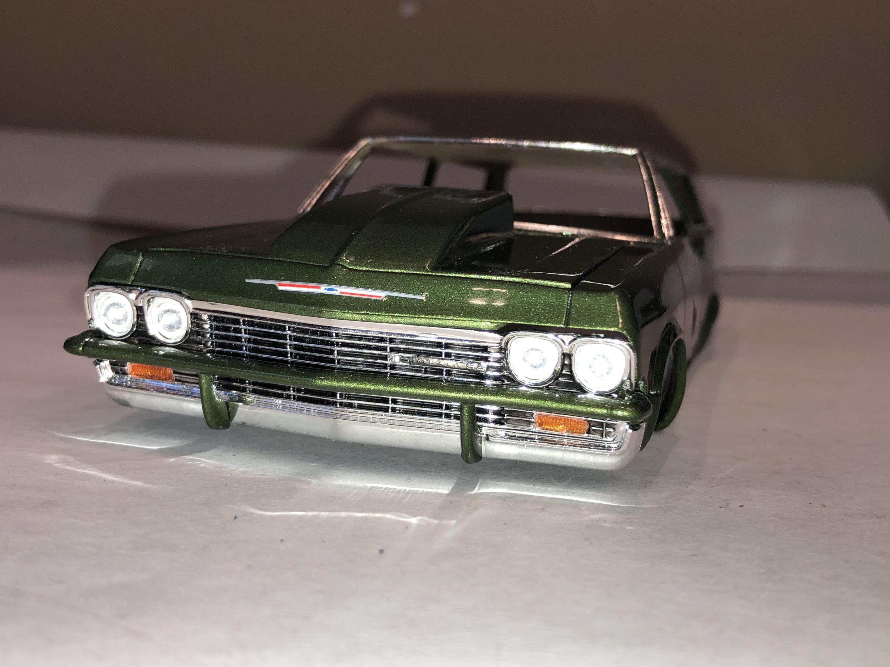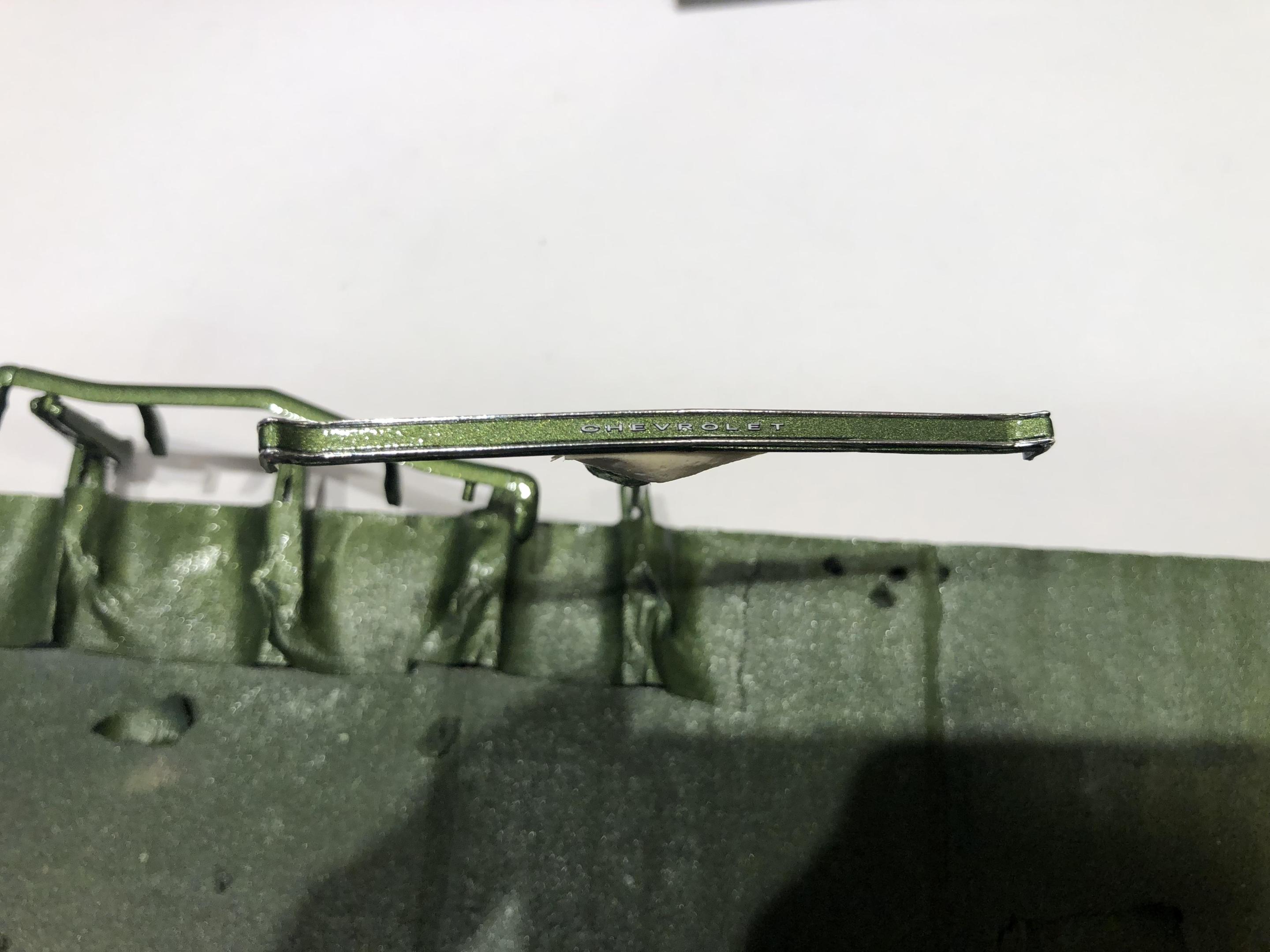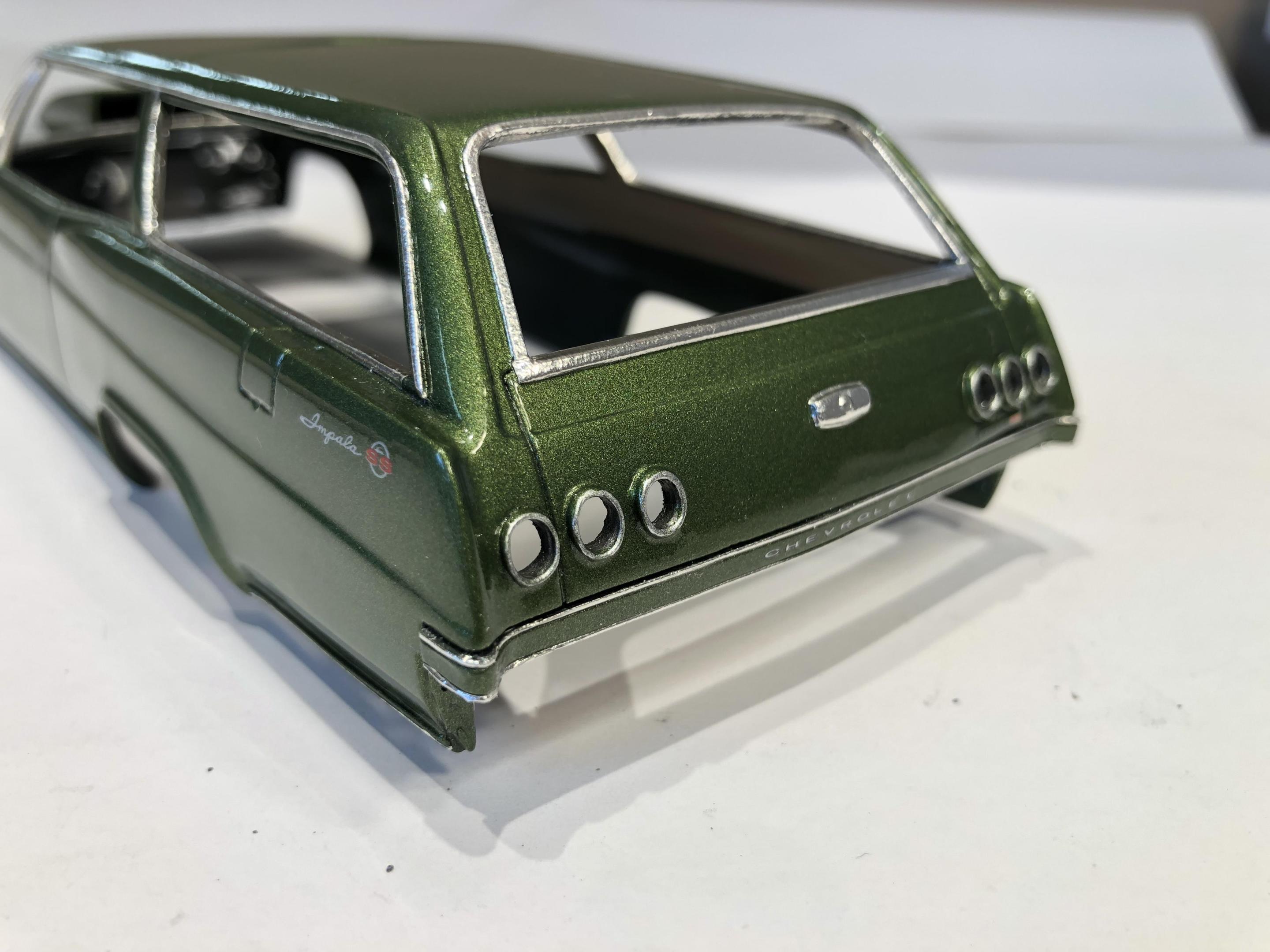 Hi guys, close to being on schedule this week. Foiling is complete. As this is a custom, I put my own spin on how much chrome and where. I wanted some chrome, but not too much. Not my best foil job, hoping the clear will help. I used Impala decals for a subtle hit of colour. Molotow pen used for chrome tail light bezels. I played with lots of ideas for modified rear fascia above bumper. In the end decided on body colour, framed with foil trim, and a Chevrolet decal. This was a tricky piece of foiling! I’m happy with how it turned out. This photo is after 2 coats of clear, I will do one or 2 more. And… started getting clear on some parts. So front bumper, rear facia and hood all have 2-3 coats. The clear really makes the colour pop!! Side by side with, and without clear. After another coat and some polishing, should look killer. Hoping all clear will be done tomorrow, I’ll let it cure a day or 2, then polish. Thanks for looking!