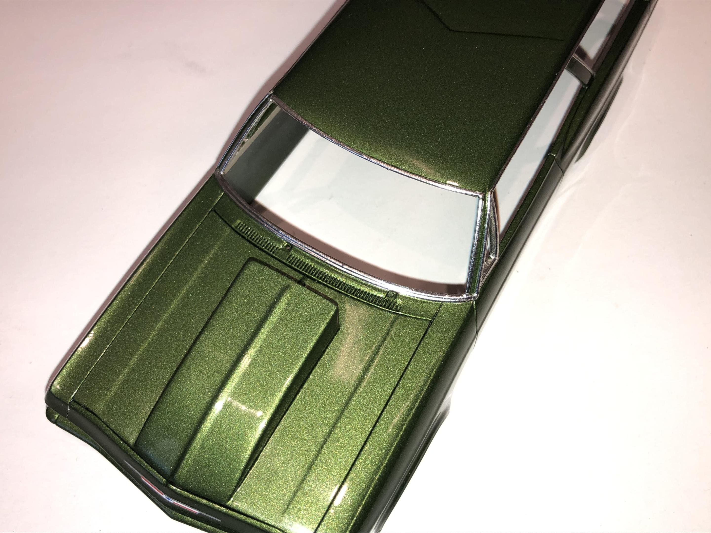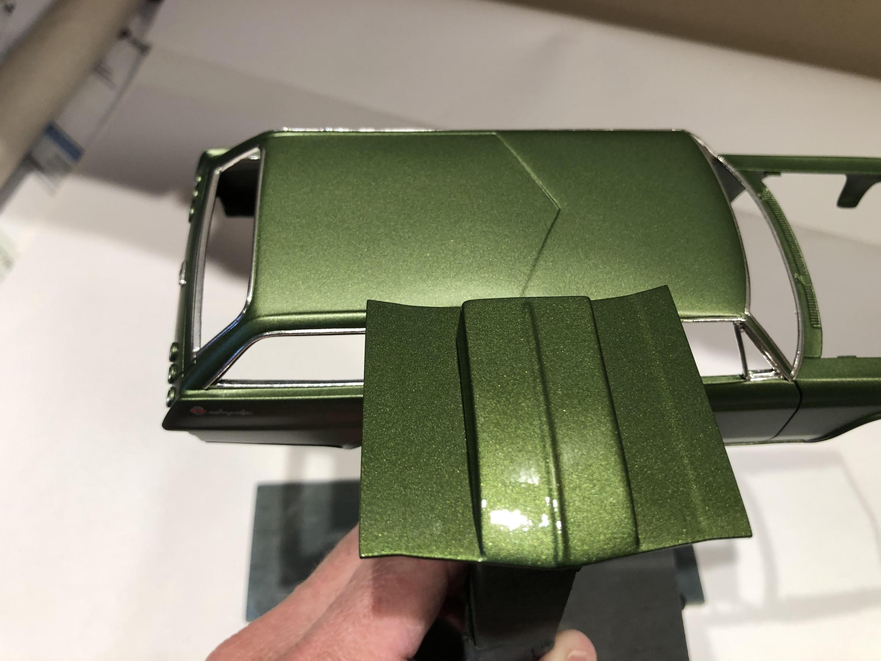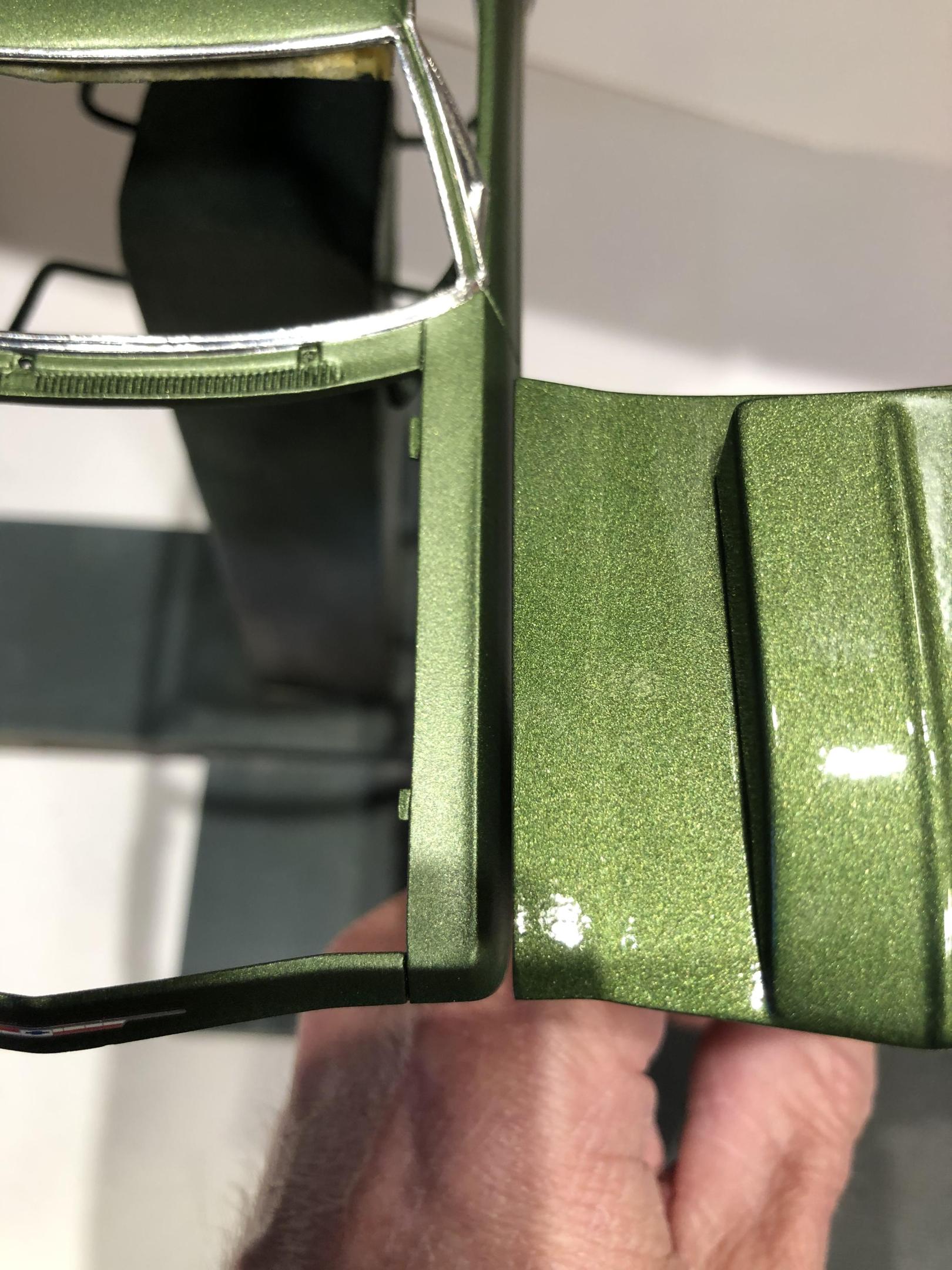 Hi David, always good to hear from you. With the chrome, I just didn’t want it to look too “heavy”, but the chrome looks great with the deep green paint. I went back and forth on that, in the end I wish I had sanded the moulding off… No chrome around the wheel wells. Thanks Mike! Got the body done yesterday, it looks really good. Hi Steve, thanks for the input, much appreciated sir. Thankfully the ink did not bleed, it was fully dry, and the first two coats of clear were light. It did lose a bit of the shine, which I thought might happen. I may give it another coat with the pen. Good thoughts on the engine height. I probably could have gotten away with the lower cowl scoop that way, but then the engine might have looked less “impressive”. Hindsight… man it would be nice to have that at the beginning of build!! Haha ? Hello Chaz, thanks for the encouragement, I’m trying to get this one to the finish line. I’m starting to run out of parts to add, so that’s a good sign. Cheers, Steve