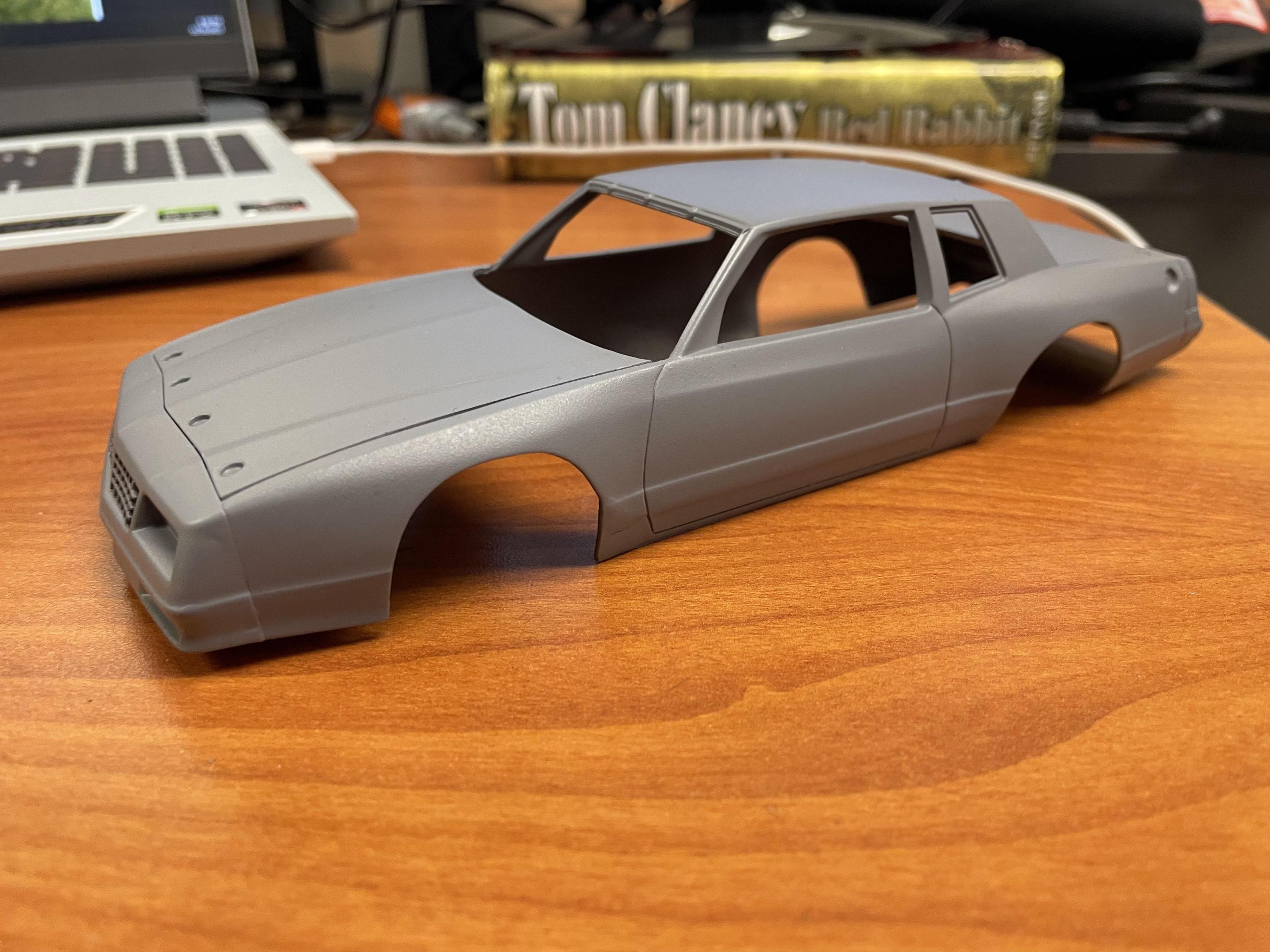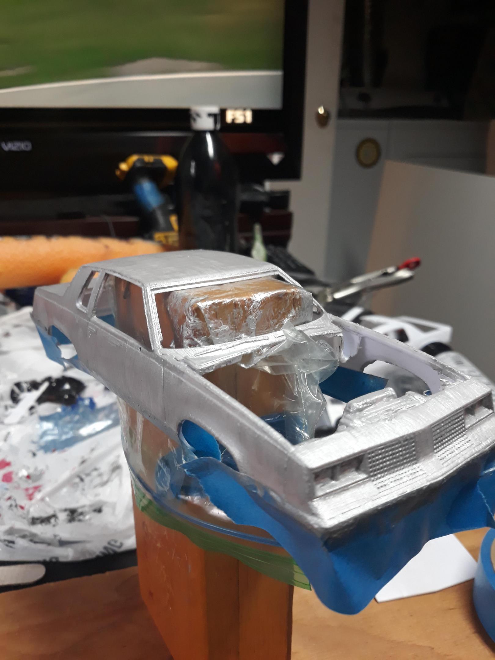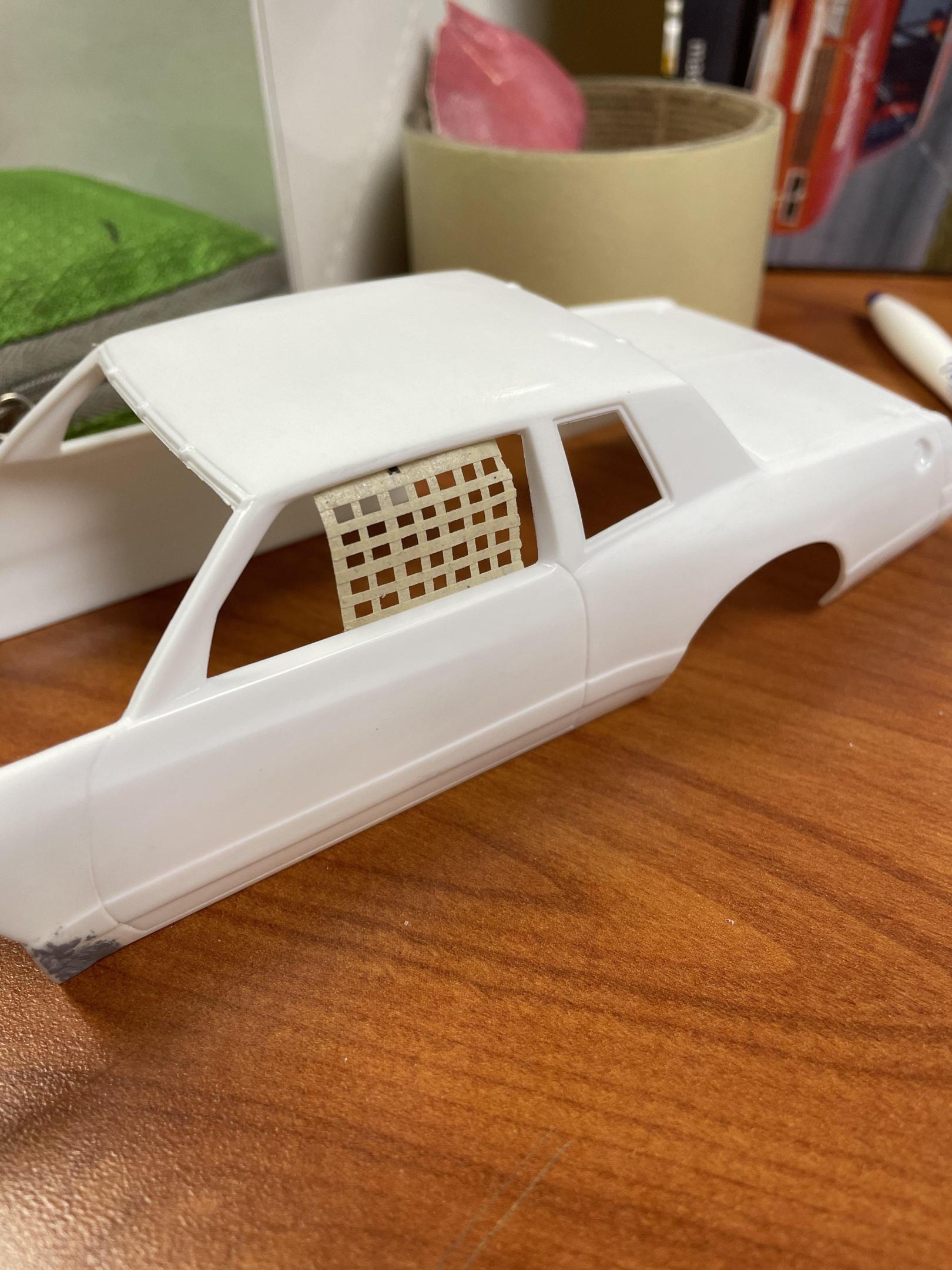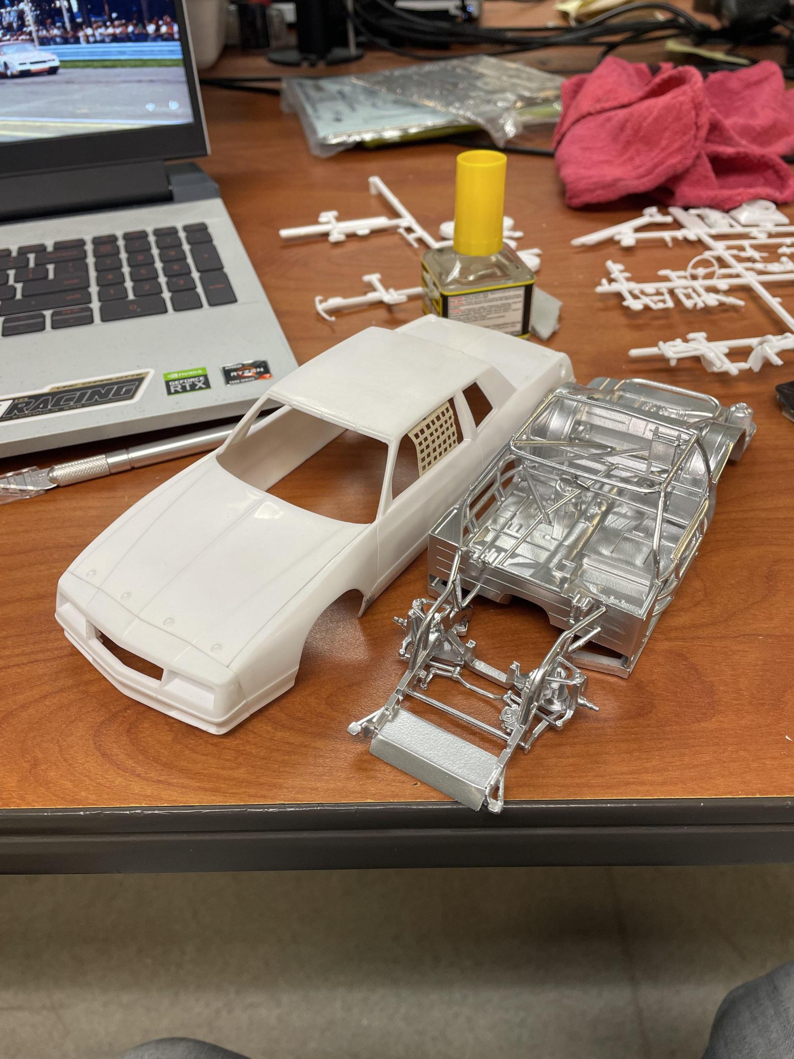 After sitting sideline watching model car videos, felt it was time to get back into the hobby with all new knowledge. 1983 AJ Foyt Monte Carlo used as a base with rims, exhaust, and grill insert bought from Salvinos'. Window net was made from masking tape per a video from Clay Kemp. Decals were from an independent seller. Front wheel wells were extended using a sheet of styrene and some putty, quite happy with how they turned out. I regret not putting down a base white coat on the rims before using Molotow chrome pen, but it will have to suffice. Body was shot with 2 coats of primer, 3 coats of white, and currently drying is 1 of 2 clear coats before decals are applied. All sprays are rattle can and the white is Dupli-Color GM bright white. If you have any questions on methods, paints, or assembly I'm more than willing to share. Thanks for looking!