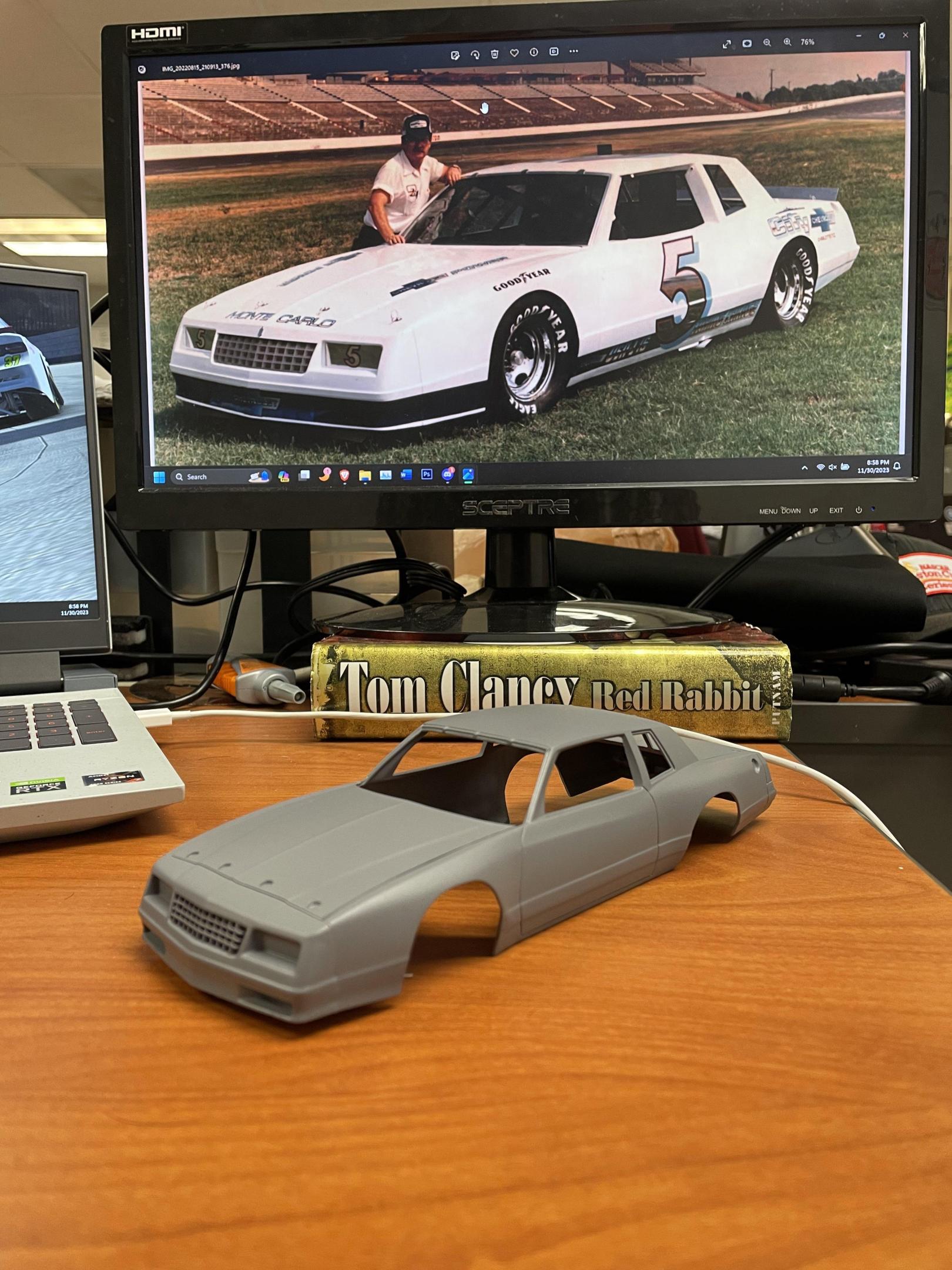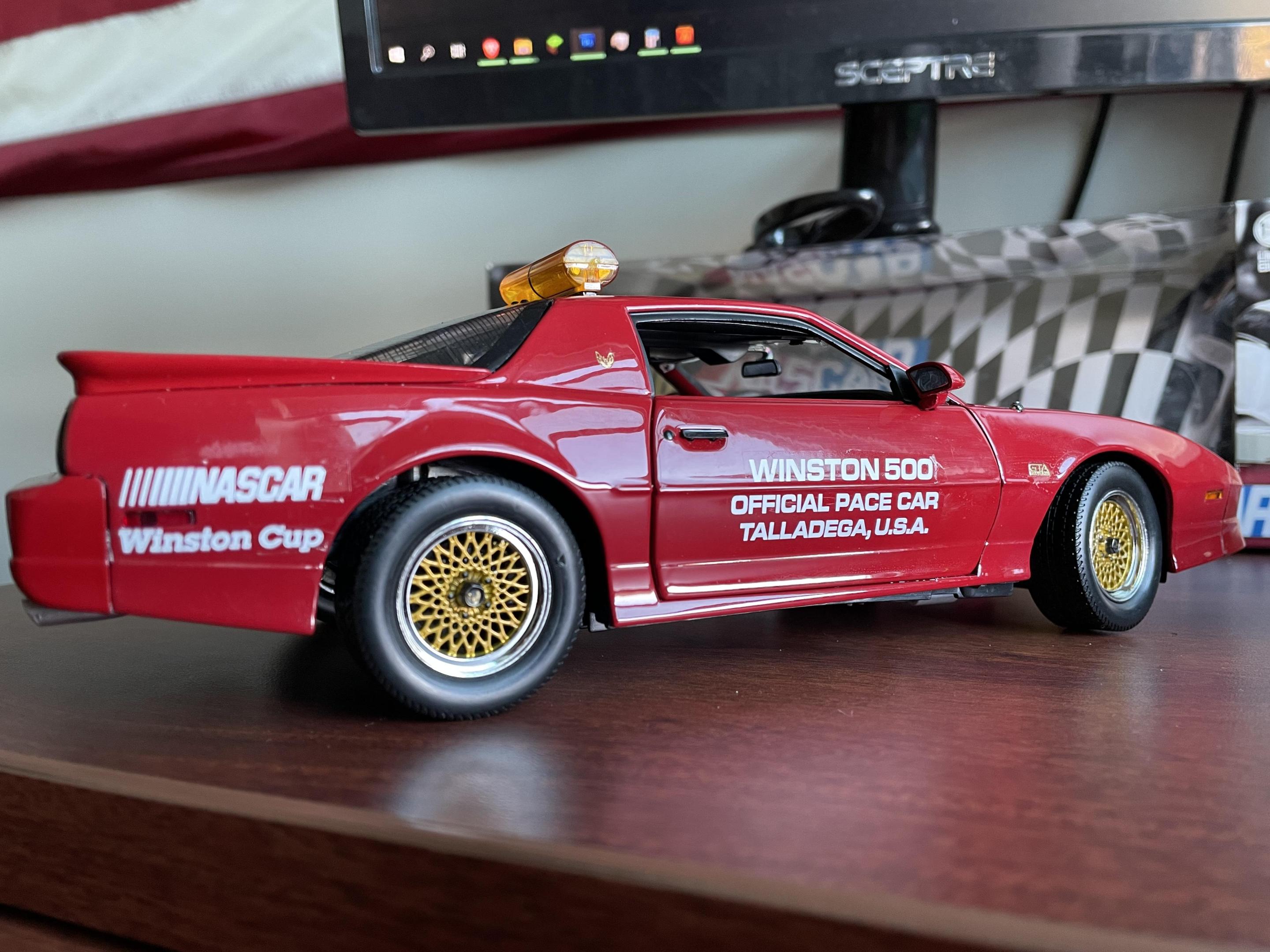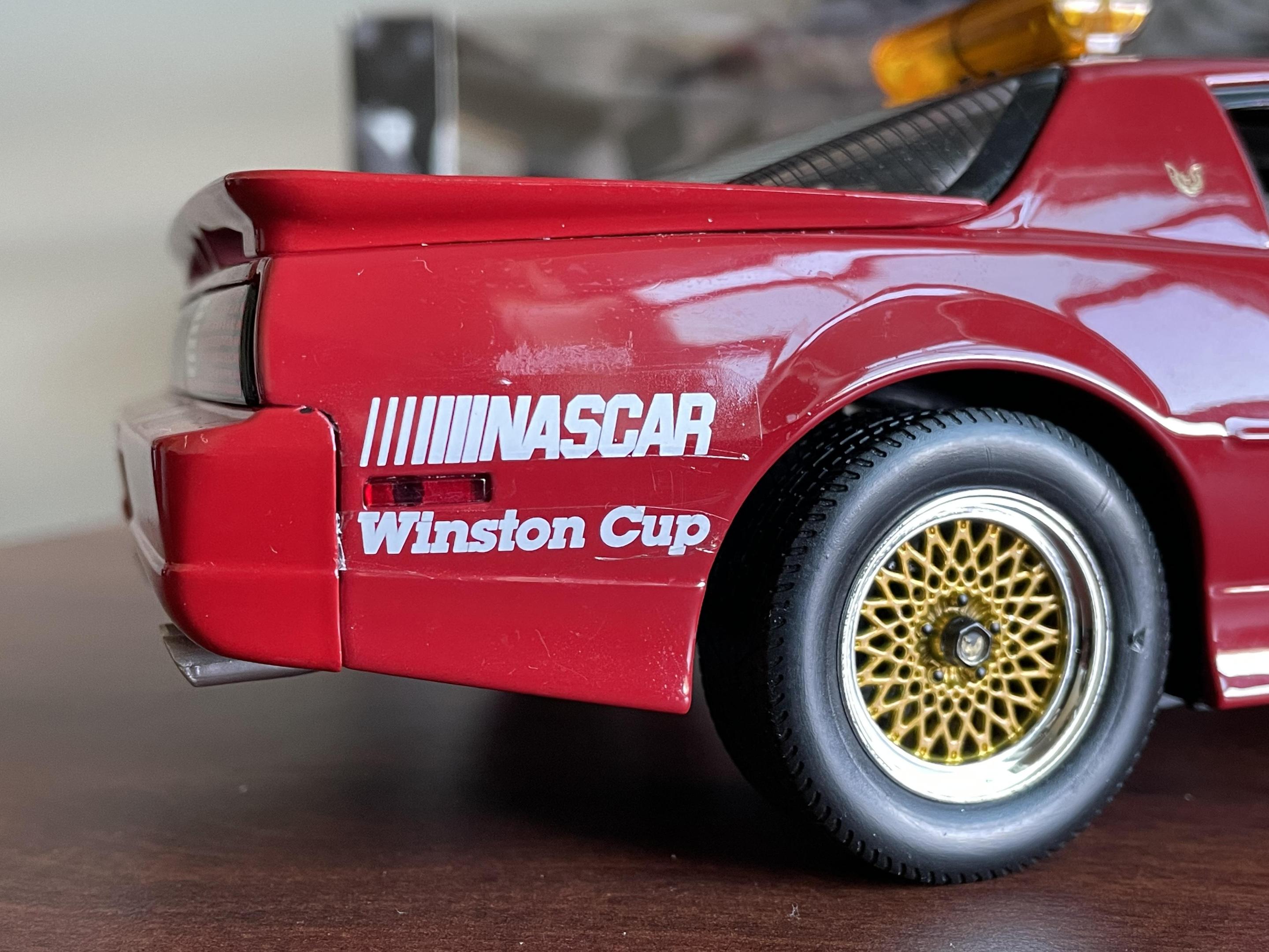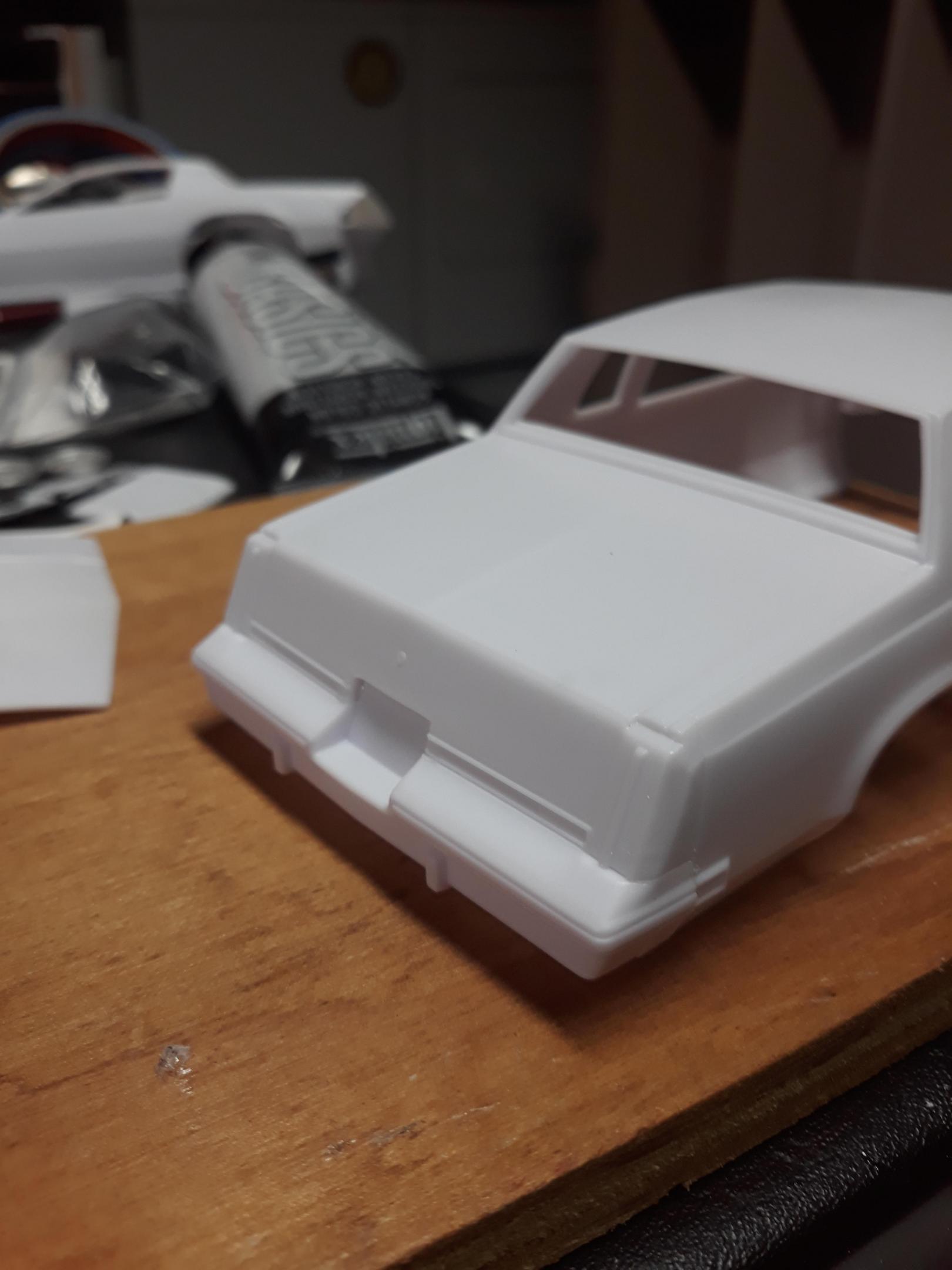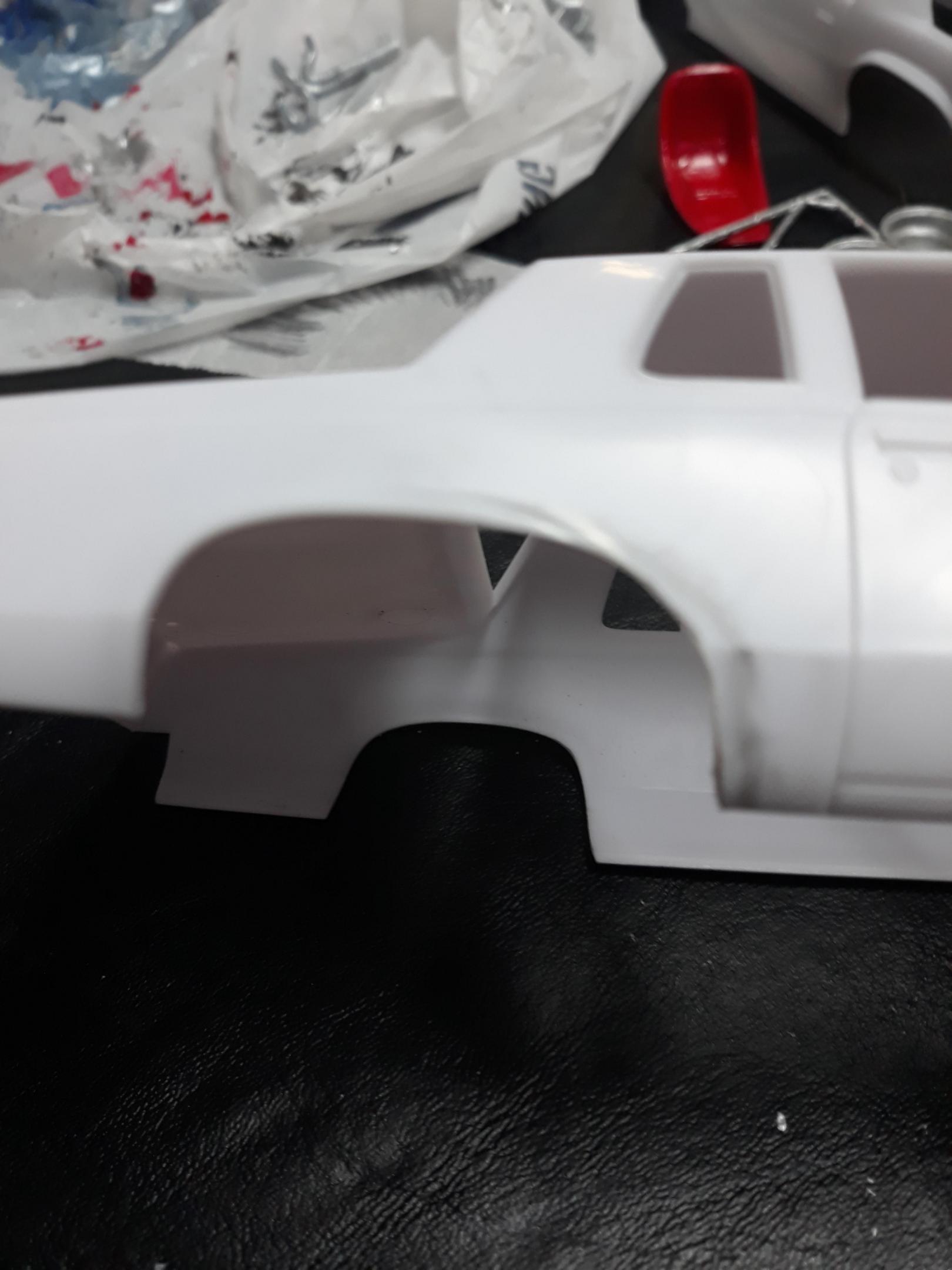 After sitting sideline watching model car videos, felt it was time to get back into the hobby with all new knowledge. 1983 AJ Foyt Monte Carlo used as a base with rims, exhaust, and grill insert bought from Salvinos'. Window net was made from masking tape per a video from Clay Kemp. Decals were from an independent seller. Front wheel wells were extended using a sheet of styrene and some putty, quite happy with how they turned out. I regret not putting down a base white coat on the rims before using Molotow chrome pen, but it will have to suffice. Body was shot with 2 coats of primer, 3 coats of white, and currently drying is 1 of 2 clear coats before decals are applied. All sprays are rattle can and the white is Dupli-Color GM bright white. If you have any questions on methods, paints, or assembly I'm more than willing to share. Thanks for looking!