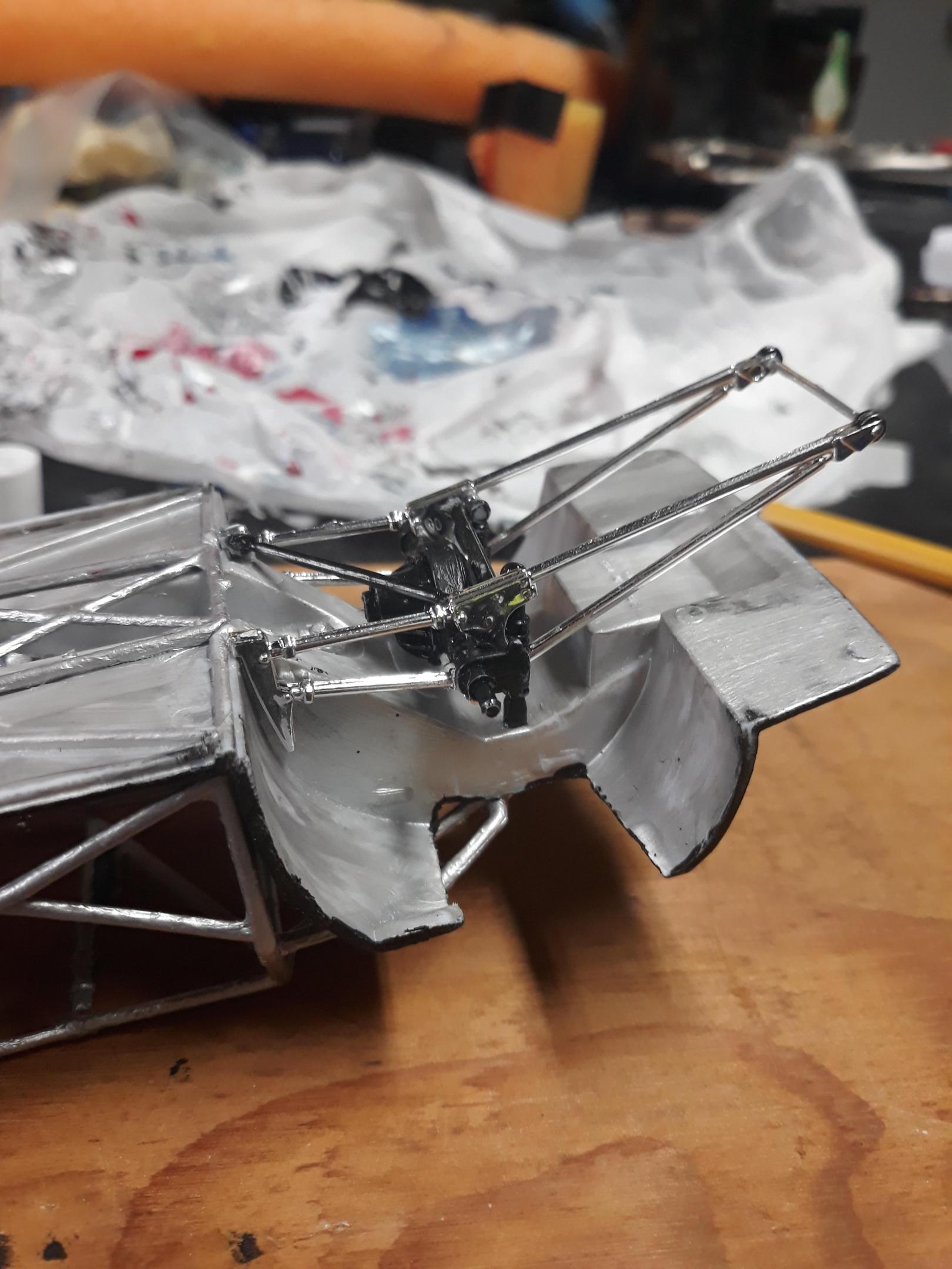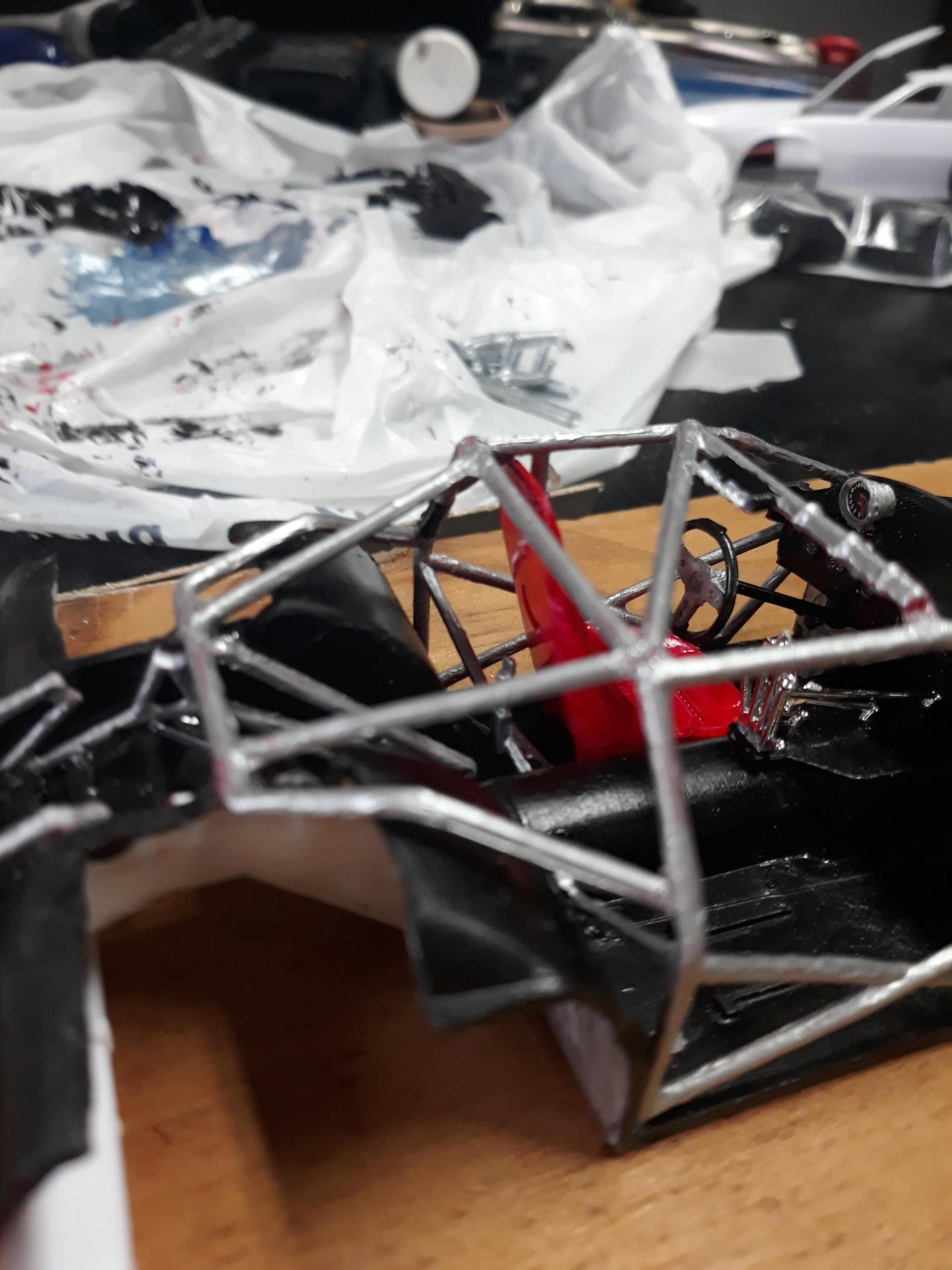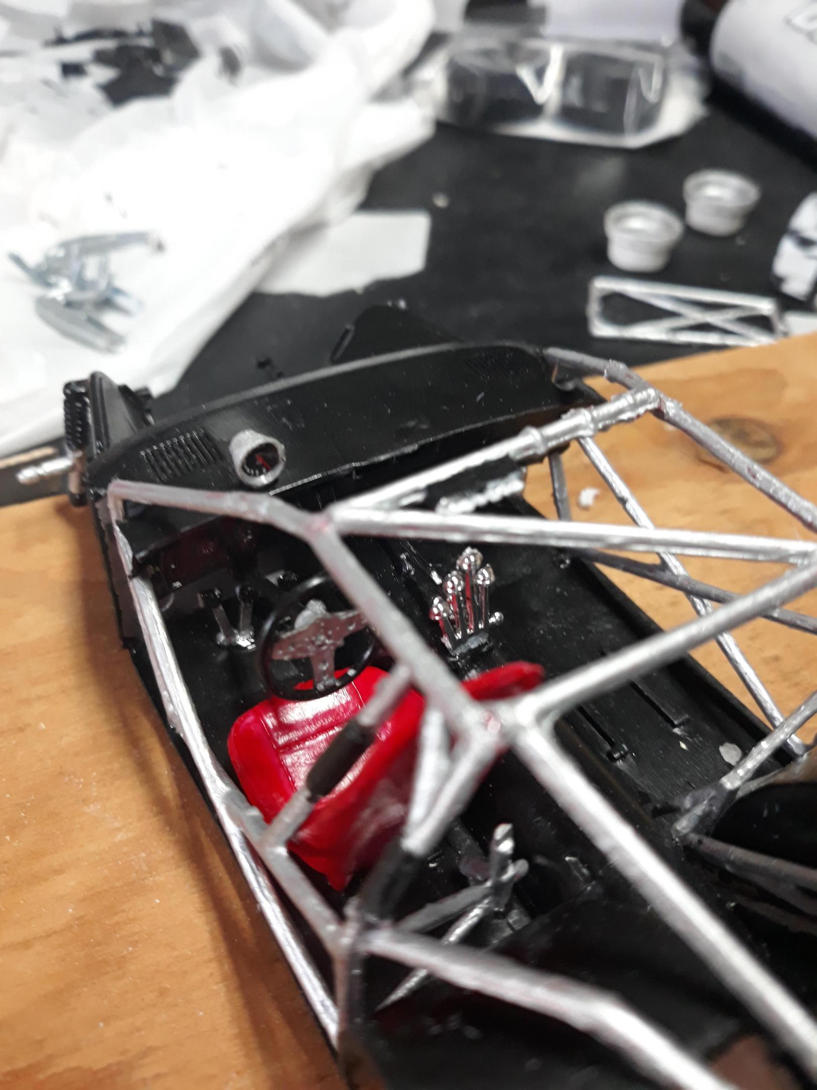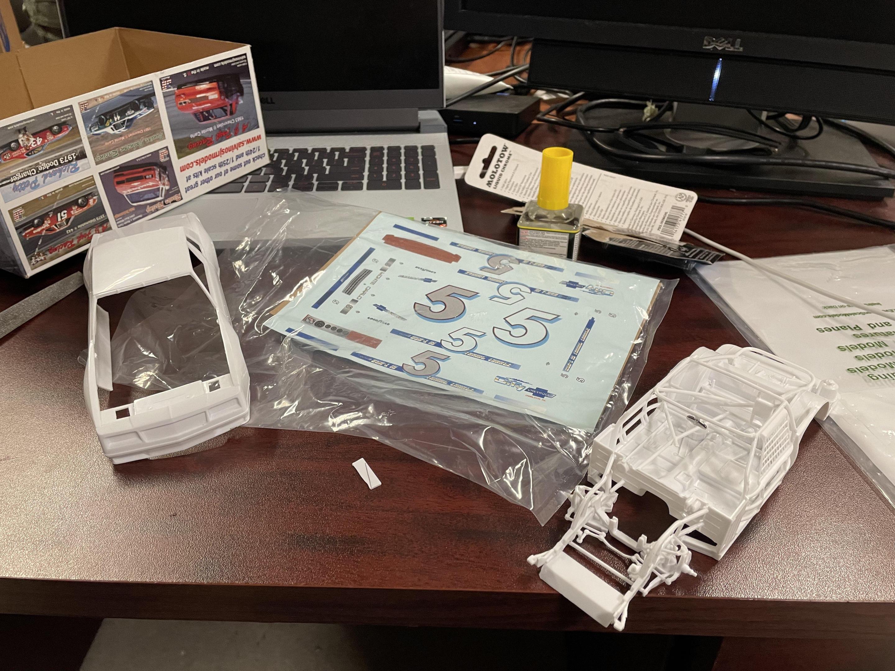 After sitting sideline watching model car videos, felt it was time to get back into the hobby with all new knowledge. 1983 AJ Foyt Monte Carlo used as a base with rims, exhaust, and grill insert bought from Salvinos'. Window net was made from masking tape per a video from Clay Kemp. Decals were from an independent seller. Front wheel wells were extended using a sheet of styrene and some putty, quite happy with how they turned out. I regret not putting down a base white coat on the rims before using Molotow chrome pen, but it will have to suffice. Body was shot with 2 coats of primer, 3 coats of white, and currently drying is 1 of 2 clear coats before decals are applied. All sprays are rattle can and the white is Dupli-Color GM bright white. If you have any questions on methods, paints, or assembly I'm more than willing to share. Thanks for looking!