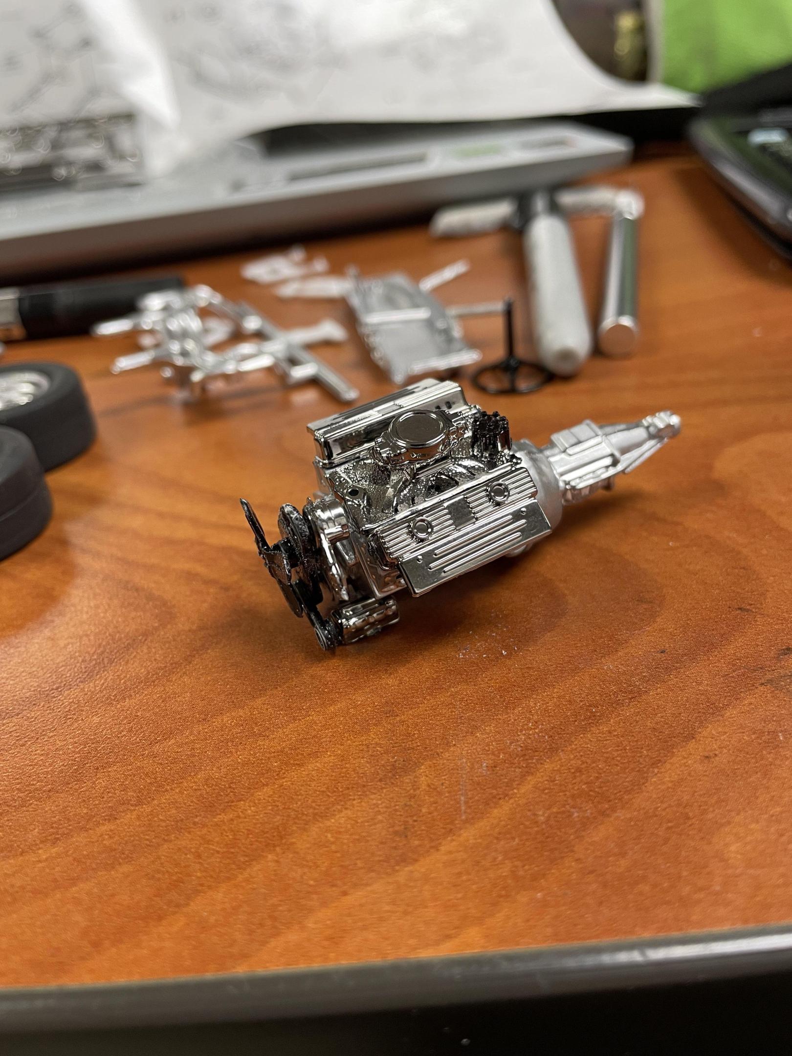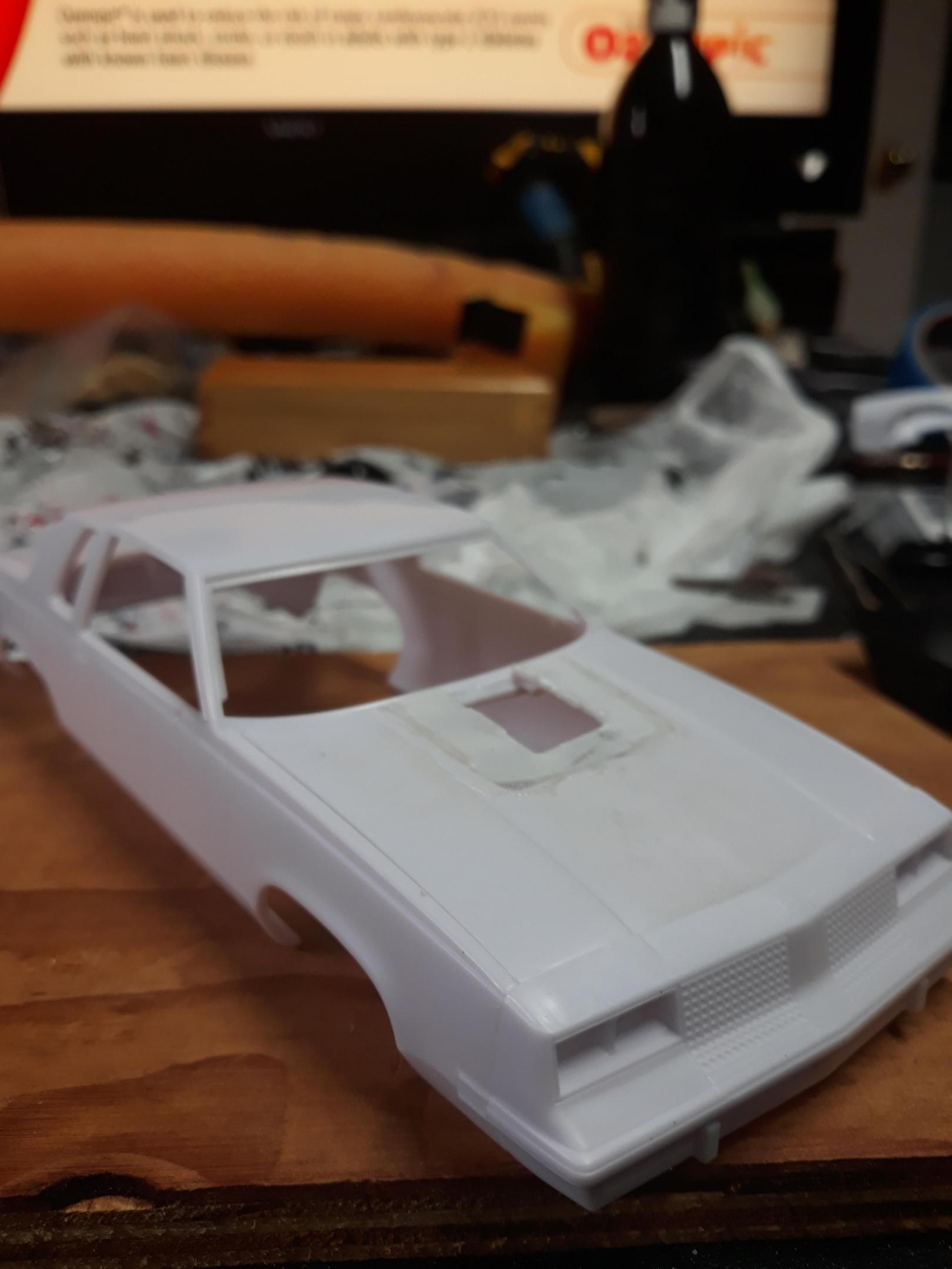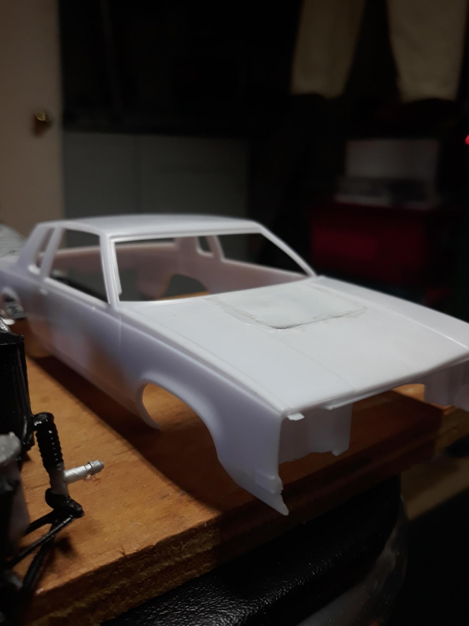 Hello everyone, I am 16 years old and working on my first ever custom model. Been working on this for about a month now, just found this forum last week, and wanted to share my progress. I'm using the 1983 Revell Hurst/Olds for the body and windows, the 1984 Frank Iaconio Pro Stock Chevy for everything else, and Slixx's Warren Johnson Silver Hurst Olds decal sheet, 70s/80s wrinkle wall slicks, 70's crager F/C supertricks wheels, and the drop snout snorkel hood scoop. I have also widened the rear wheel wells to make them more accurate. However I made the mistake of buying a 1/24 pro stock kit and try to fit a 1/25 body on it. Lots of sanding and shaving has been done to the chassis so the body barely fits. I will update this thread as progress continues (I work on it just about every day.) Hope ya'll enjoy!