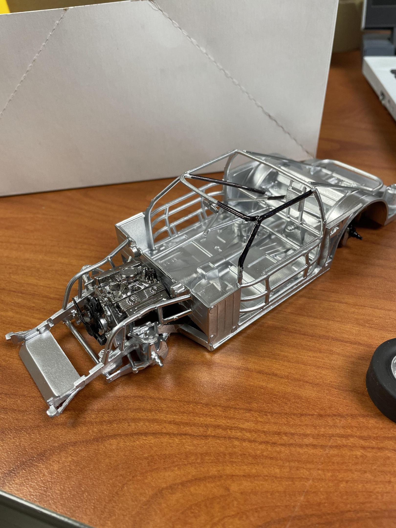 Here are a few pics of the car in the shop before the 84 Winternationals from Willie Rells's (chassis builder for WJ at the time) Facebook page. I personally painted the chassis black, though I've heard somewhere Willie is known for a bronze/gold chassis (unsure about that). In the post from the page, Willie comments about a mag tin in the car. Though my recommendation in black chassis, with gray for the roll bars. I look forward to seeing your progress on the car! Maybe I'll get back to work on the 85 Calais project I started hahaha.