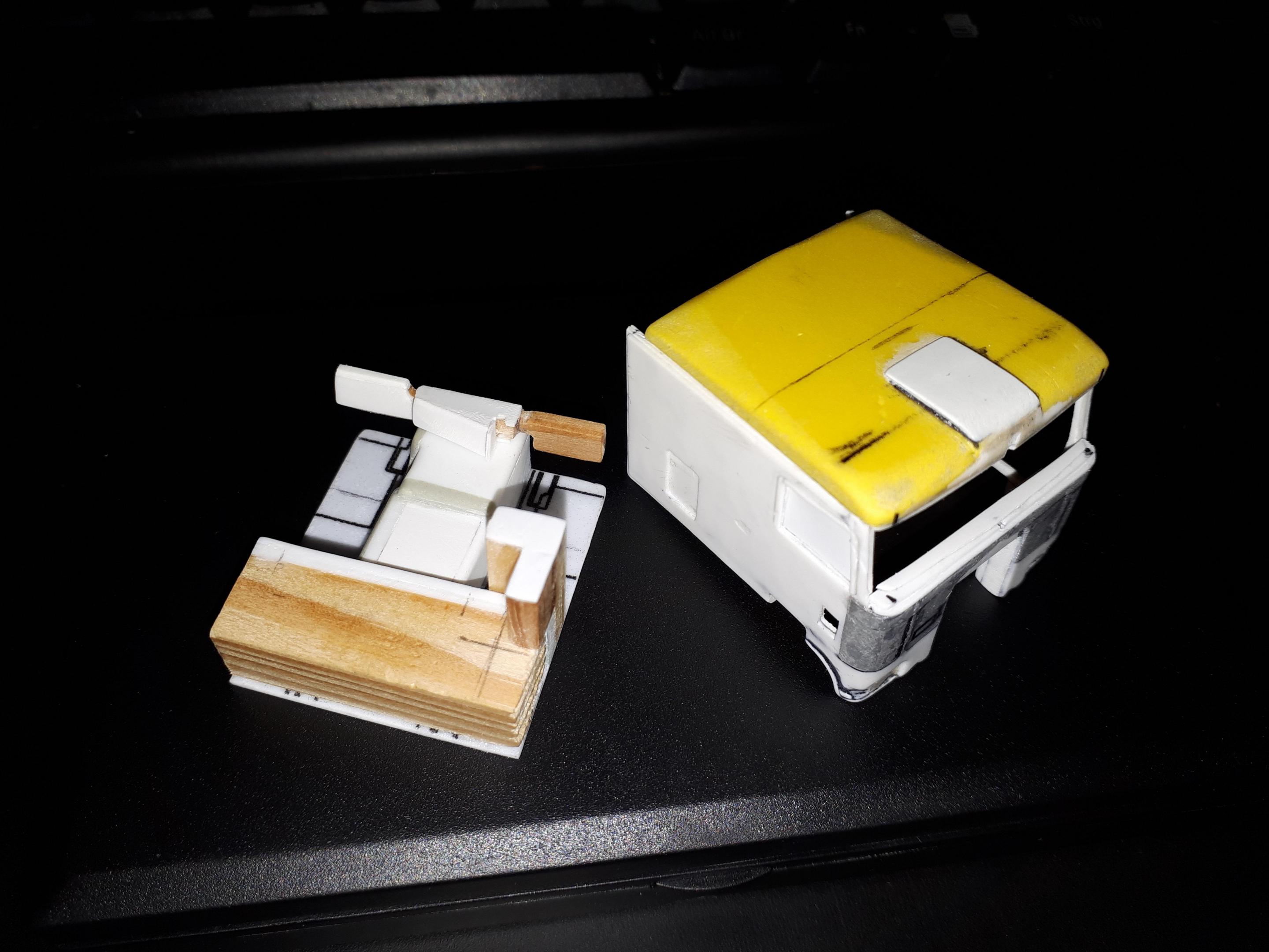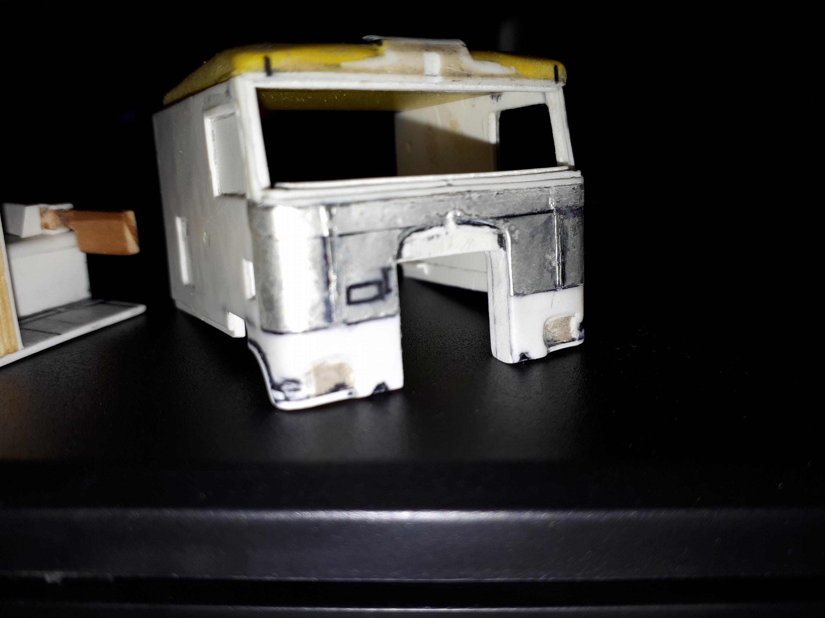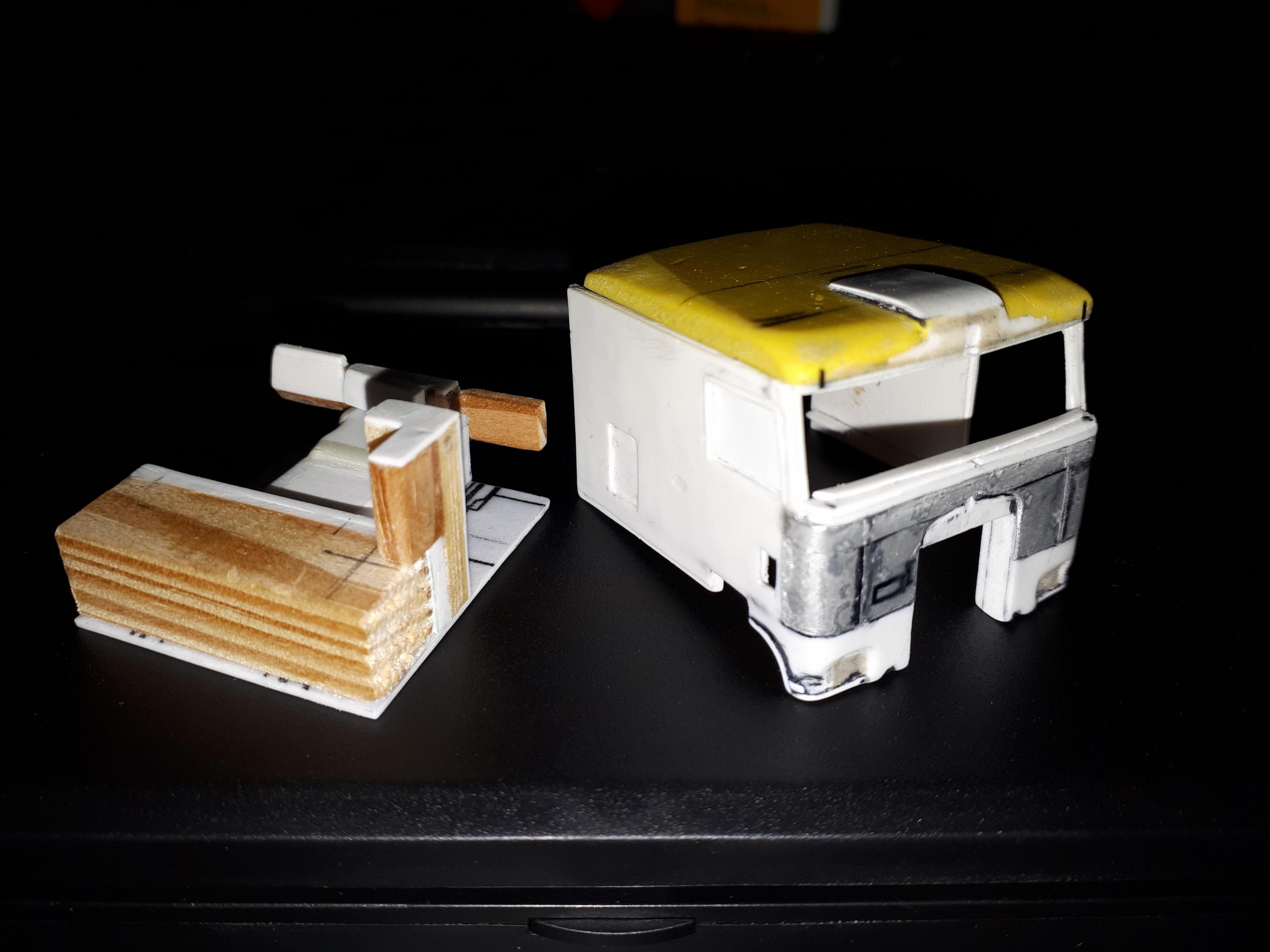 Although I am having a hard time working at the moment, I have managed to make some progress on my Kenworth K100. This is essentially the rough structure of the interior, but there was also some progress on the cabin. -