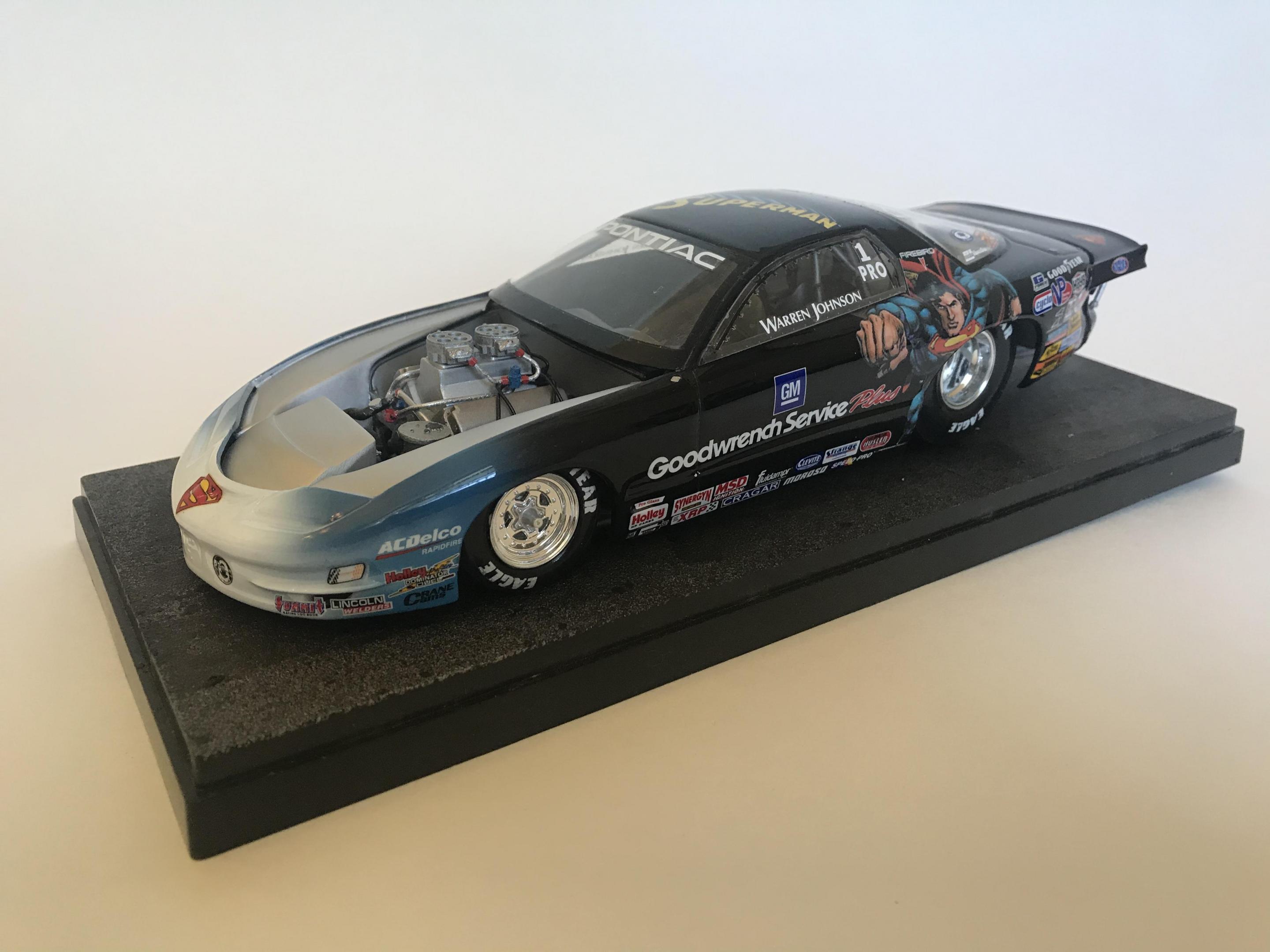 WJ Superman Firebird. I had a brain cramp or something and left a couple details off when I painted the nose, but other than that I’m really happy with this one. It’s an older build, I did it when these first came out. I also waited in line for quite a while to get it autographed by the man himself. The autograph has faded over the years, but it’s there!