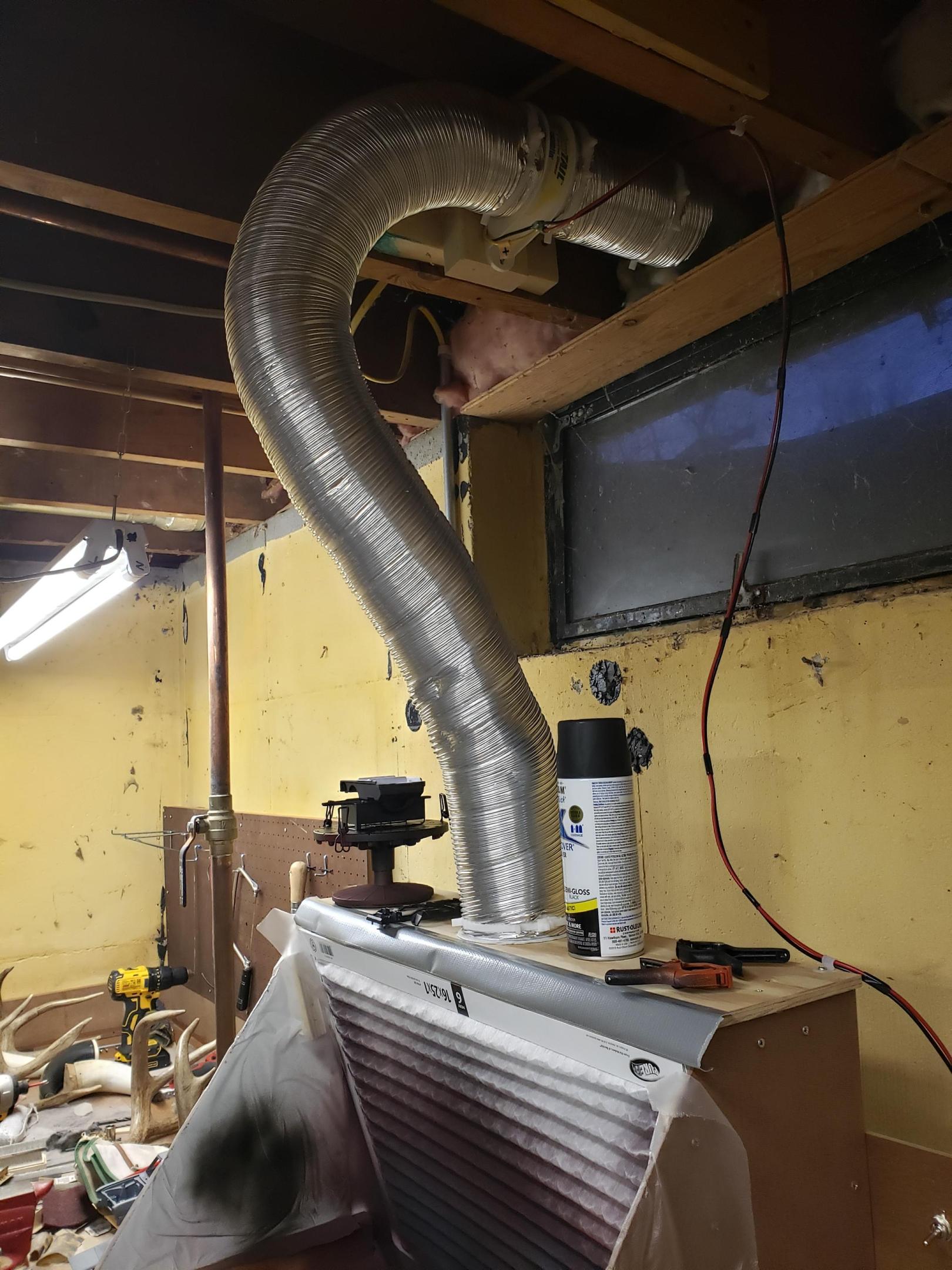 Don't forget a switch, wire and a fuse holder. I really like my paint booth, no smell in the shop at all when using rattle cans. -