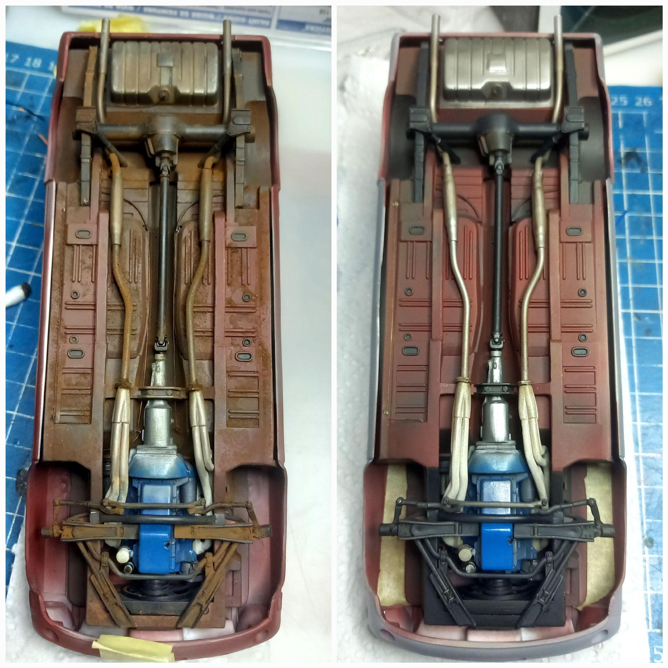 Hello all. When I started out model building, in 2012, I asked my first questions, shared my build progress, and made a few modeling friends on the Scale Auto forum. I was surprised back then how many people generally contributed to that forum. Now/here I get the feeling this is a nice little club with just a few faithful patrons. Much less scary 😉 Teeny tiny update here. Both bodies are now prepped for painting the color, apart from some masking/salt application on the survivor car. Made / modified mirrors and sun visors while gathering courage for the painting 😁 (little scared I'll screw it up).