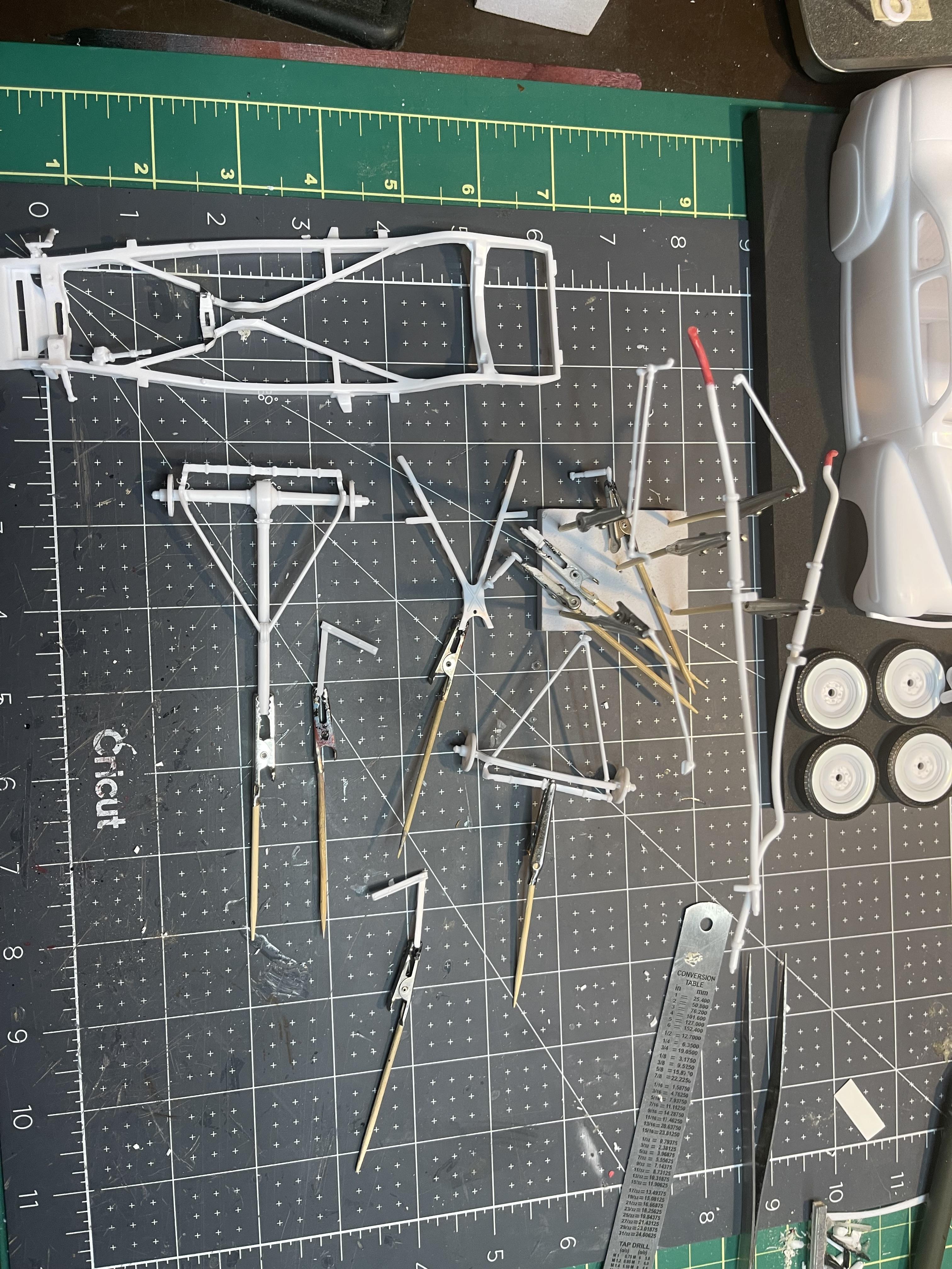 Well I think I have all the suspension components modified enough to maybe , just maybe add some paint to them, it’s down to sub assemblies now. These will all be be hand painted, as I enjoy the process of getting all the details right, there will be a heavy mix of shades of black and greys.