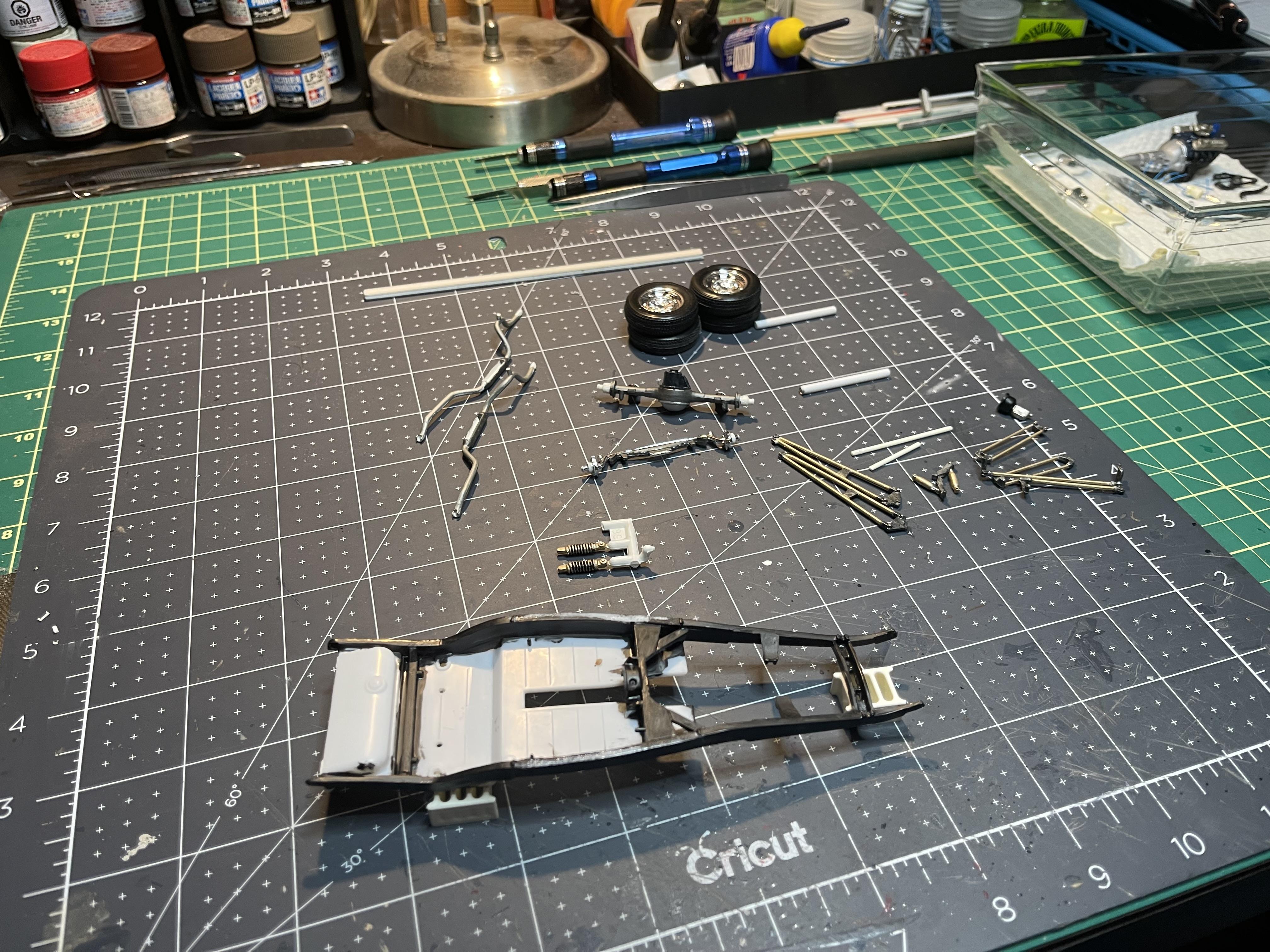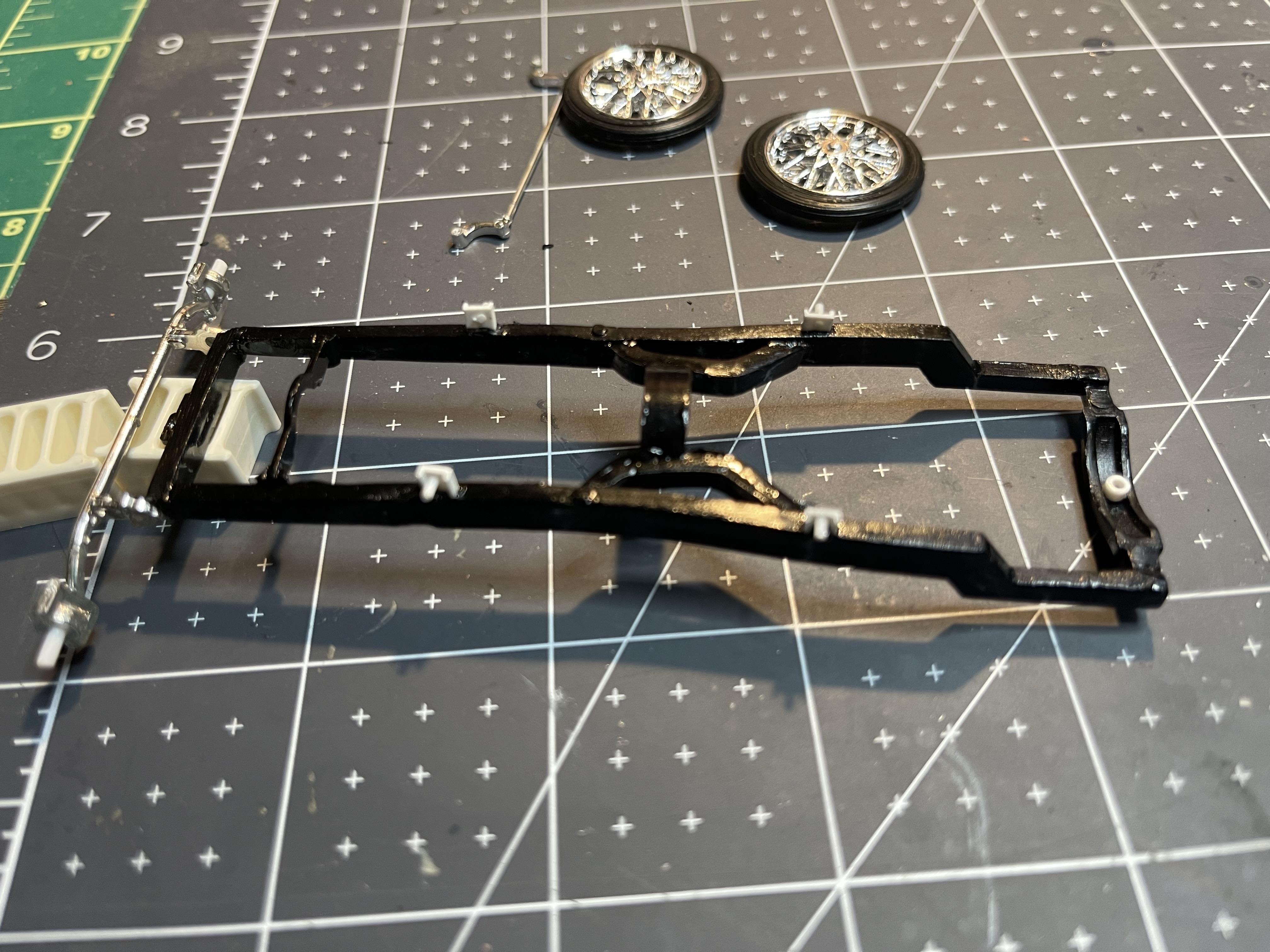 Well Iāve had a few days of rodent rehoming (damn bench squirrels). I can refocus on the truck again, time for some fiddly work, after a night in the solvent tanks the dechroming of the suspension bits is complete, now to get the moulding lines off and some general cleanup begins. Most importantly if not all of the general assemblies have been sorted out so paint magic can begin soon! -