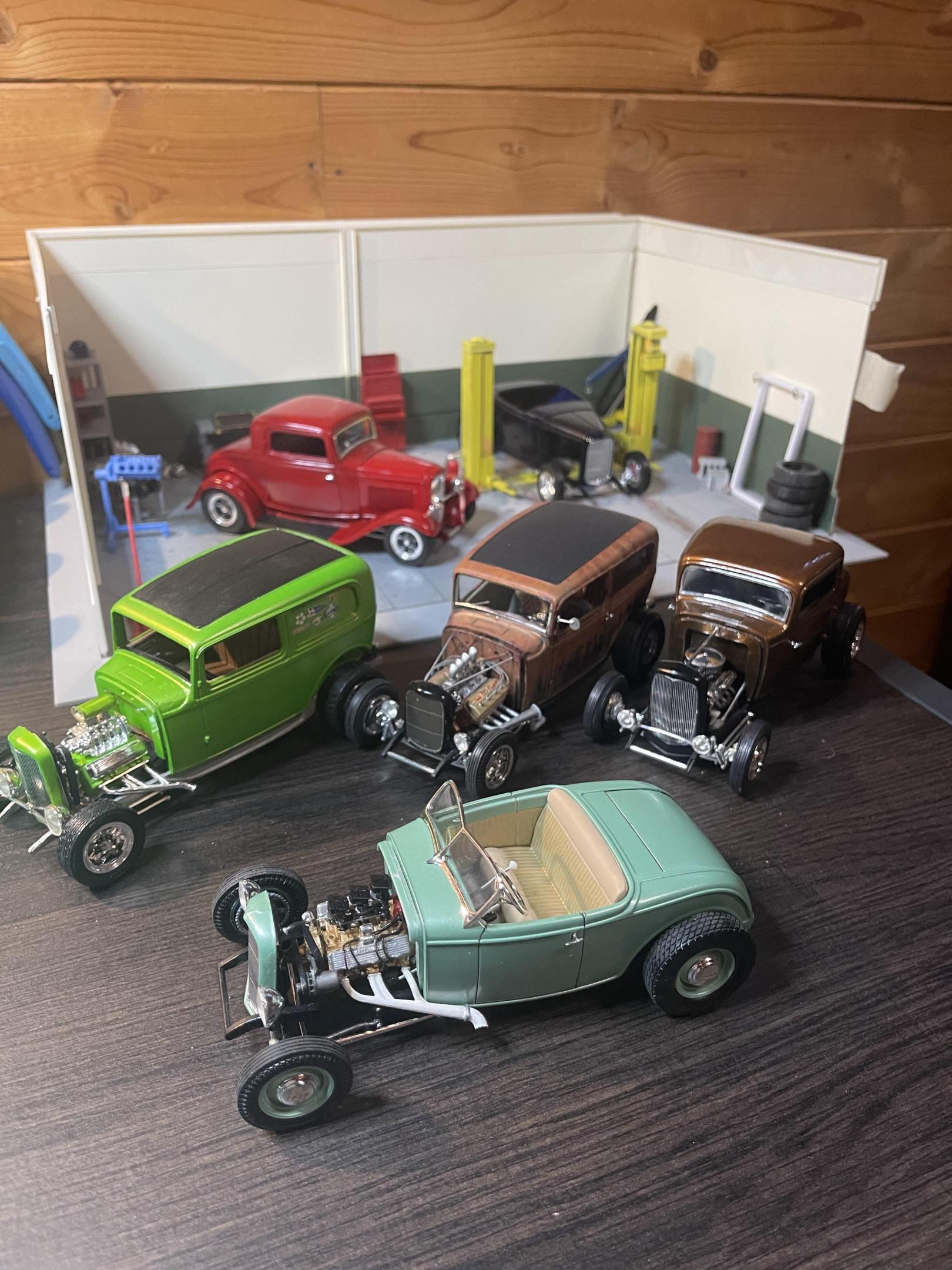 2024 was a very different year for me. I started a lot of different projects and only managed to complete 4 with two almost finished. I took a break from the forum for a bit as I was frustrated with some builds. I’ll make no predictions on 2025! I will be starting a new project based on some ideas I had last year or was that last week it’s too early to tell. And yes that car in the background has fenders it was supposed to have been finished for Christmas (Santa’s hot rod) I don’t really like full fendered rods but this one seemed to work. That’s all for now!