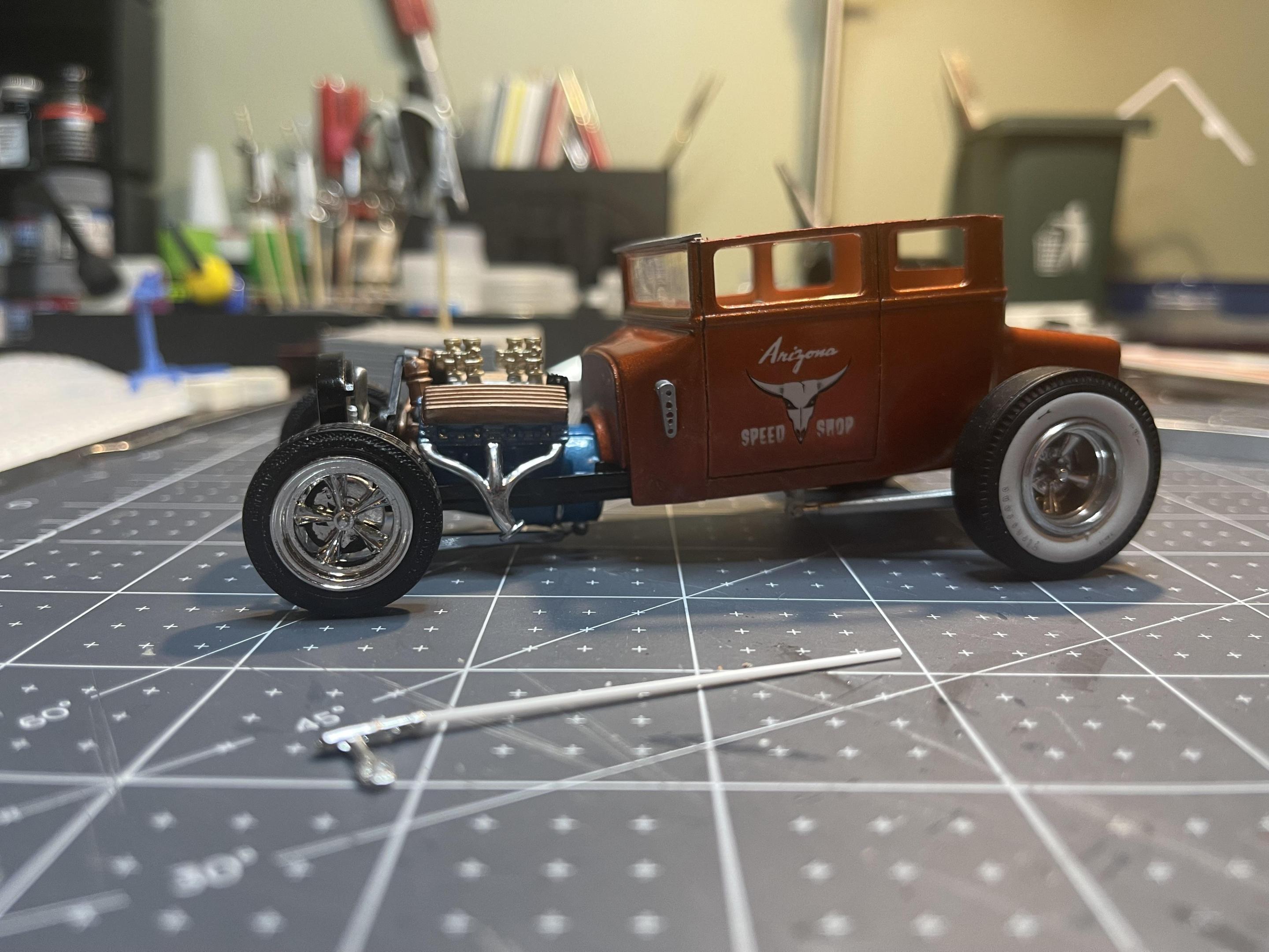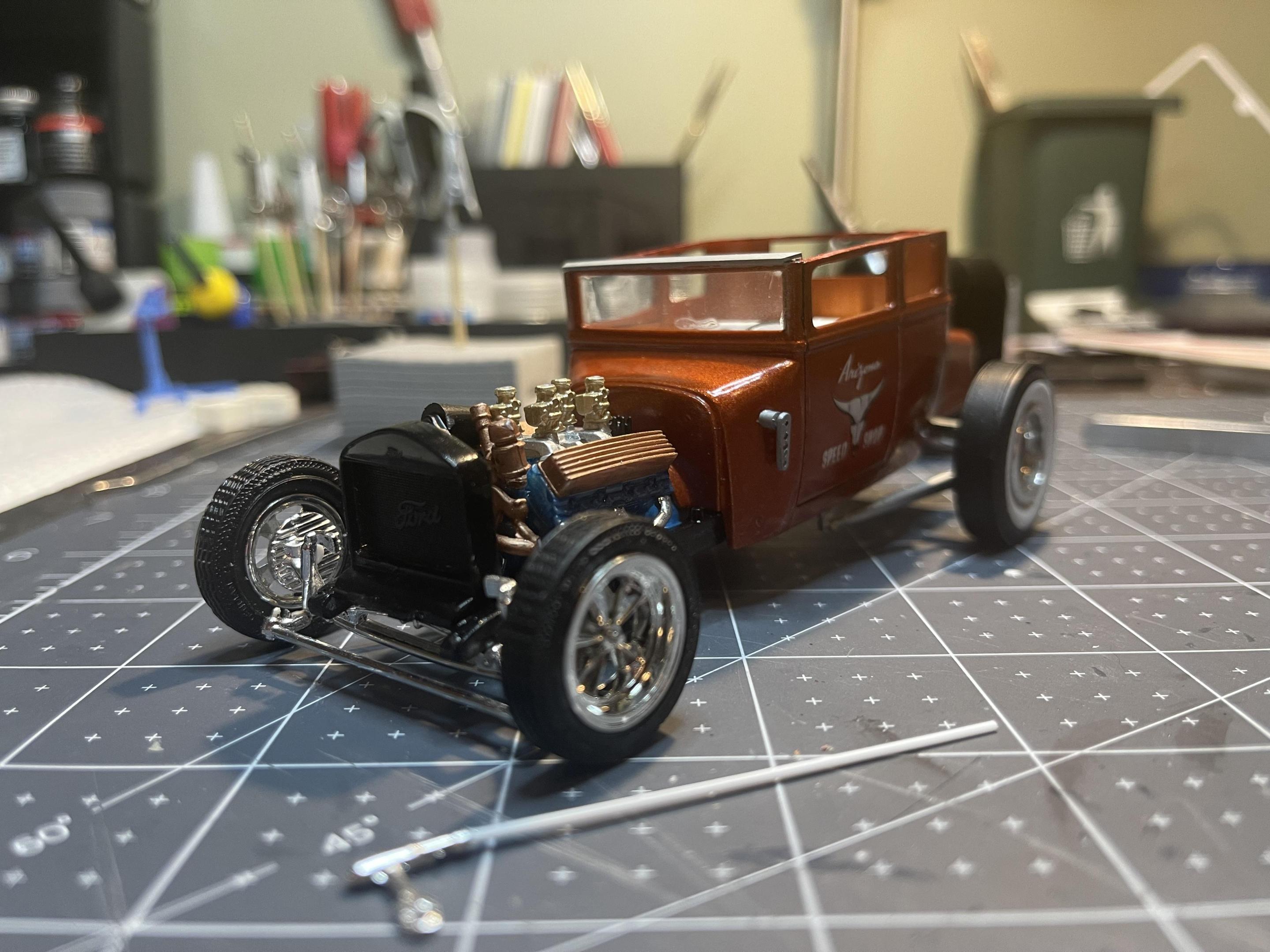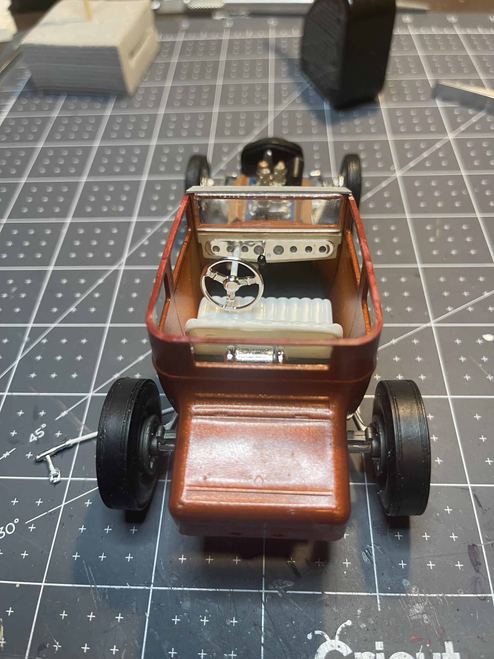 Well the parts box T is just about done. Just finishing up the cowl steering and digging for some appropriate headlights and tails as well. Next pics should be under glass. Thanks all for watching and commenting.
