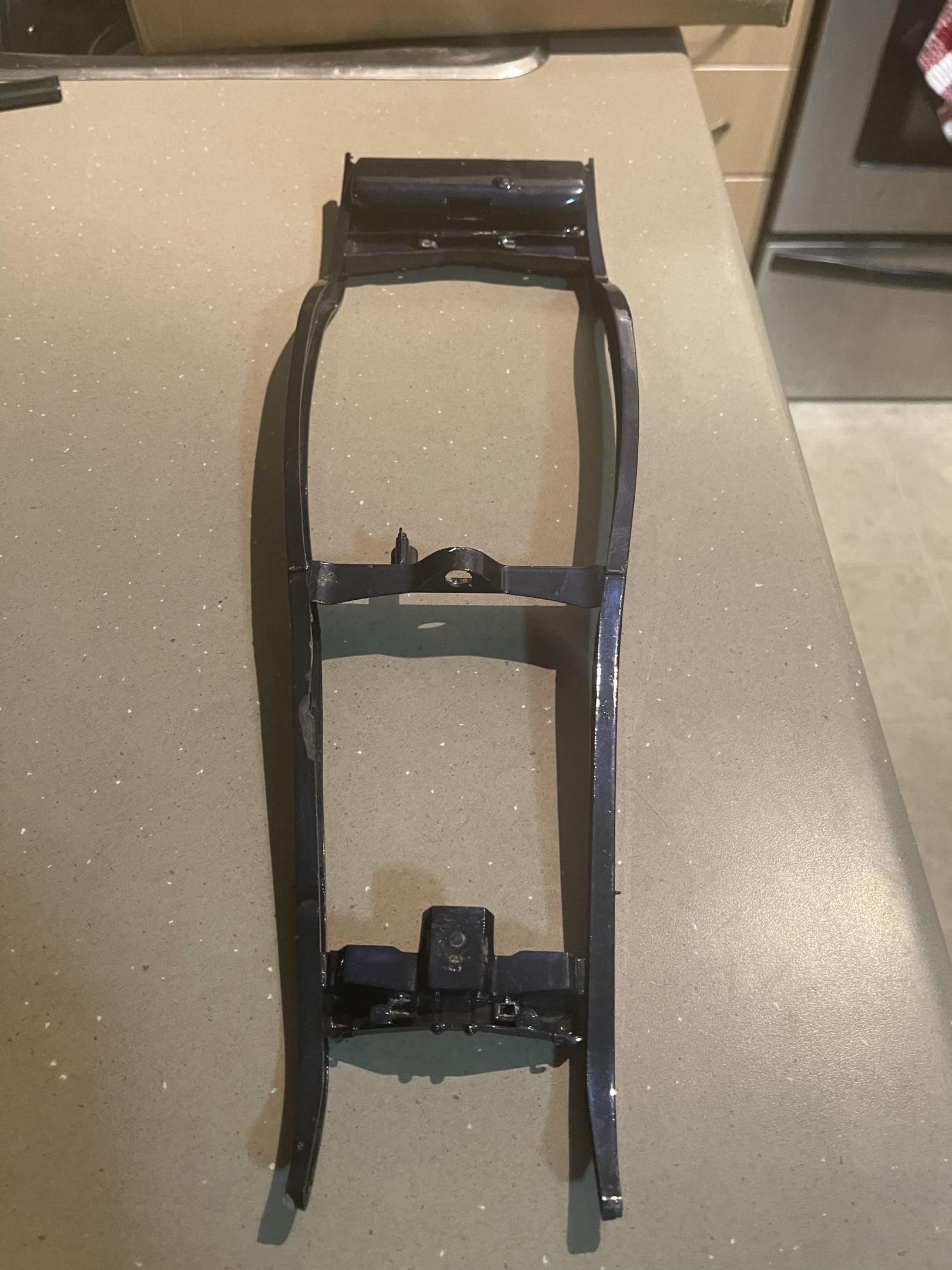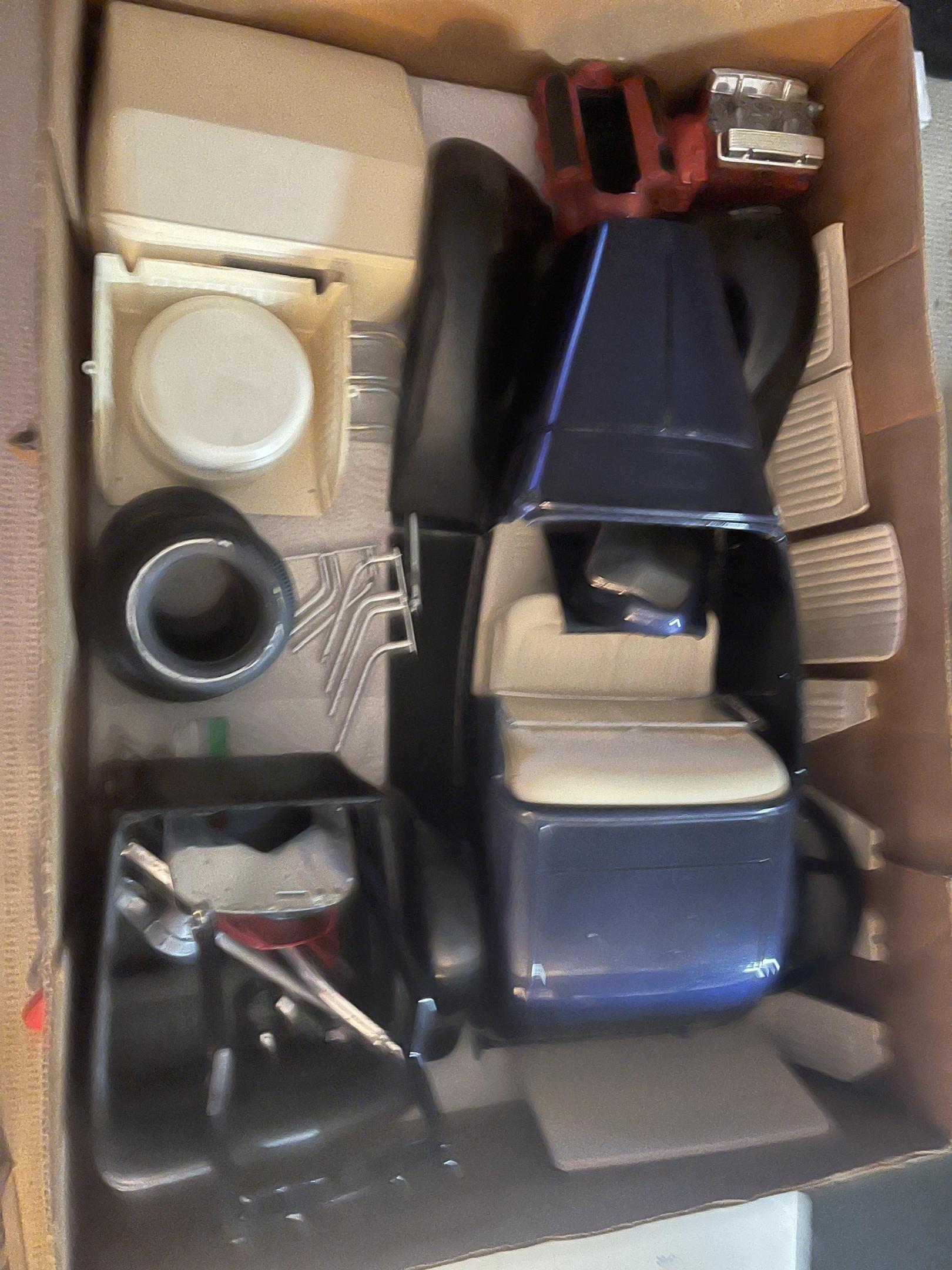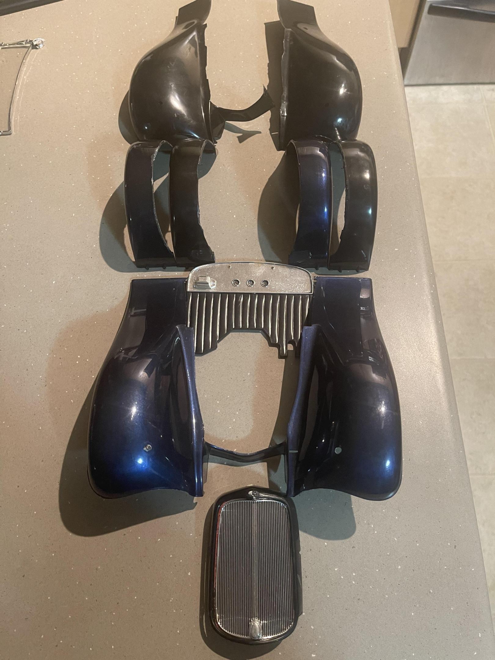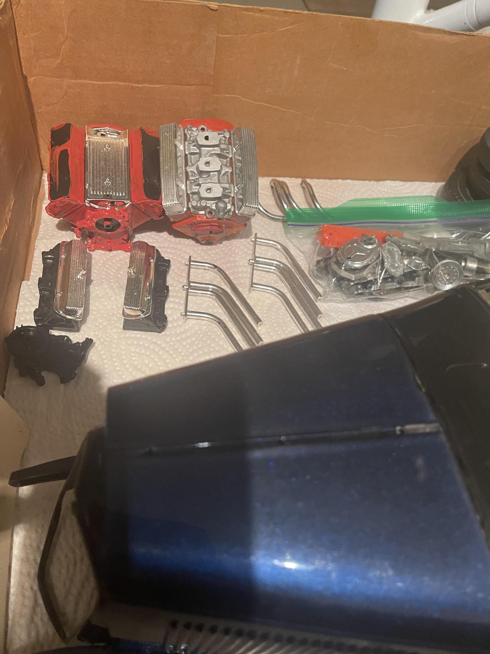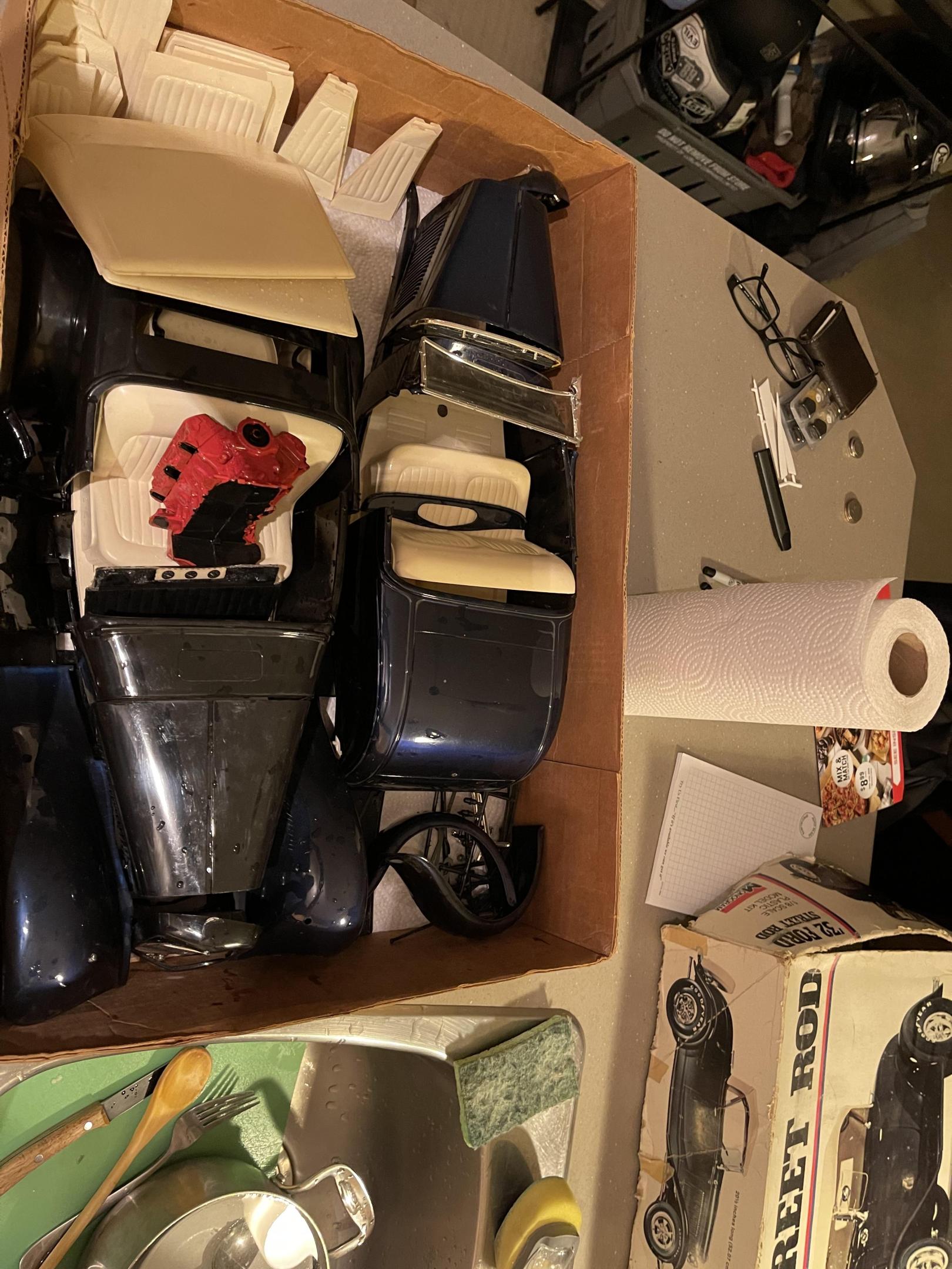Well it’s been a minute since we left this. Back in August I made a deal on some rough 1/8 parts, mostly just frames and bodies, no suspension or engine parts (that were usable) well they finally arrived on Tuesday and I’ve been working with them to see what was usable, junk and what would help someone else get a project going. so first step was to wash all the parts, they had a layer of someone else’s dust ?. Then it was to split out the parts into separate cars. So with another parts lot I got back in the spring that was most likely from a big t I got this assembled. Managed to get two wheels salvaged, the other 2 are rough, previous builder must have used a 1/2 tube of gloo on each wheel, the melt was incredible. to complete this mess I will need two front drums, two wheels and some suspension pieces, steering and the like, but wait there’s more, all this 1/8 scale action has gotten me to finally finish boxing in the frame for the the original build!
