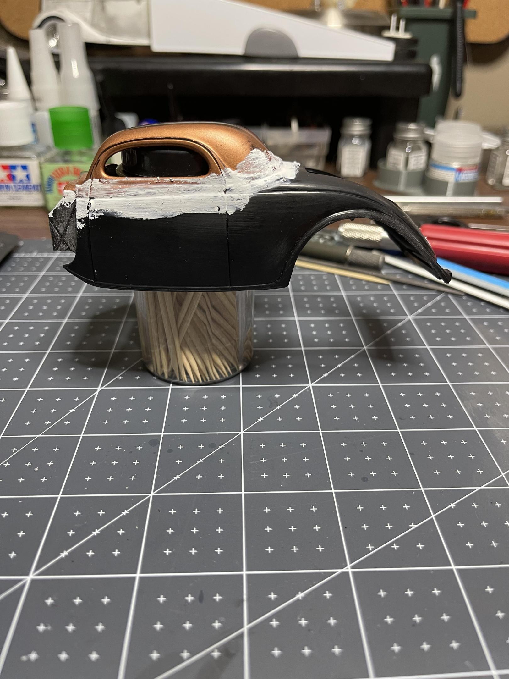 Thank you David the second pic is an attempt at channeling the body into the fenders so nothing in that pic is lined up, as it sits on my bench right now the hood line follows the body line fairly well, I will be massaging the parts to make them fit a lot smoother. I appreciate the tips though. I plan to get all the body lines smoothed out by the end of the weekend and get a shot of primer on to see where it will need more work. But the goal is smooth and slippery.
