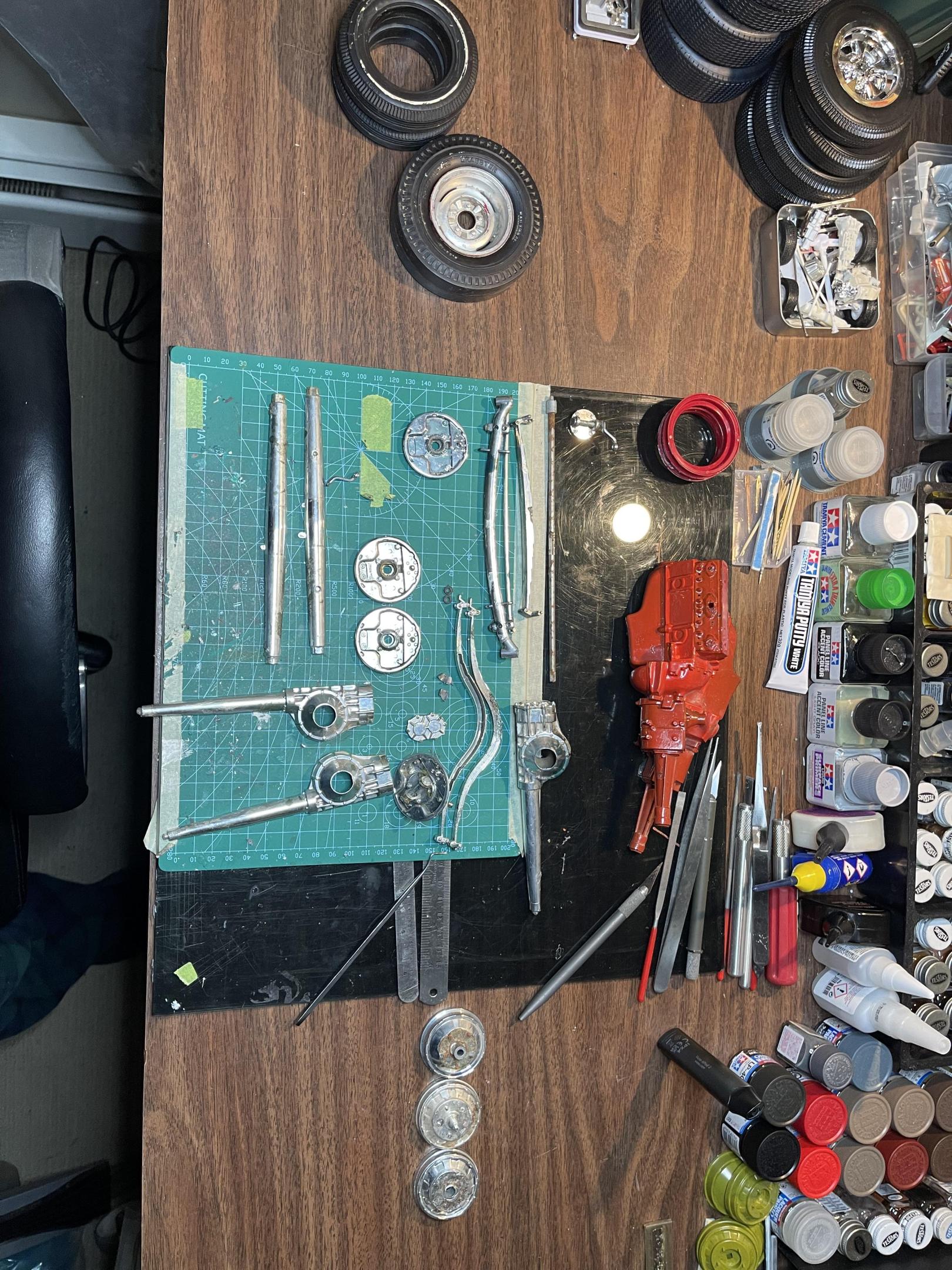 I’ve had this kit in the stash for almost a year! I threw the suspension together with the custom wheels from the Amt 62 thunderbird and I like the mock-up so much that I decided to build it. I’ll let the pics do the rest of the talking