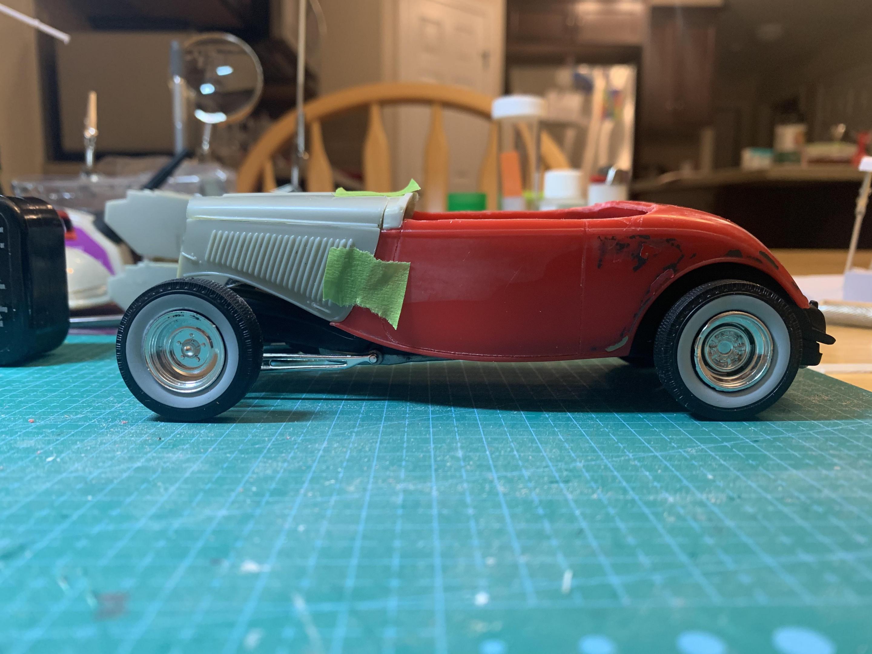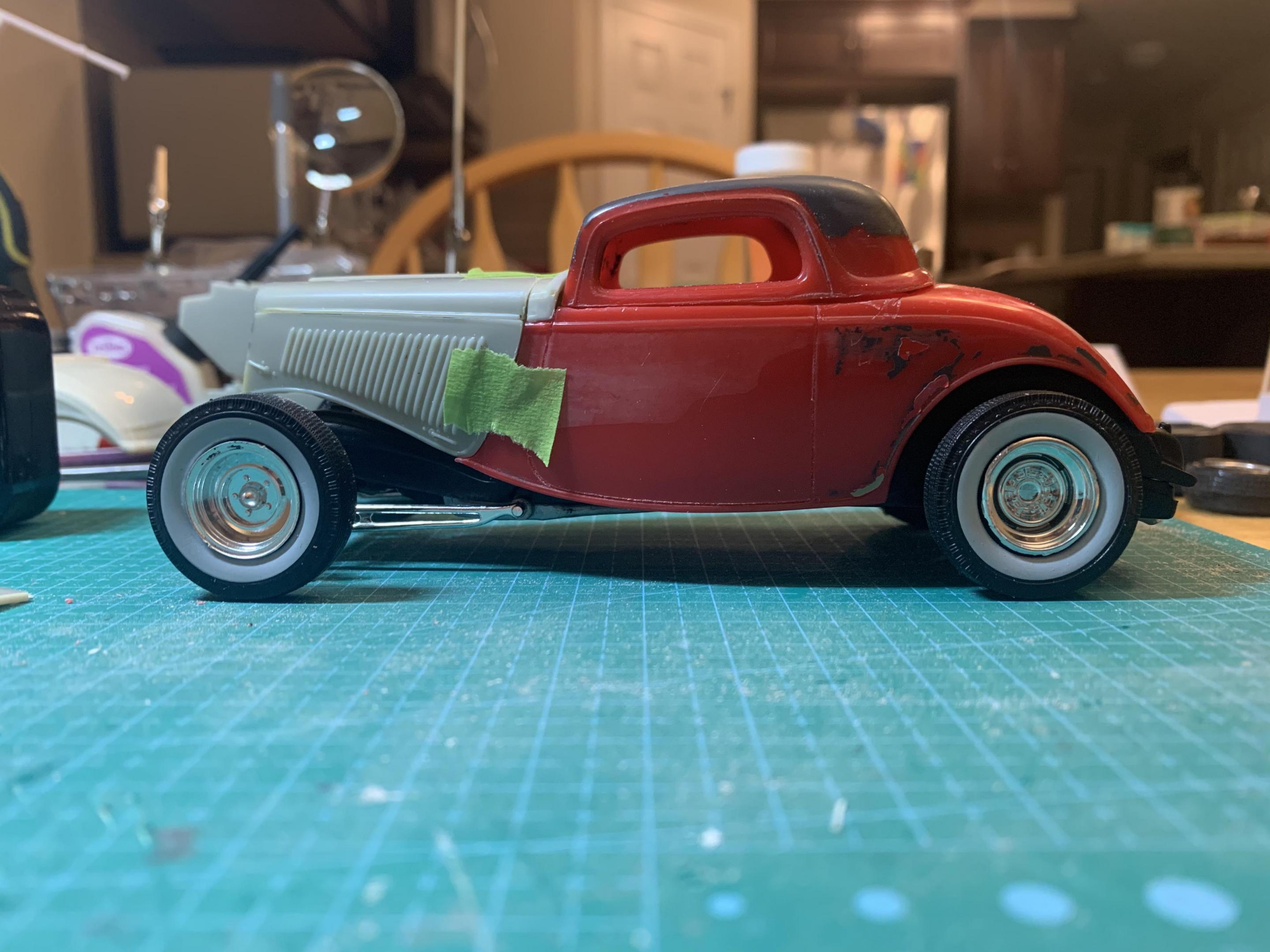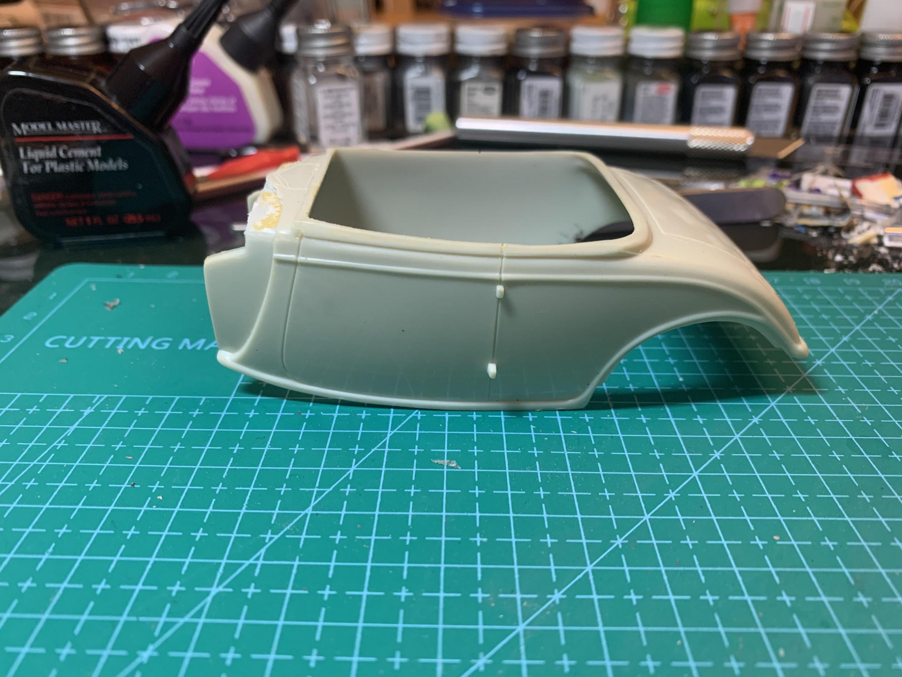 Did some required surgery, things are starting to align I’m happy and the body work will continue, still on the hunt for an amt 34 frame to put under this, I don’t think the snapper frame is correct enough for my liking. I had removed the roof from the 3 window in hopes of fitting it to the other body, but I realized the door lines didn’t line up, (yes I could have scribed new ones) I’m trying to not let this get ahead of my skills too far so that it doesn’t end up as an unfinished build!