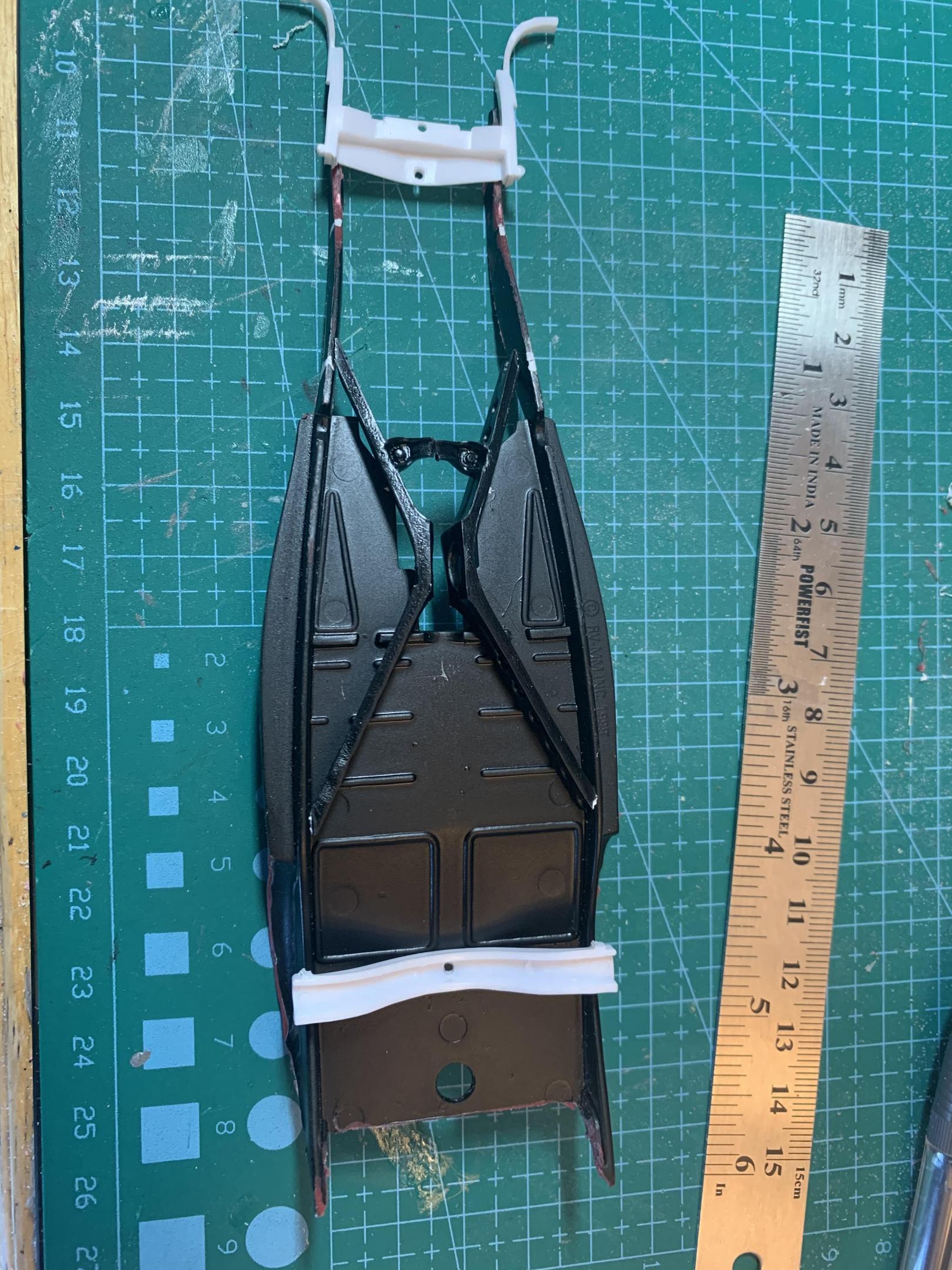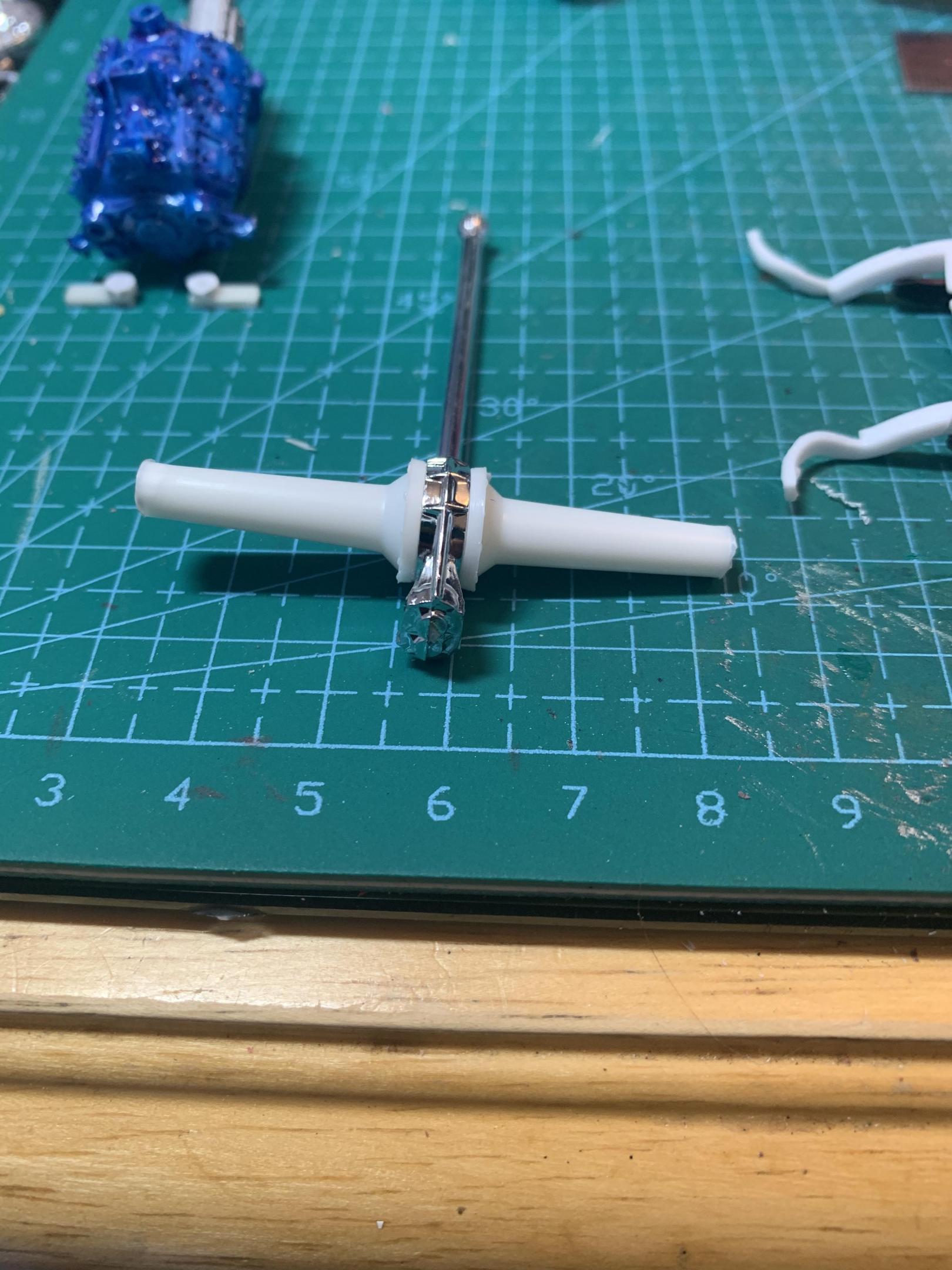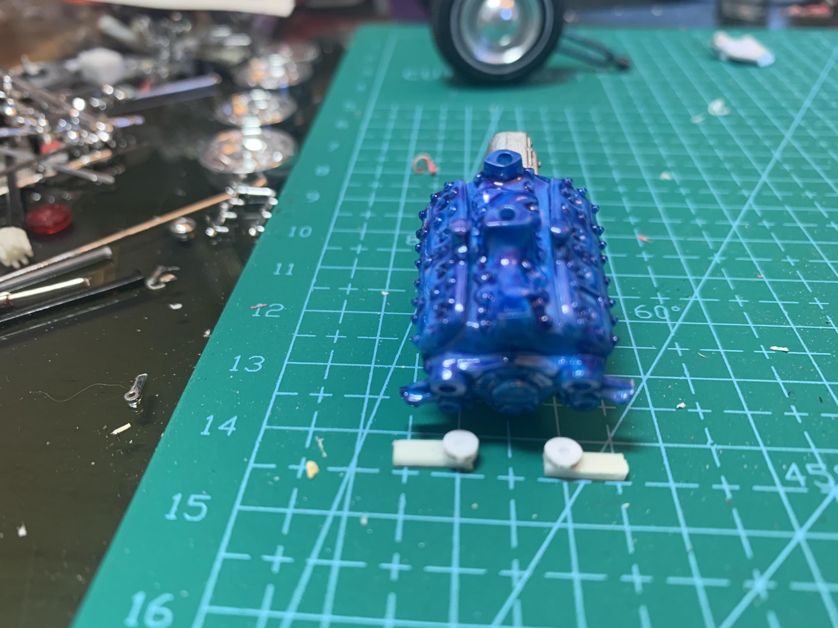 Some progress today,mocked up the snapper frame rails/floor pan and did some trimming with my dremel, dug out a 31 for frame and trimmed some pieces to add to the rails. roughly fabricated some engine mounts so that I can place a mock up engine in the rails, help keep everything in line. I will be using the front suspension from an amt 41 woody that I got as a trashy rebuilder, the x brace and rear from that kit will work as well. I’ll hopefully use the quick change from the 25t as well