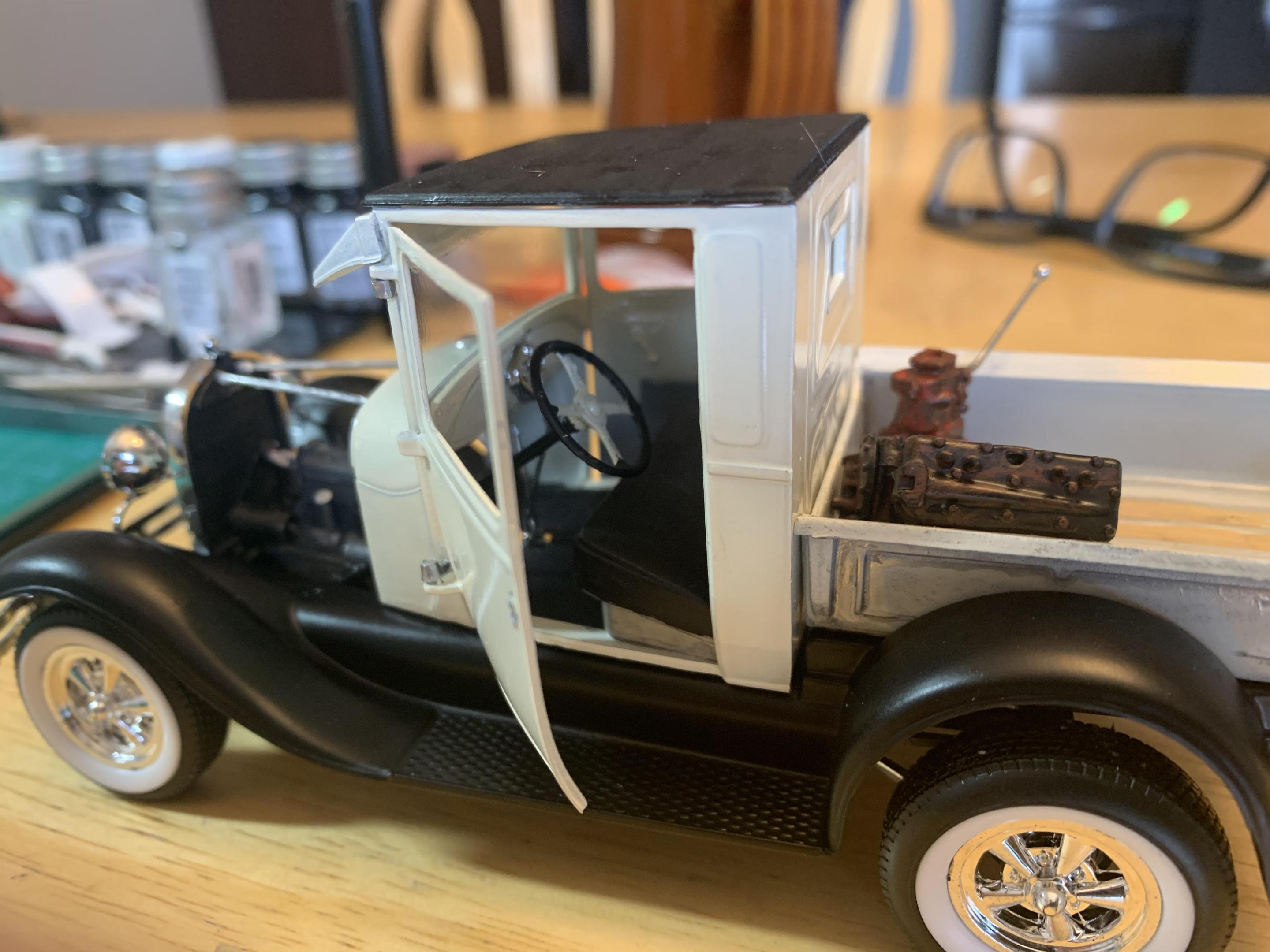 Did a little more work on the 31 and mounted the doors to the hinges, darn fiddly little bits, decided against the Kelsey Hayes wheels and will use 40 Ford steels instead.