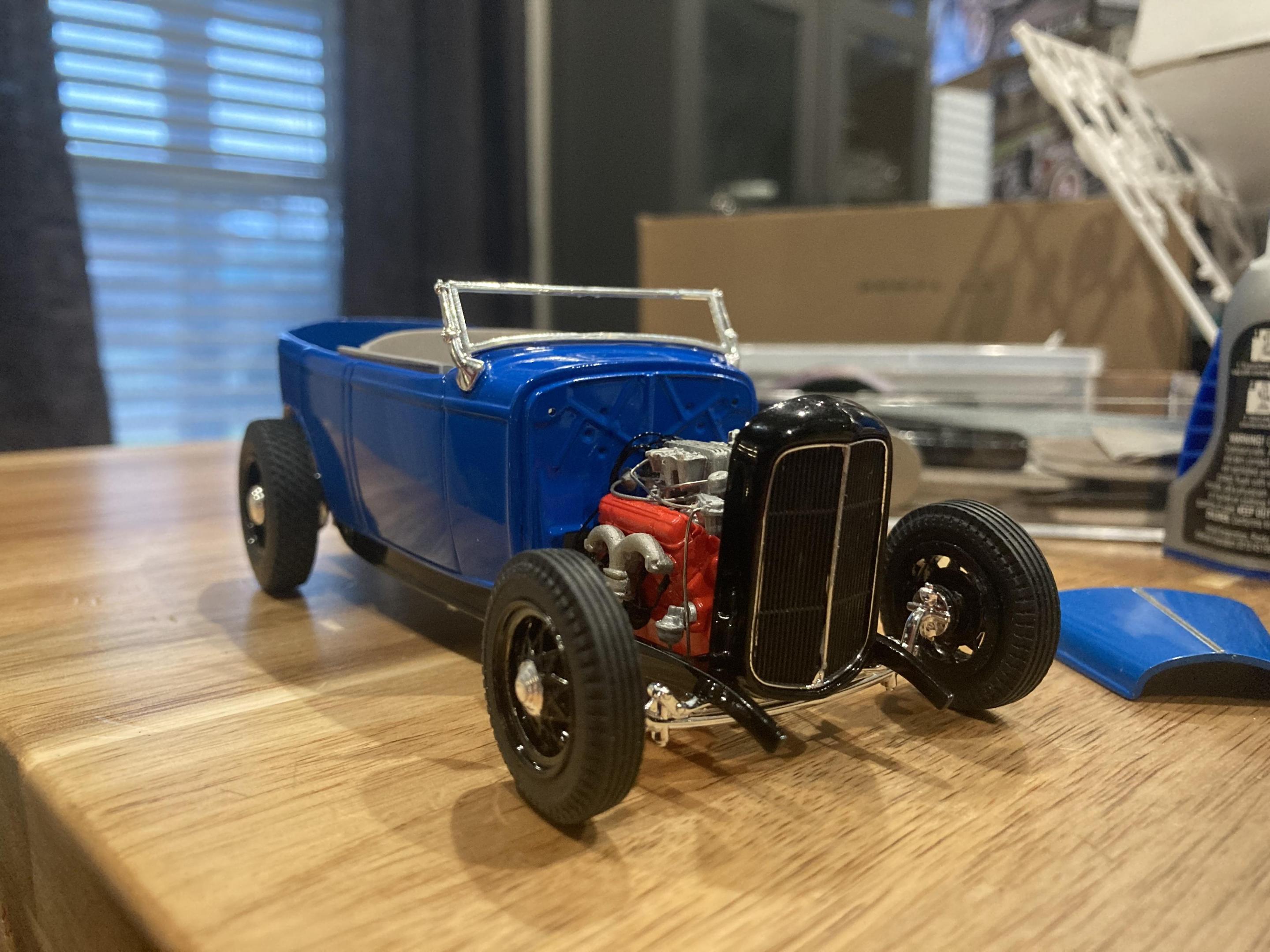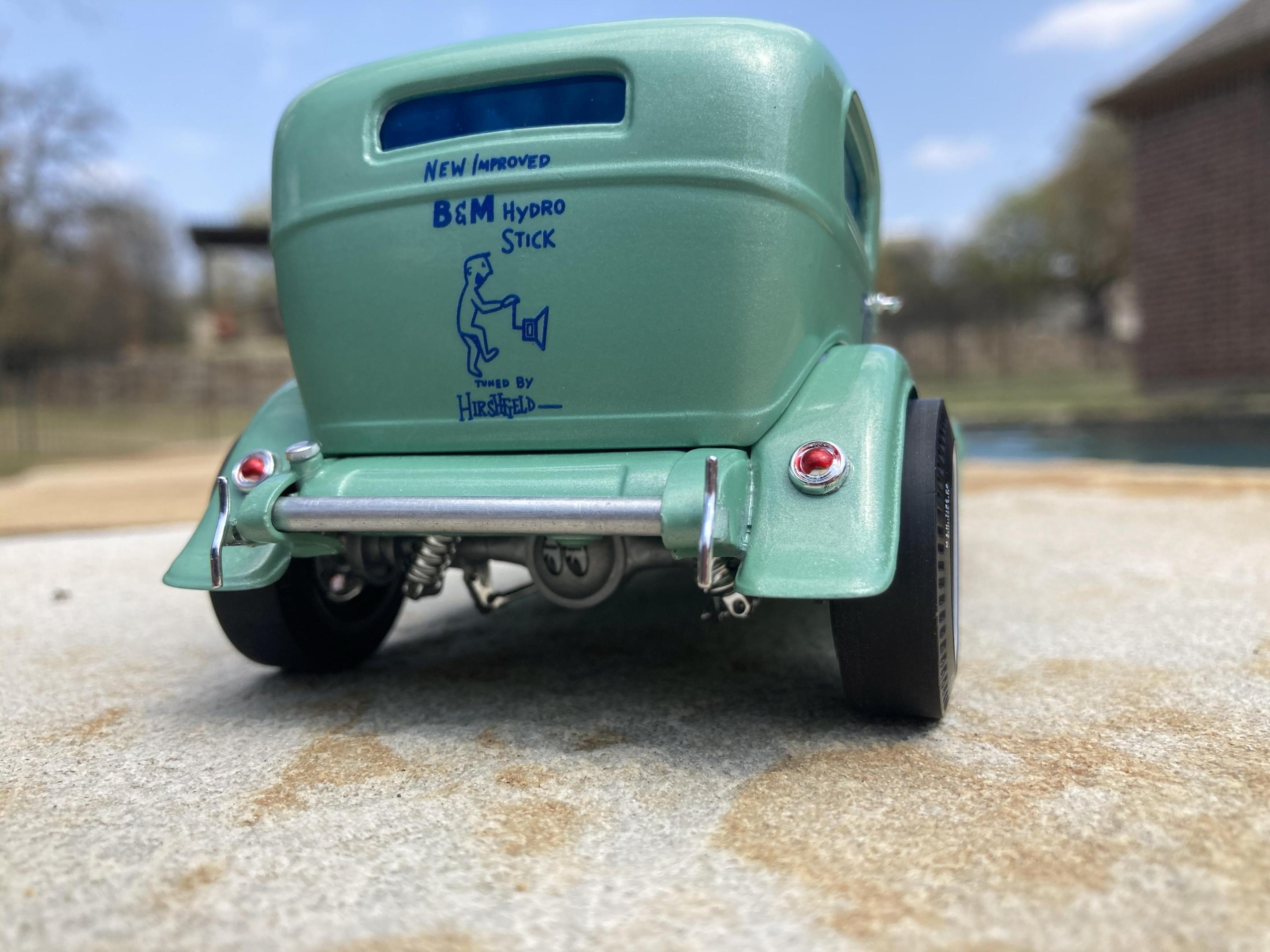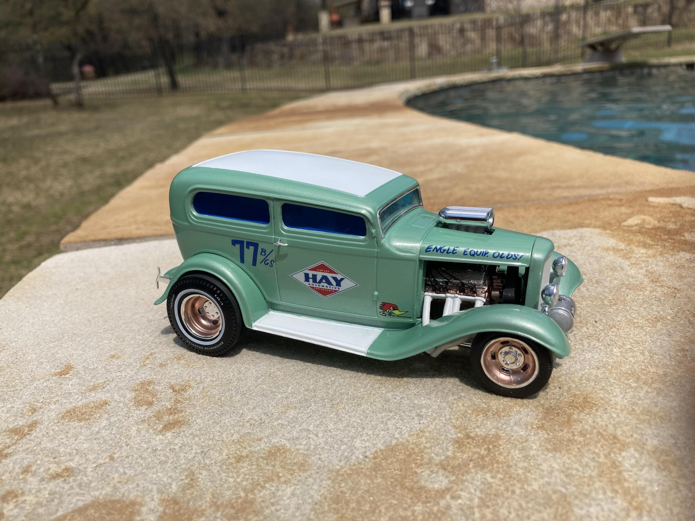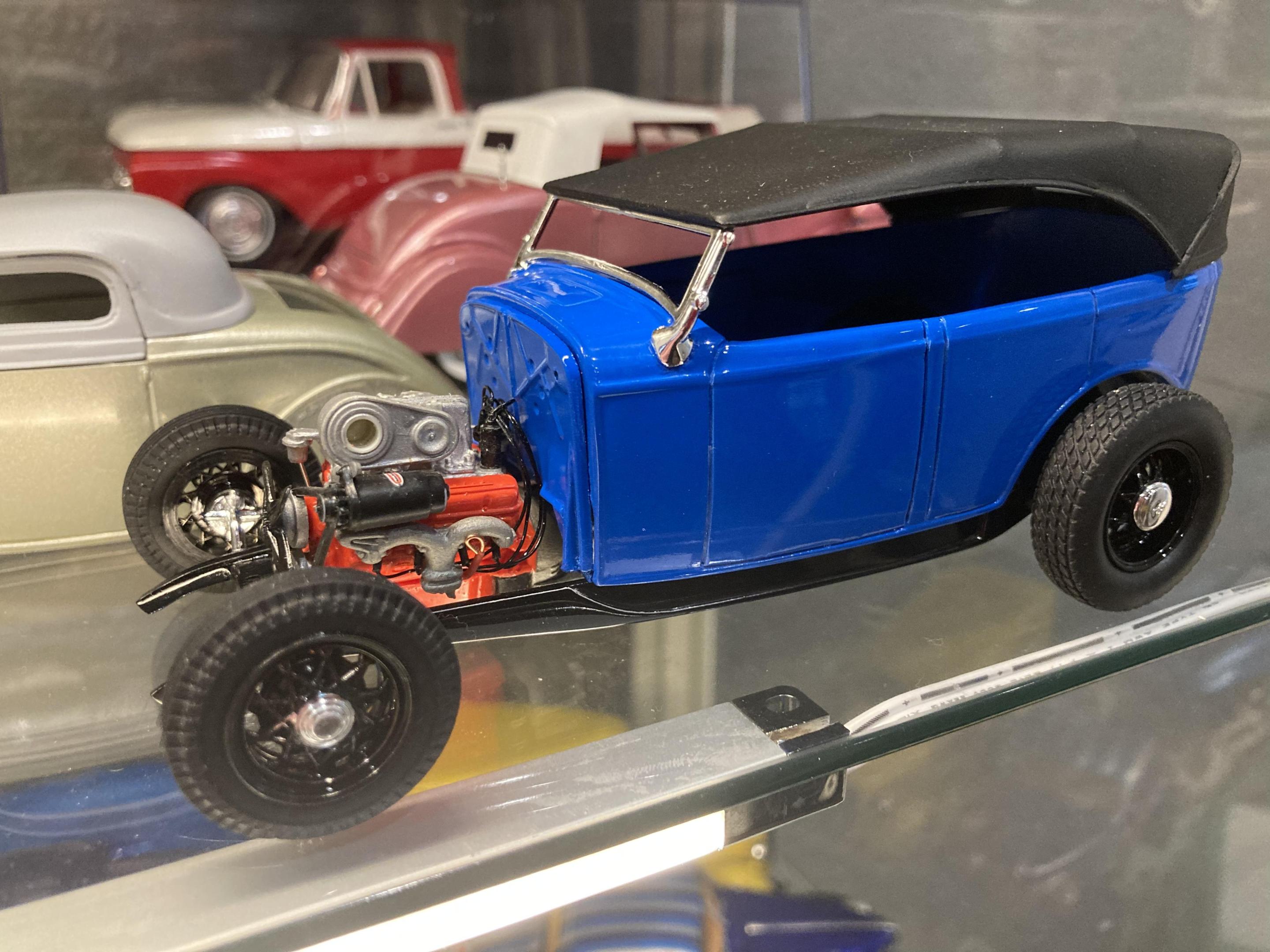 Really cool Tim. I’ve only built the convertible and woody, and only the convertible has survived. I have the custom chopped coupe kit but I’ve already robbed the tires out of it so I need to stop doing that and build it. You mentioned others saying the chop was funky, and I concur, probably why I haven’t built it yet but your builds look great so I should just dive in. I painted this vert Testors green from an airbrush, Corvette FI small block, I used 1/24 32 Ford bumpers to replicate those 3 rib “Briz” bumpers that were so popular 20 years ago.
