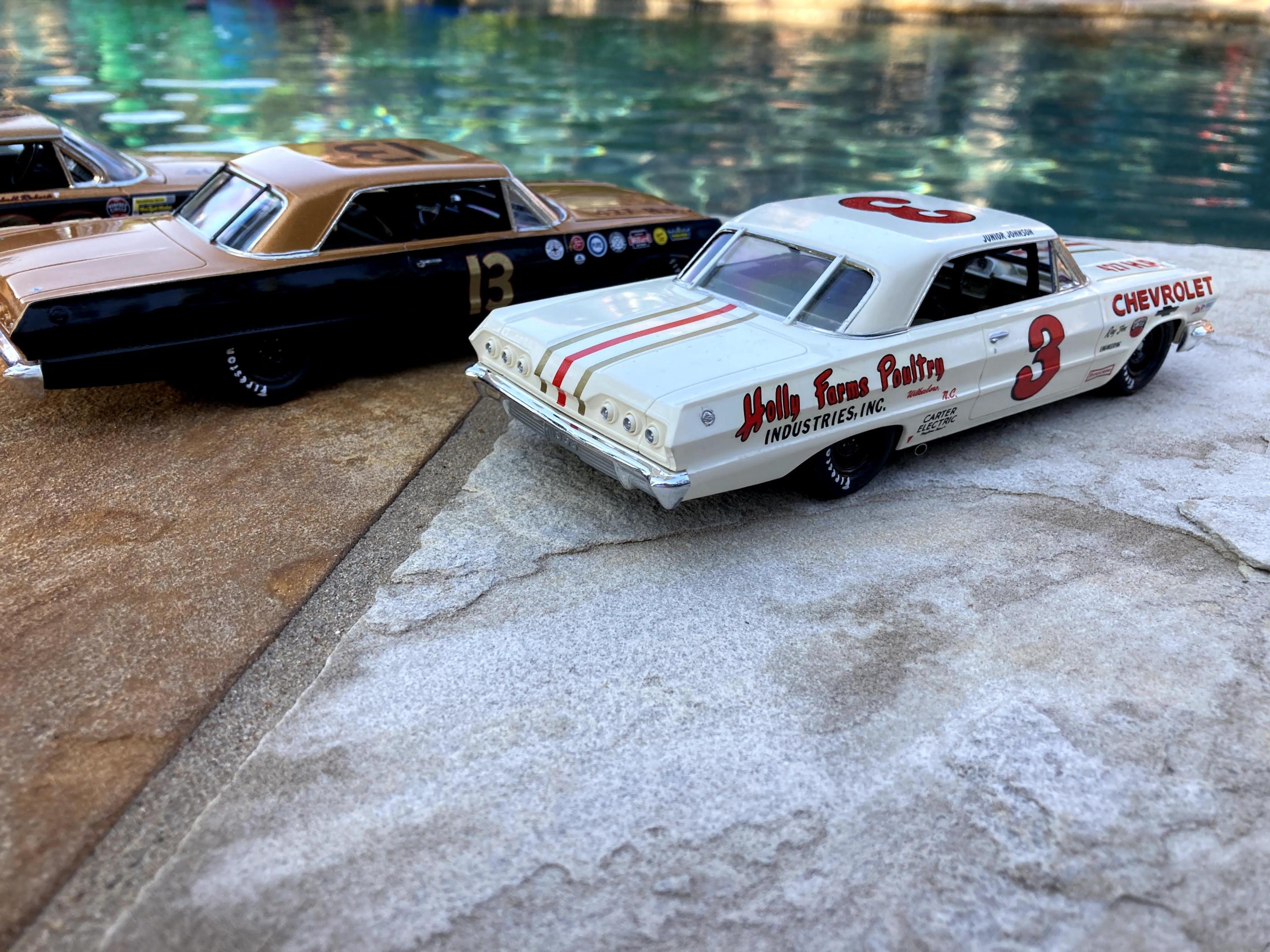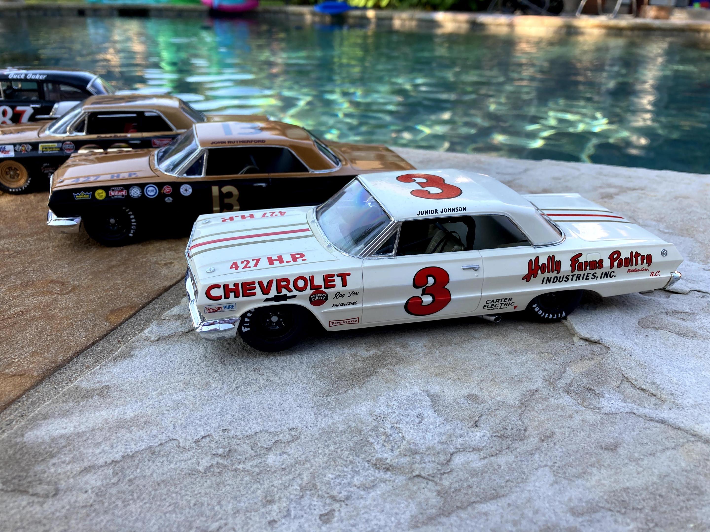 Our house burst a pipe in the attic during the great freeze of 2021 in Texas. It dropped the ceiling in the living room and flooded the house. We had to move out for 7 months and live with my in-laws. So, to keep from killing anyone I built a lot of models! 32 Sedan, 32 Bob McGee Roadster, 57 black widow, Rutherford 63 Chevy, Johnson 63 Chevy, Fireball Roberts 62 Pontiac