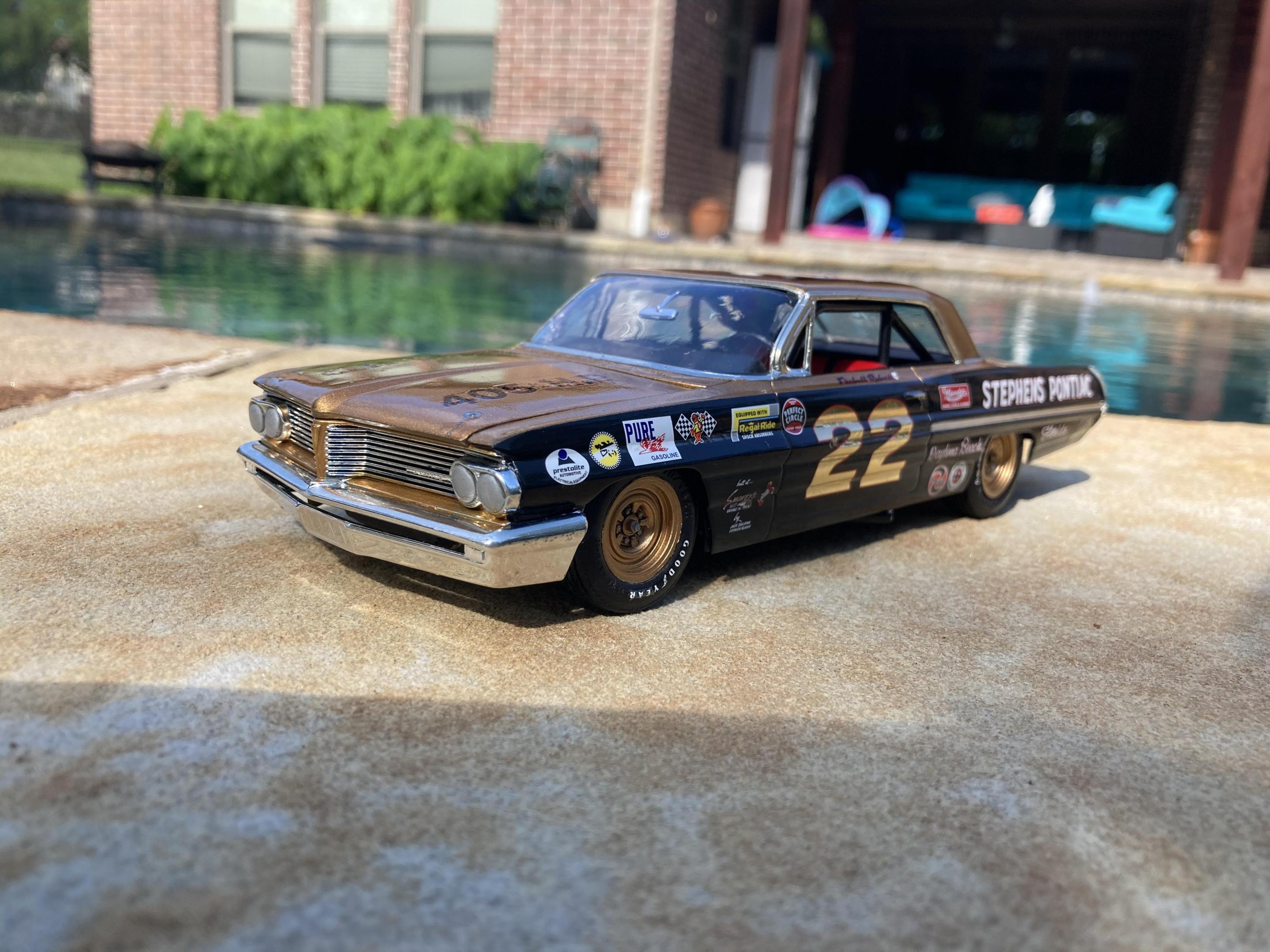 I've been on a vintage stock car kick lately. The latest is this Johnny Rutherford Smokey Yunick prepared 63 Chevy. Tamiya paint with wet look clear, color sanded and rubbed with 3M Perfect-it. Others pictured are Junior Johnson's 63 Chevy, Fireball Roberts 62 Pontiac, and Buck Baker's 57 Chevy. There are threads posted for the 62 Pontiac and 57 Chevy if you want more details. Thanks for looking!