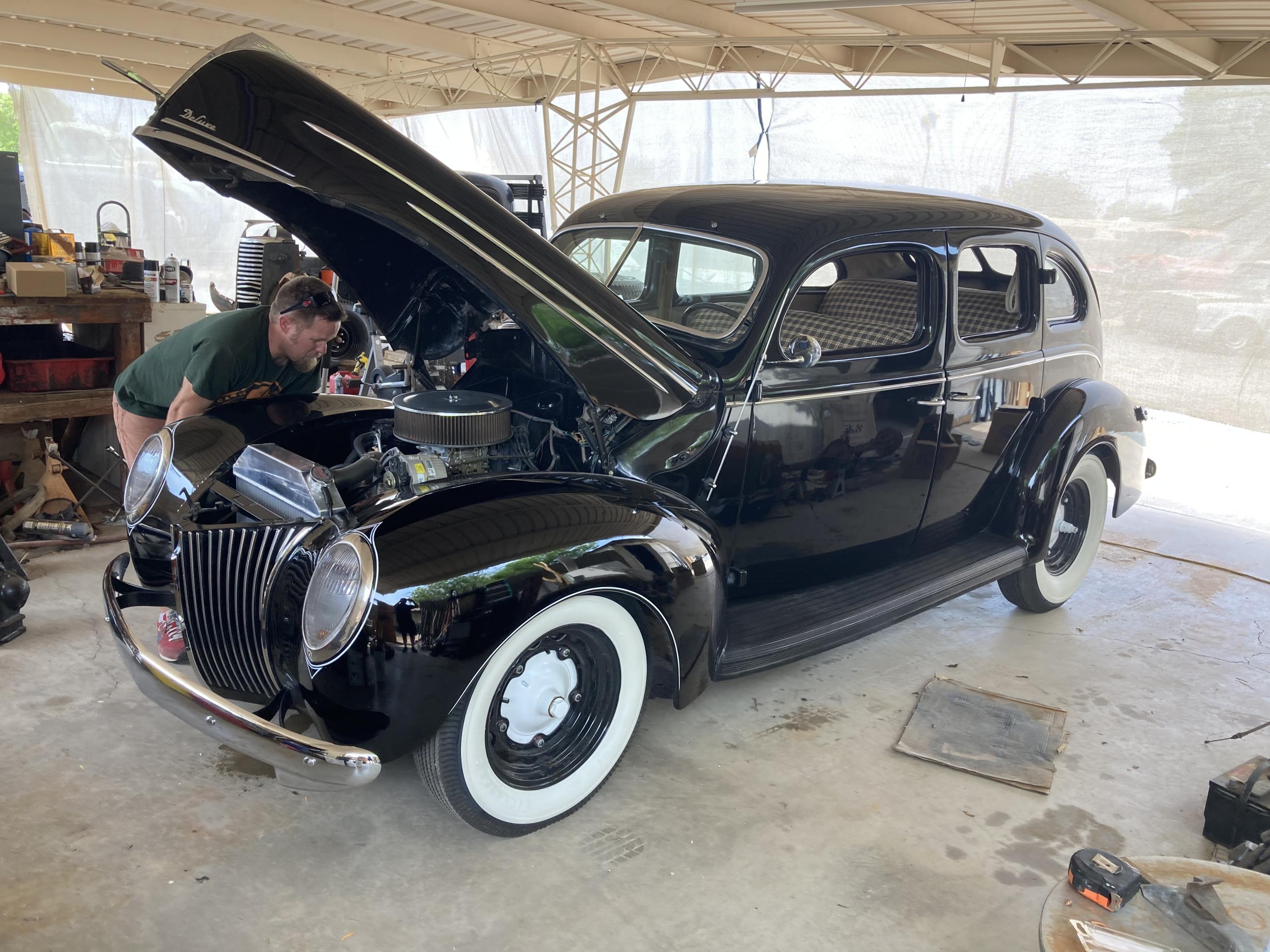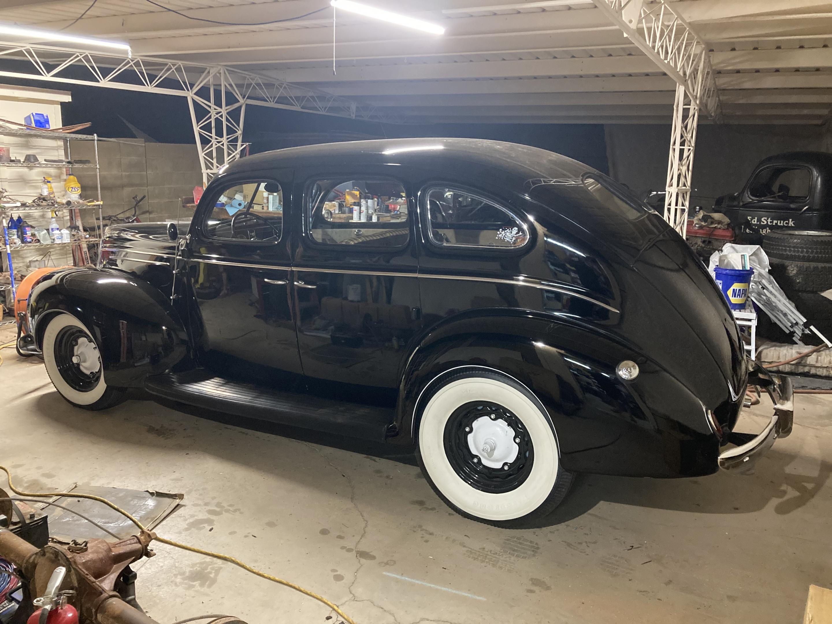 This just followed me home. Really solid car, zero rust, old paint job shines nice. Rare 40 Olds bumpers. SBC hooked to the 39 box and banjo. It has a dropped spring in front with stock spring in back and stock front axle. Plans are to lower it with a dropped axle and lowering spring in the rear. Also add front and rear sway bars so it doesn’t feel like it’s going to flip over in turns. Very reliable driver with some things that need tinkering. It’ll be a fun cruiser for me and the family. It came with AC that needs to be installed. It had full wheel covers that the PO kept, so I need to figure out a wheel solution. Probably paint the drums at least. Enjoy!