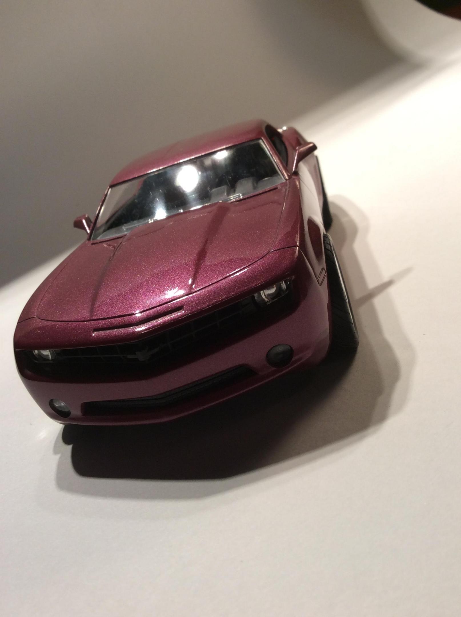 Just finished this up. I had hoped that the color would have been a little more red than it is, almost looks raspberry to my eye. Very simple kit to put together and I enjoyed building it. The paint finish turned out very glossy, although not really caught in my photos. I need better lighting.