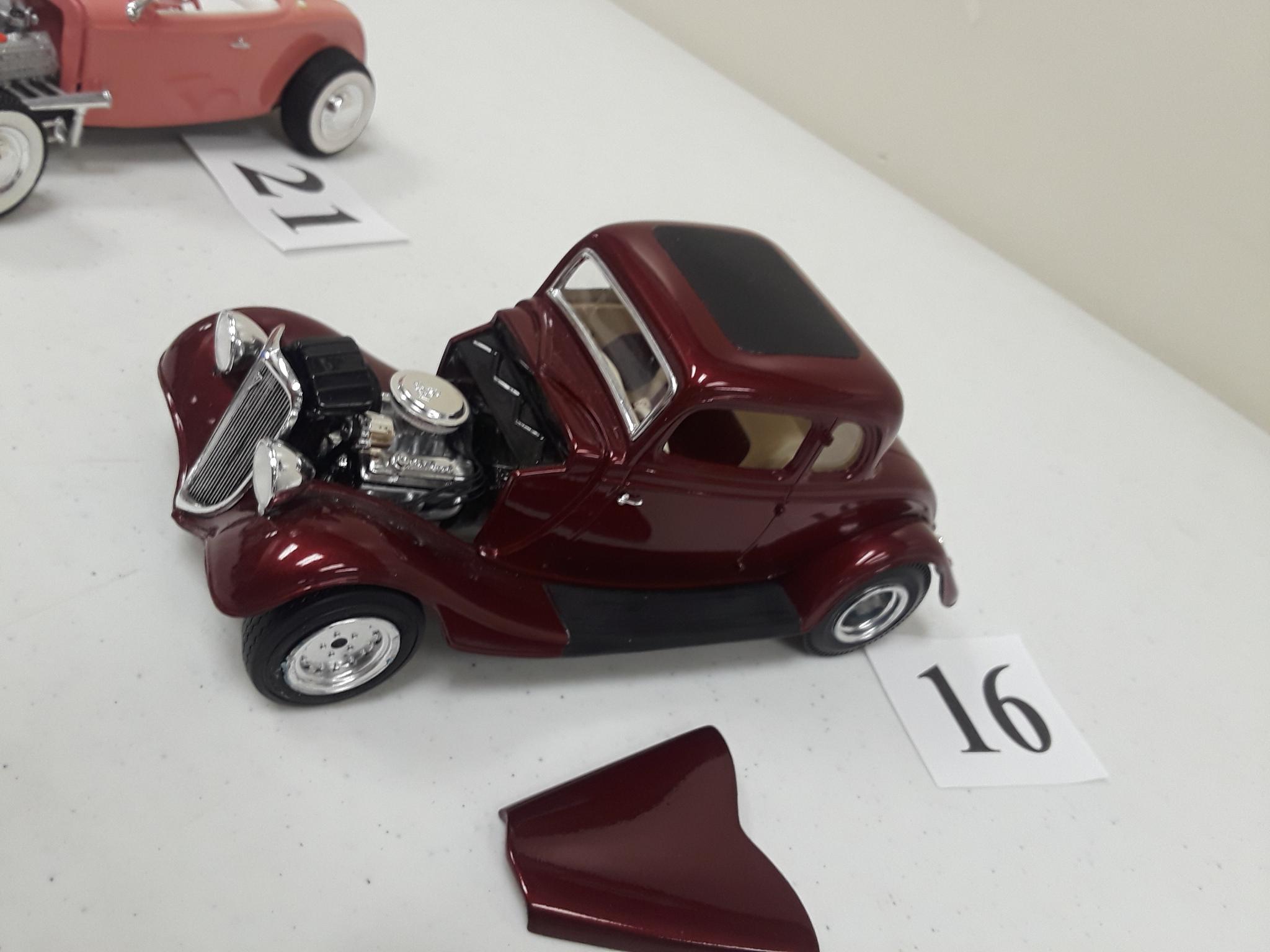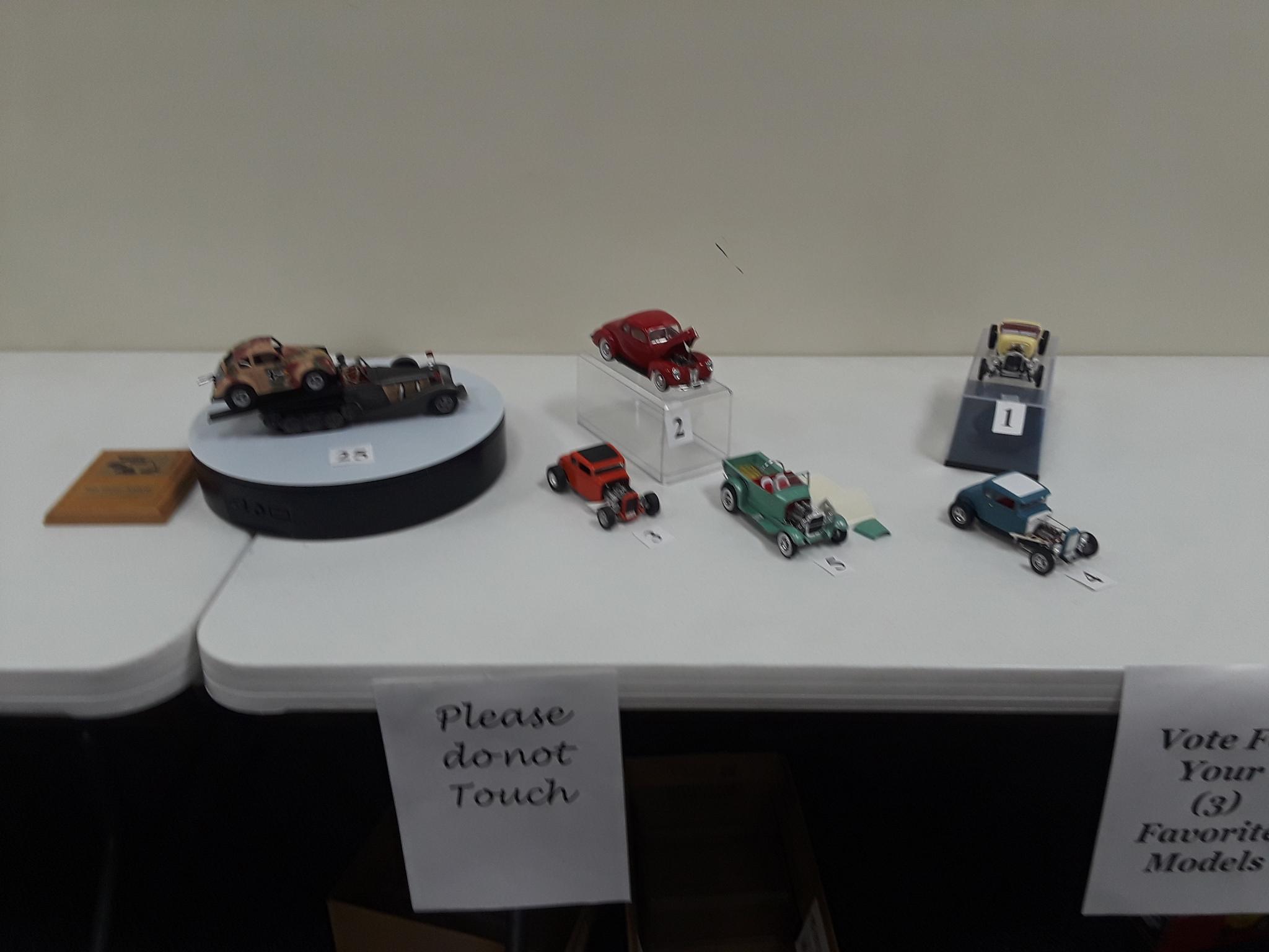 The fall show was bigger than our spring event, we had 51 entries for the show, 10 models in the Cruise In display table, and over 40 people including some from another club who awarded plaques to vehicles they chose. The voting was close with only 1 vote difference between the 1st, 2nd, and 3rd place winners. Unfortunately we didn't have any junior entries. Thanks for looking, hope you enjoy the photos, try to guess the winners, and comments are welcome. First photos are overall table shots. This is some of the Cruise In table models Here are some individual entries. Here are the winning entries: Third Place is an entry that was made to compete in a military competition (the owner only builds model cars so he entered this) Randy Litwiller, Rommel Rat Rod carrier w/ VW Second place is based on "The Green Ghost" with many details from the book built by Lei Cannon, 40 Willys First Place winner (also winner of the spring show) Jack Brejc with his highly detailed 32 Ford 3 window. He chopped the top 3 inches, added Eddie Myers flathead engine, photo etched grille and many other added details, worked on this for 6 months Thanks again for looking. See you next spring.- 1 reply