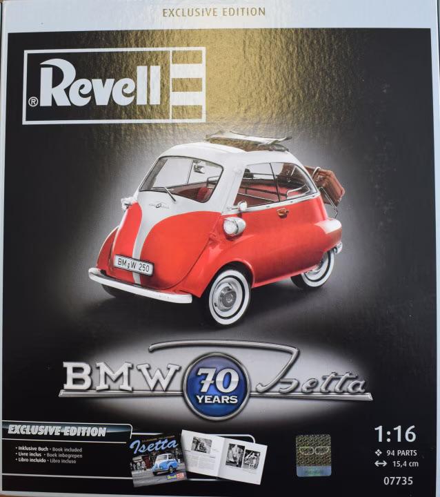 Great job Vince on this big Revell Isetta. That two-tone blue&white is a perfect period correct choice and looks really good with the plaid. I love that Revell engineered the kit so that the steering column/ wheel articulates outward when the door opens, a really cool feature. I built this kit when it was first released (2016?) and remember it going together like a Tamiya, your build makes me want to do another one. I did a search and it looks like the original kit is no longer available. Revell Germany has just released a new "70th Anniversary" edition which includes a book but unfortunately it doesn't appear to be available within the US yet: I purchased the Revell Trabant Anniversary edition with a paperback history book included from HLJ (pre-tariff) and the book is excellent.