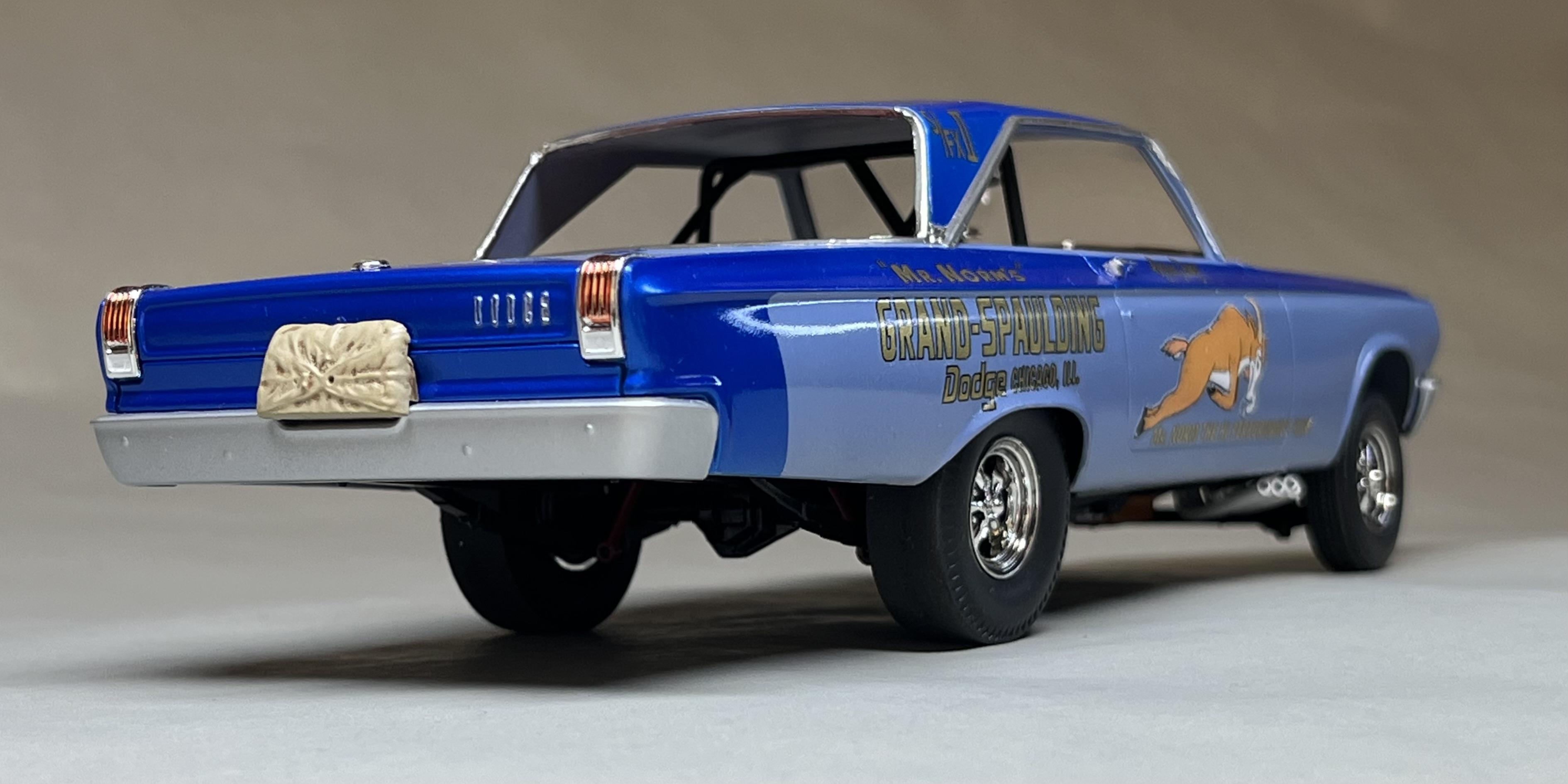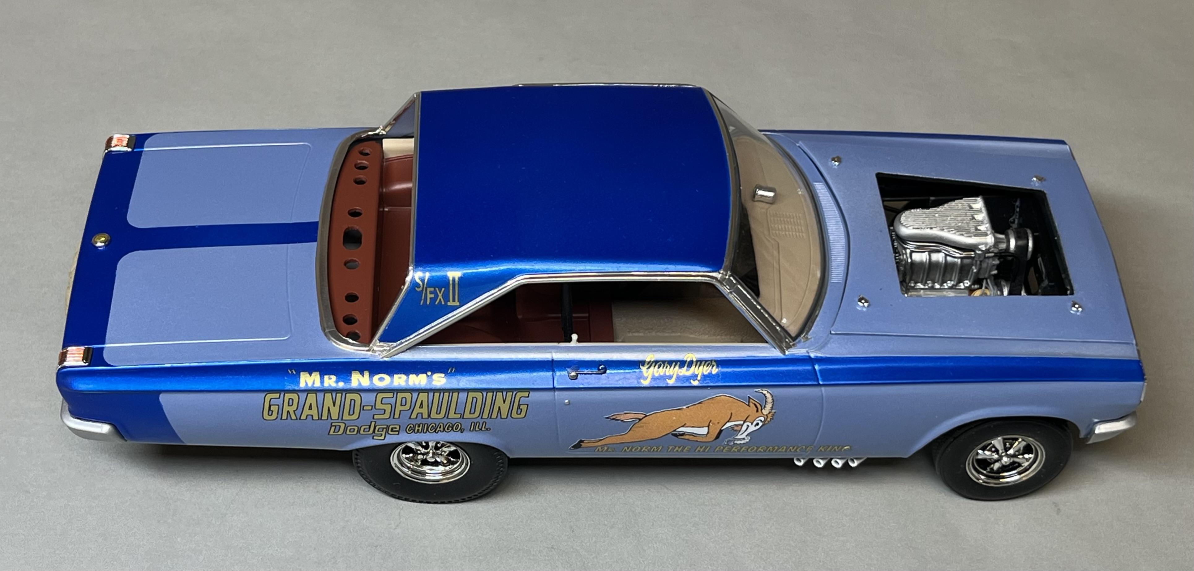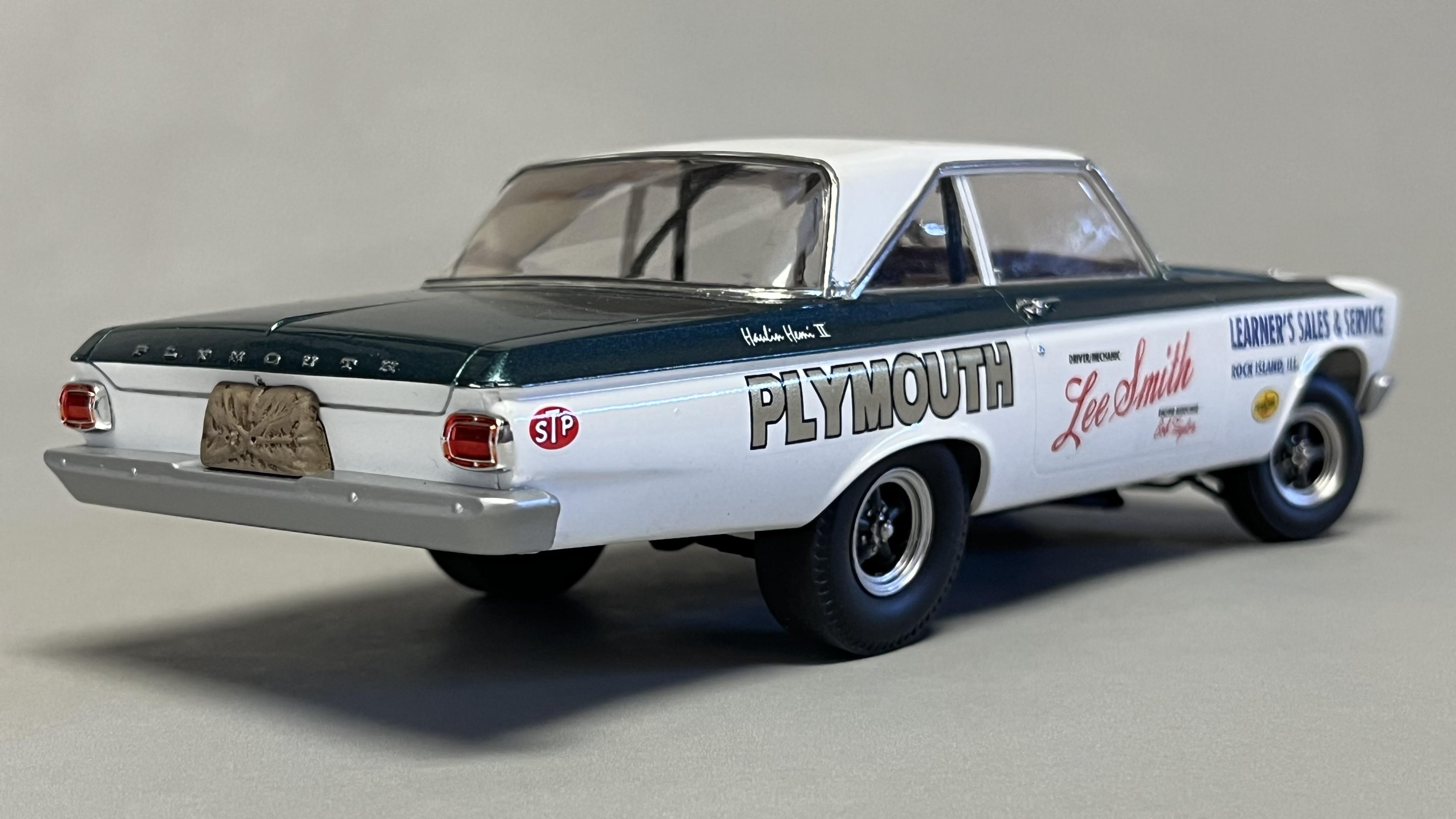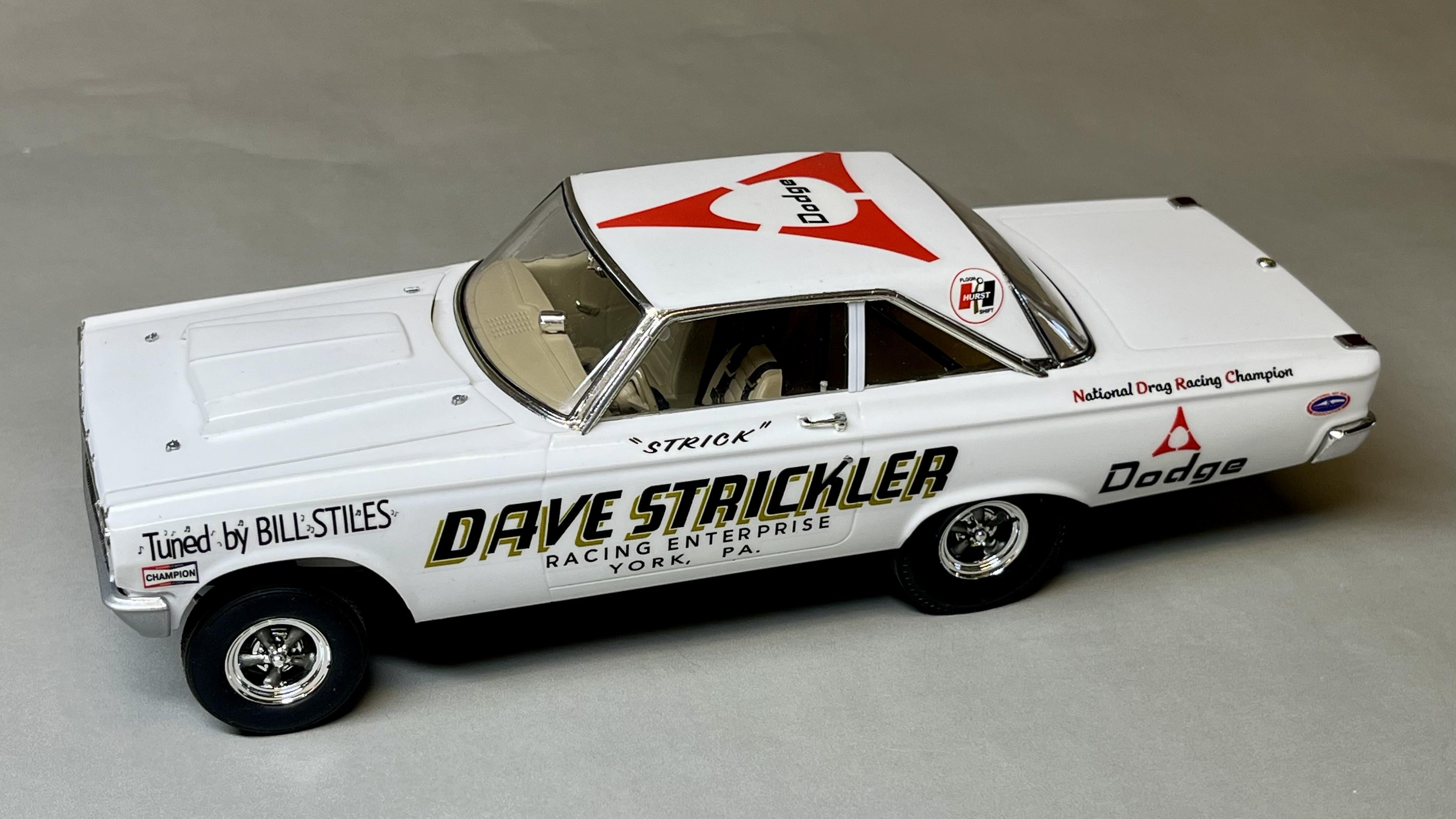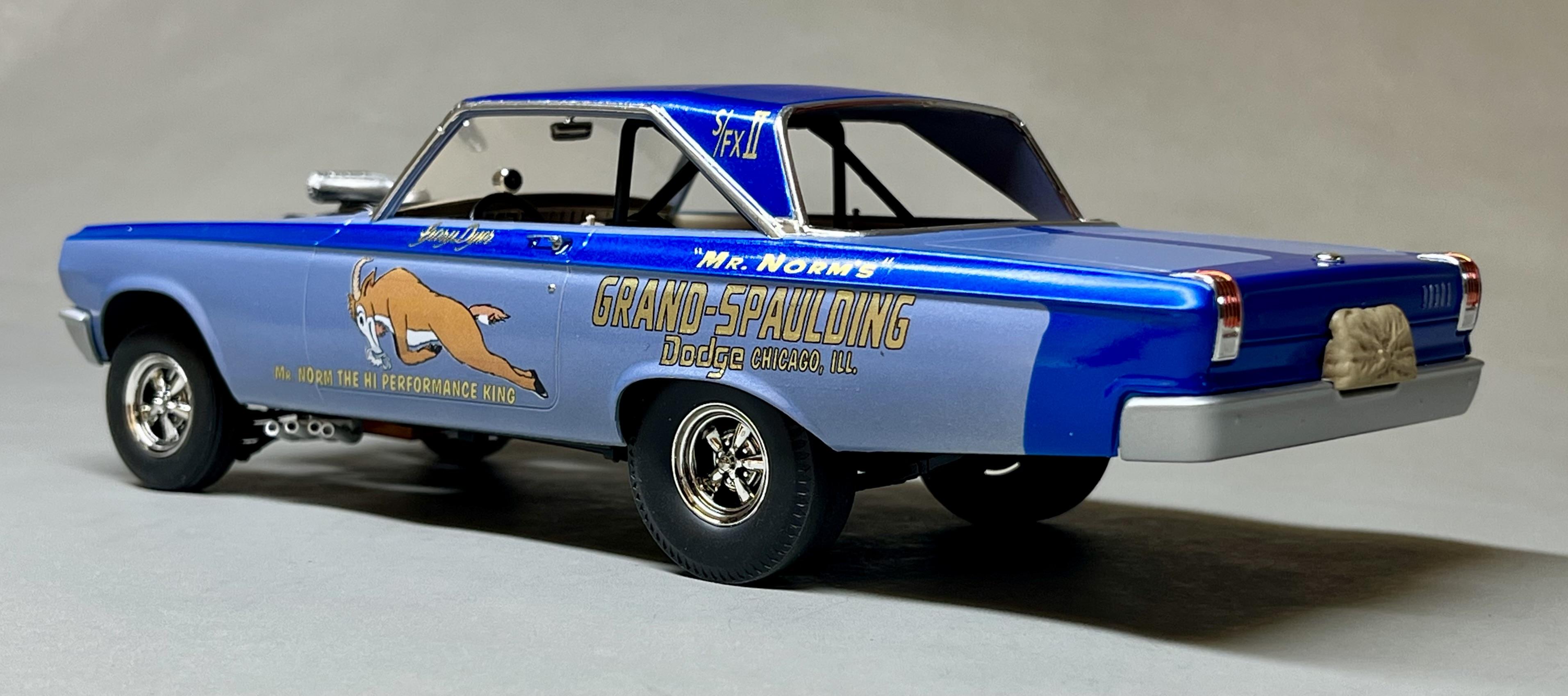 More big decals Mike and you did a great job on this one too! Those long ones along the middle of each side profile must have been a challenge. At this rate you're going to have a 1/25 reproduction of every one of the '65 AWB Mopars.... impressive! Once you've completed everyone on your list, please line 'em all up and post a group pic of them. I would love to browse through your SS magazine collection, it would make for some fun mid-60's drag racing reminiscing! -