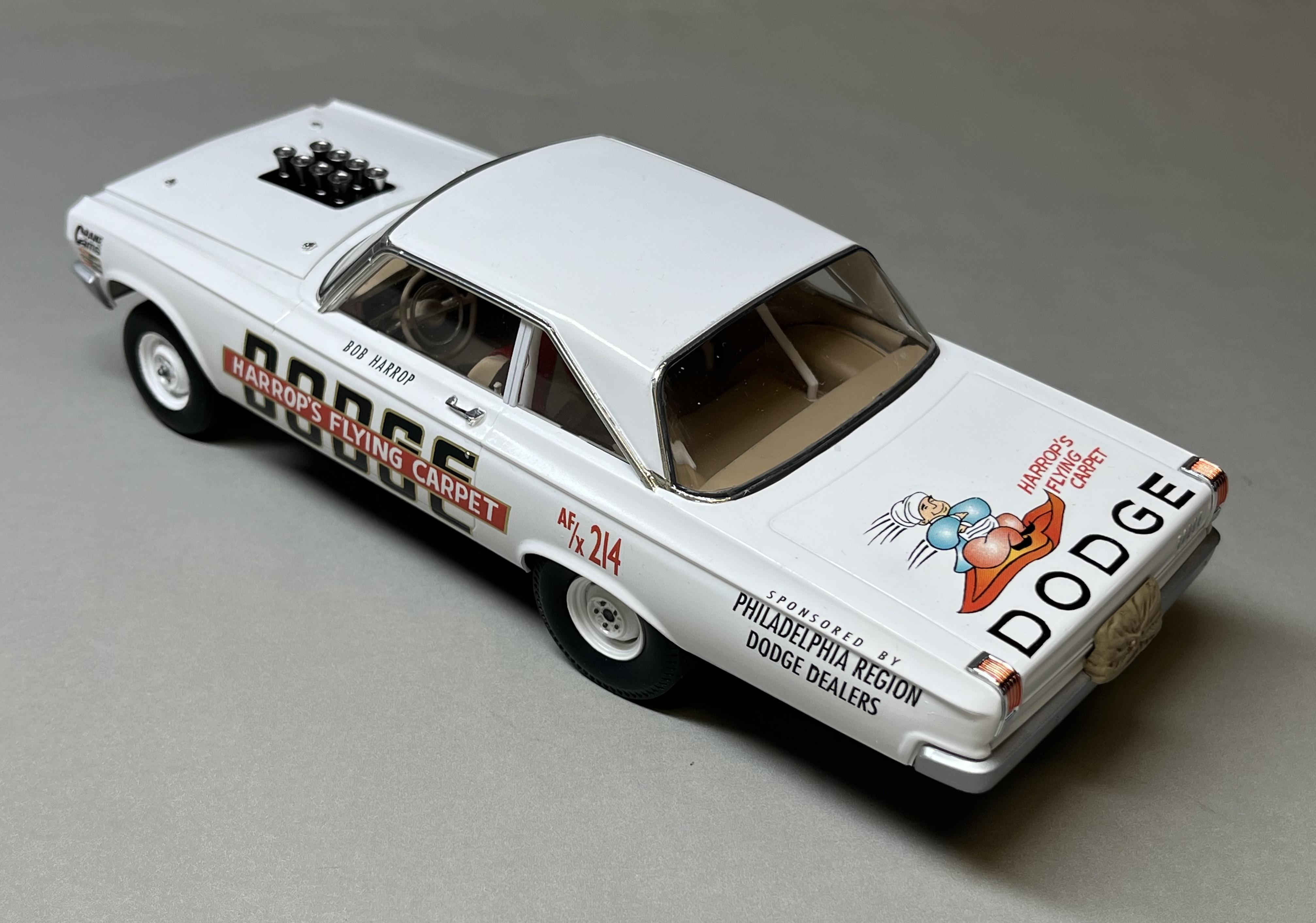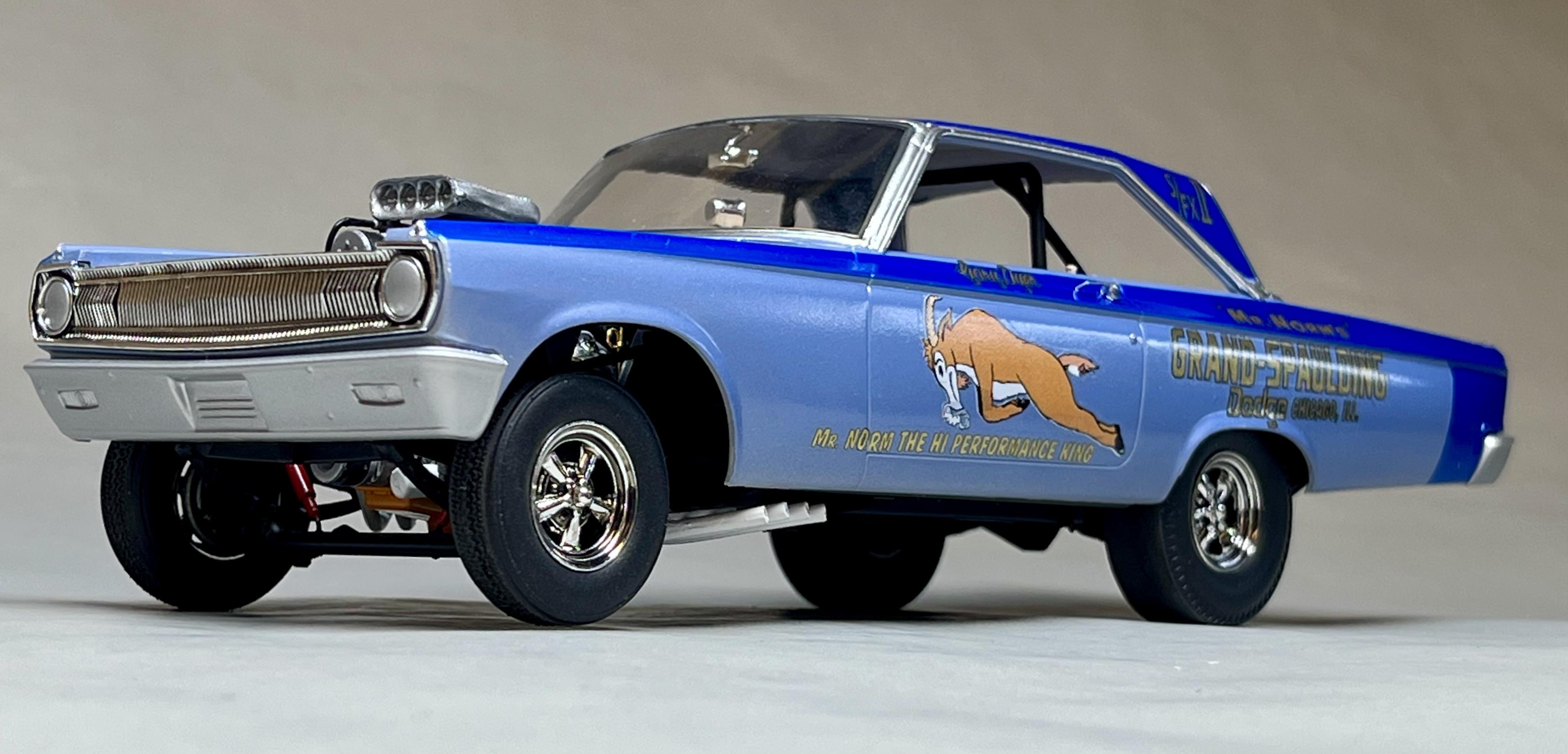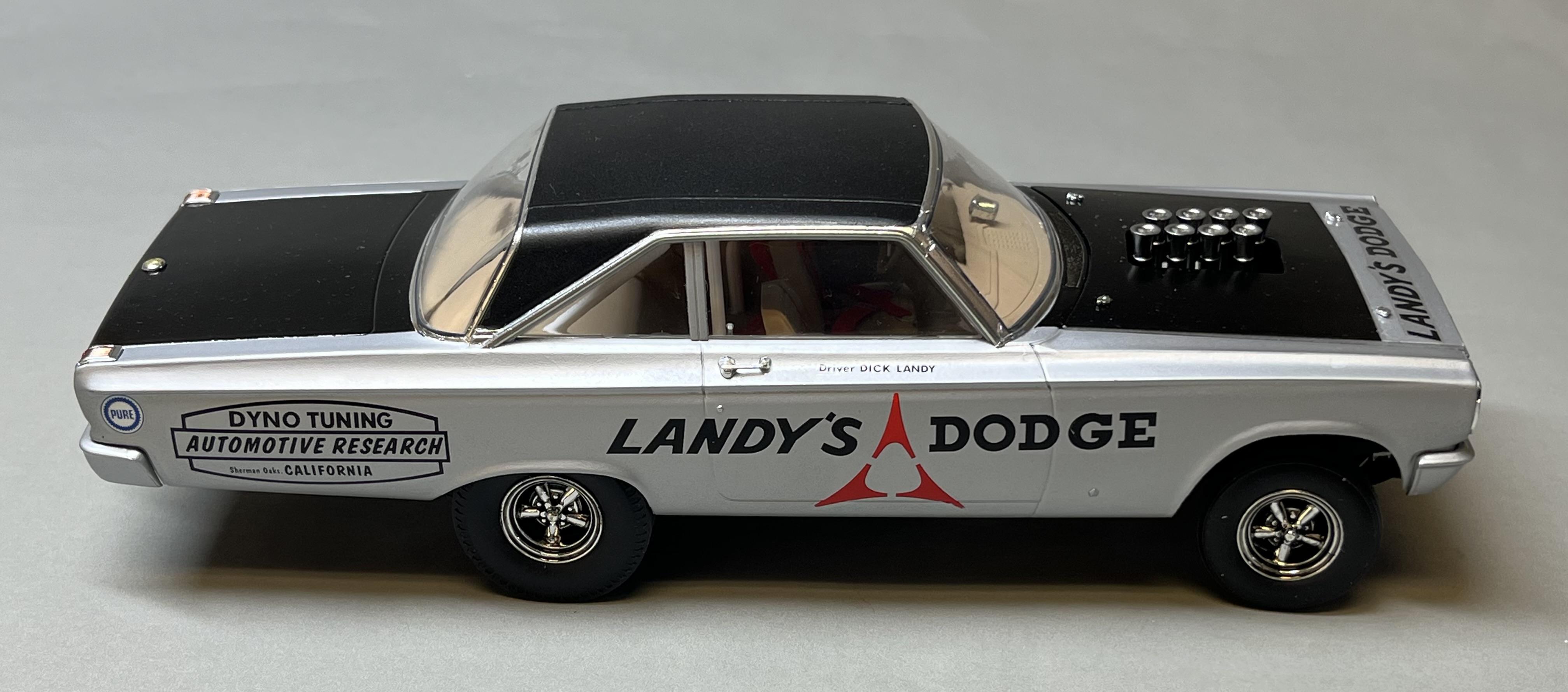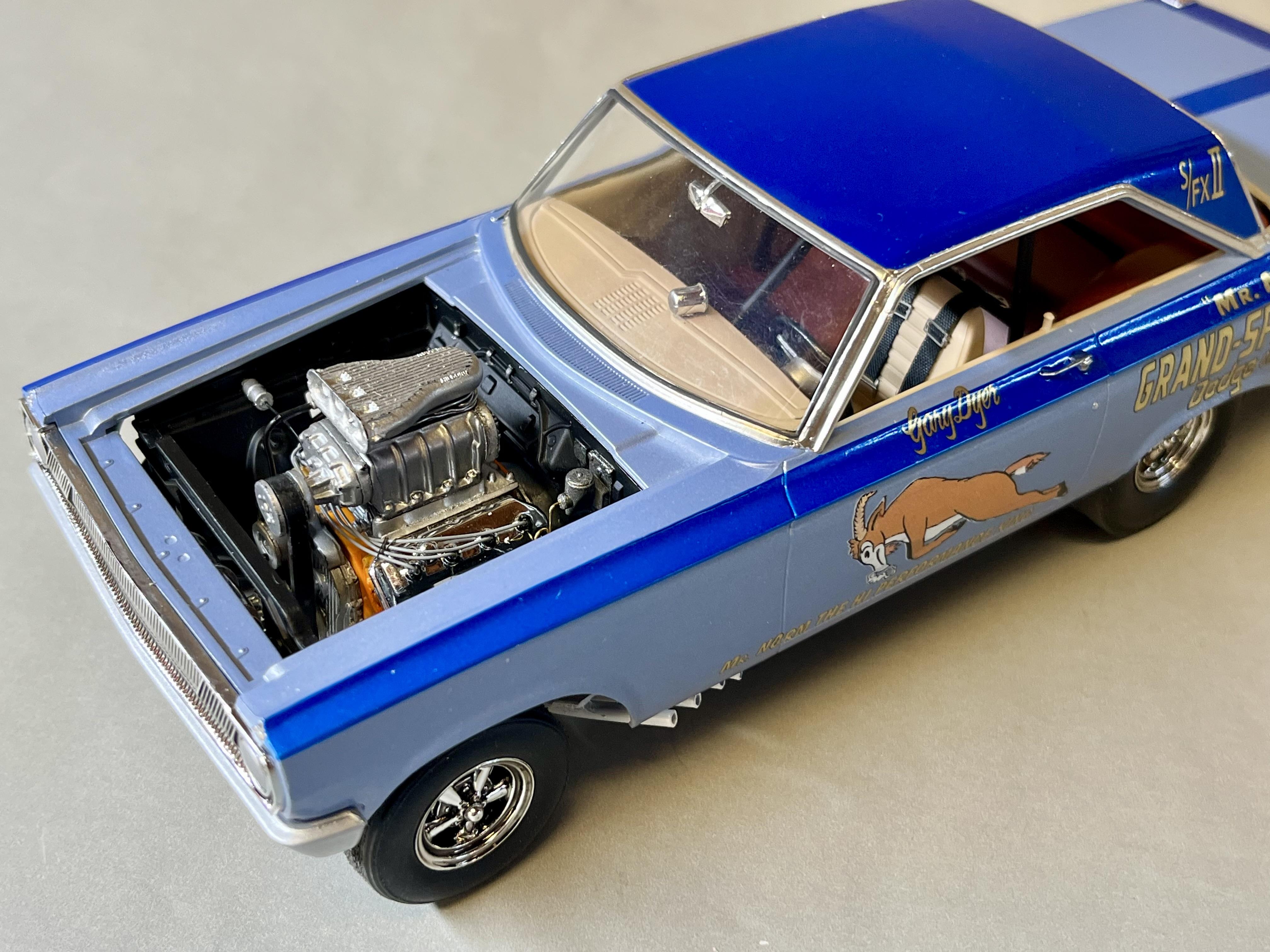 More big decals Mike and you did a great job on this one too! Those long ones along the middle of each side profile must have been a challenge. At this rate you're going to have a 1/25 reproduction of every one of the '65 AWB Mopars.... impressive! Once you've completed everyone on your list, please line 'em all up and post a group pic of them. I would love to browse through your SS magazine collection, it would make for some fun mid-60's drag racing reminiscing! -
