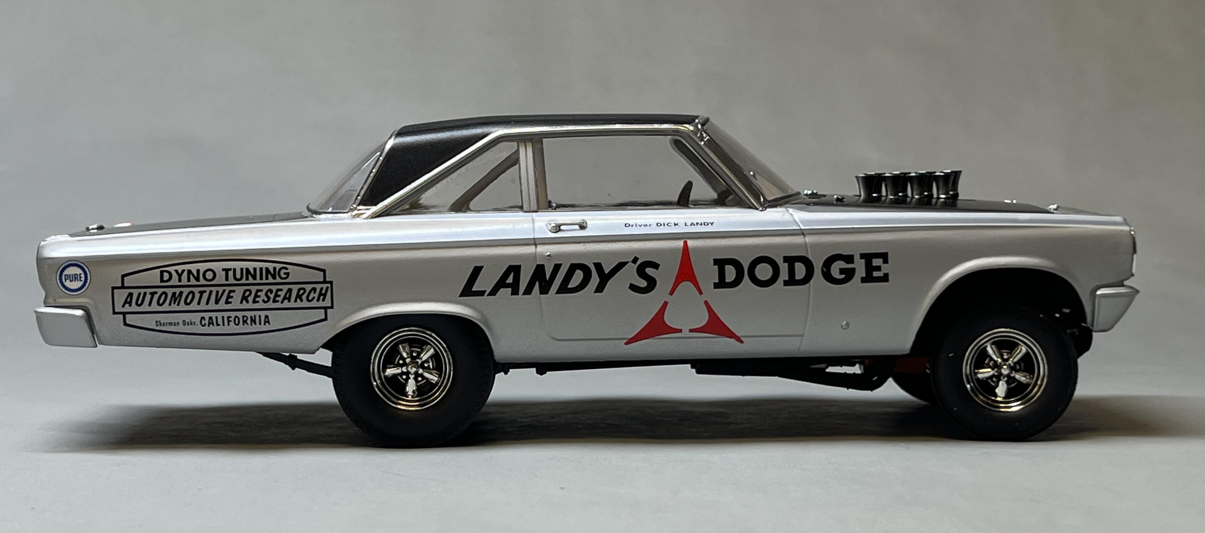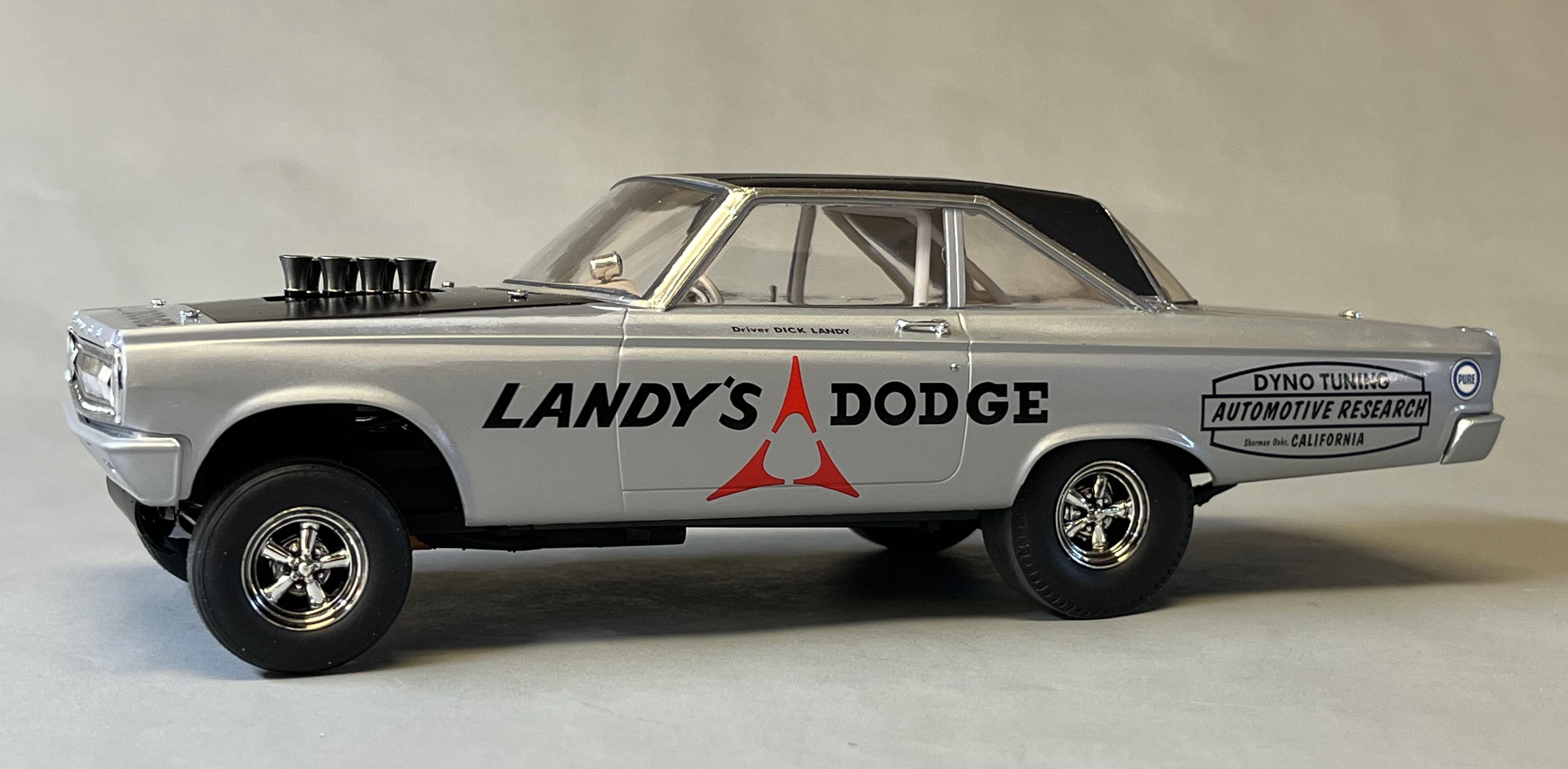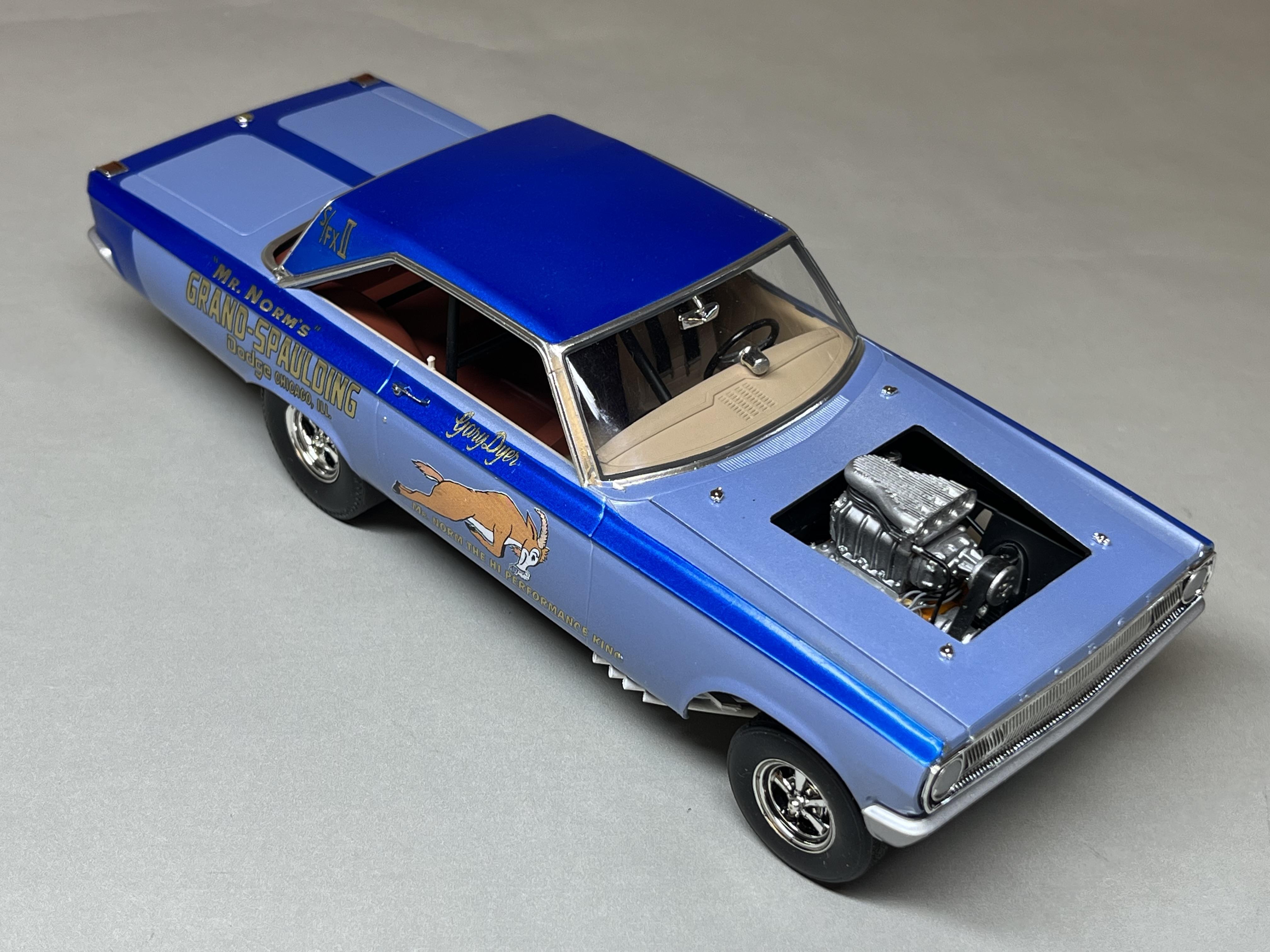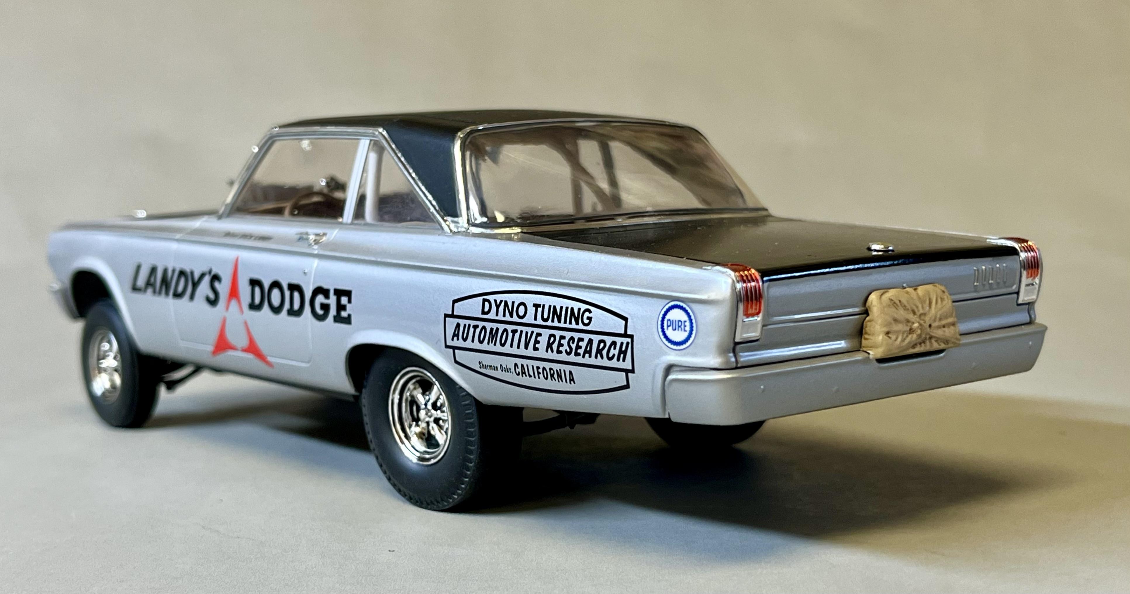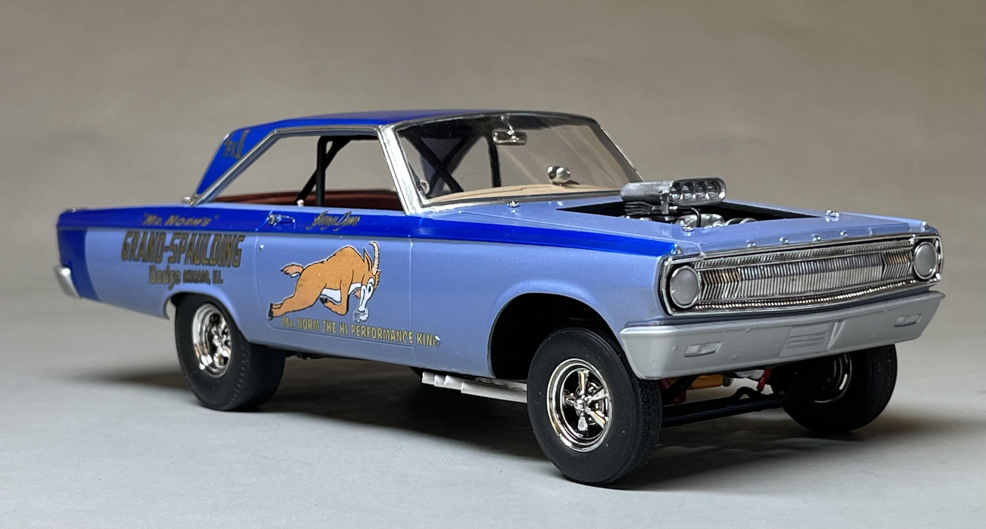 More big decals Mike and you did a great job on this one too! Those long ones along the middle of each side profile must have been a challenge. At this rate you're going to have a 1/25 reproduction of every one of the '65 AWB Mopars.... impressive! Once you've completed everyone on your list, please line 'em all up and post a group pic of them. I would love to browse through your SS magazine collection, it would make for some fun mid-60's drag racing reminiscing! -