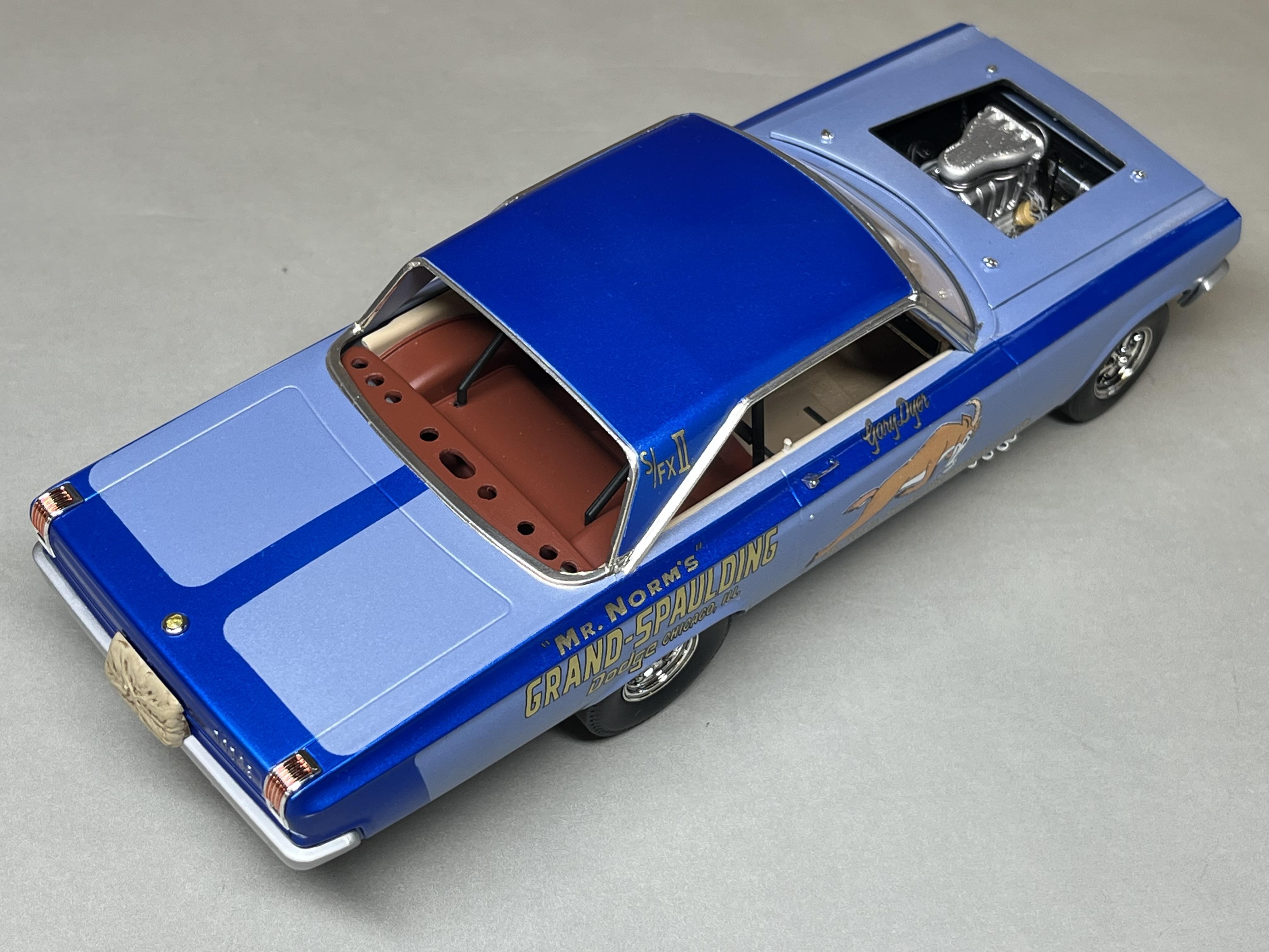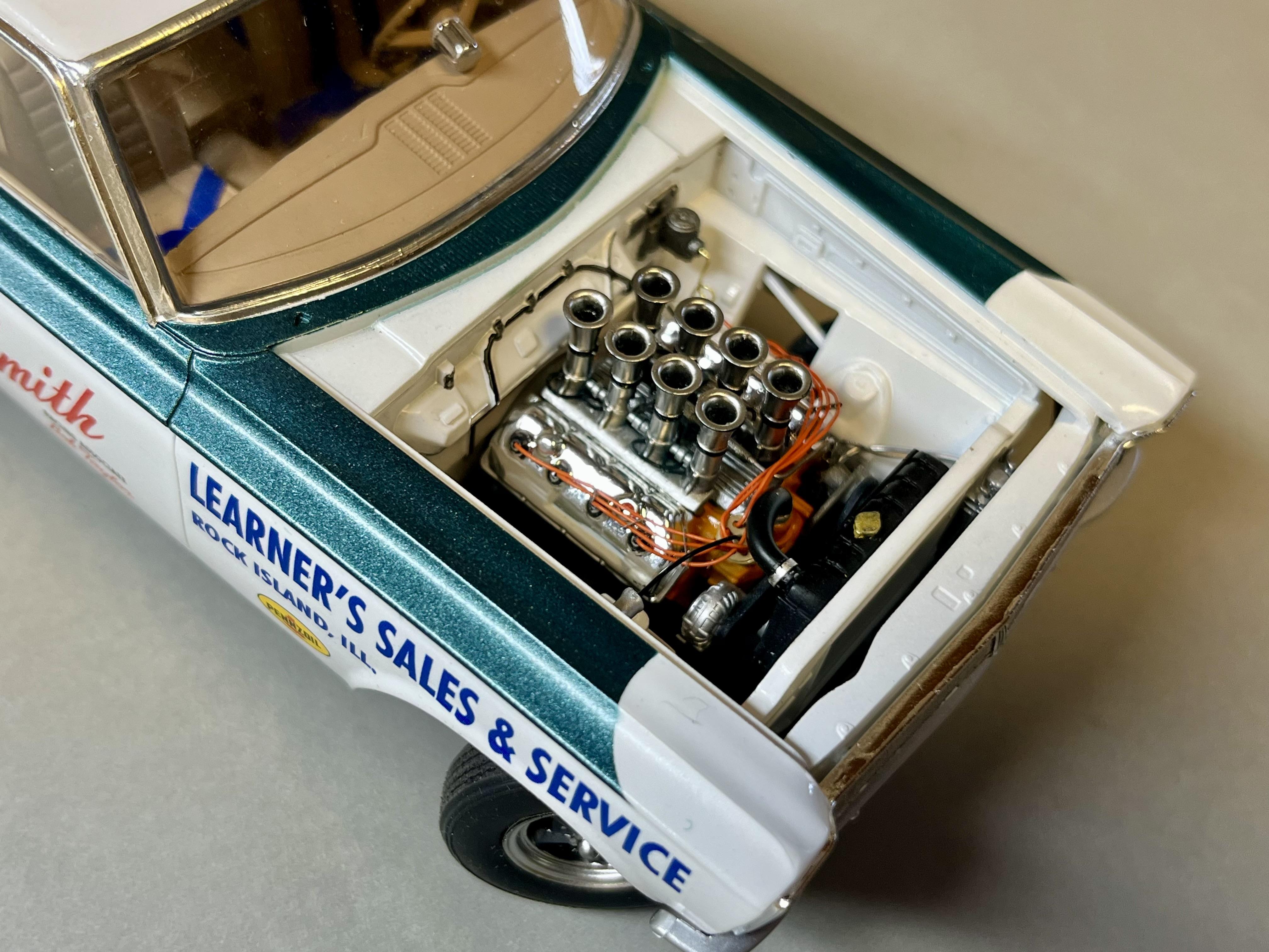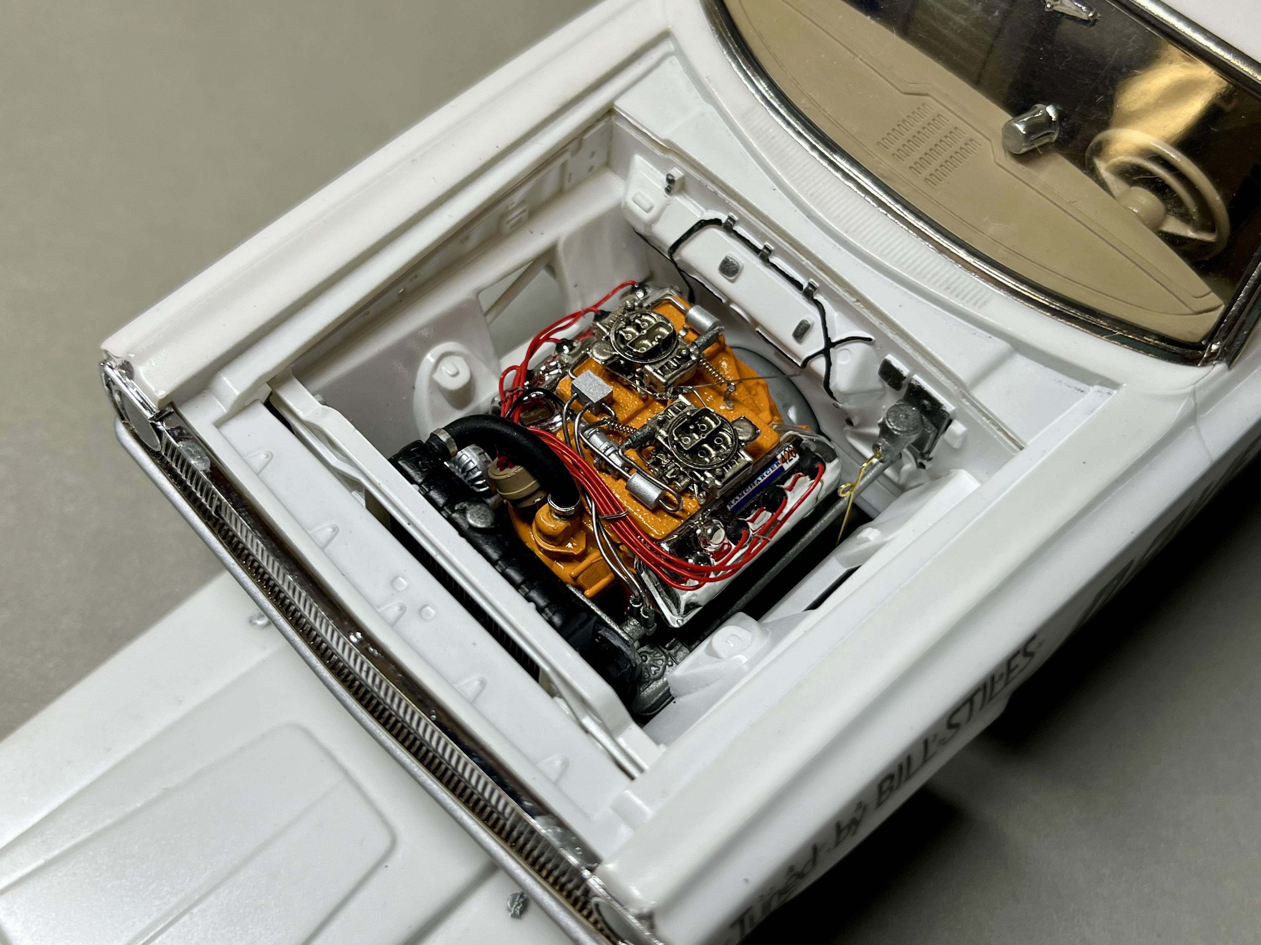 Cool build & magazine Mike! I agree with that this Bud Faubel "Hemi Honker" is one of the more striking cars of the '65 Mopar AWB A/FX's. I would love to build his "Hemi Honker" version with the twin turbochargers if there was an aftermarket/ resin mod kit, it would be a challenge beyond my skills to scratch build the engine bay details: Question: are "Chris Walsh decals" and the eBay vendor "The Glory Years Decals & Graphics" one and the same? The decals on your build above appear to be of pretty good quality (vector graphics, Alps printed with white as well as the colors?) and the decals listed by this eBay vendor include this car, are reasonably priced and offer a lot of mid-60's SS subjects which I wasn't aware were available. Have you bought decals from this eBay vendor and would you recommend them? As always, decals tend to be my determining factor of what door slammers I build.