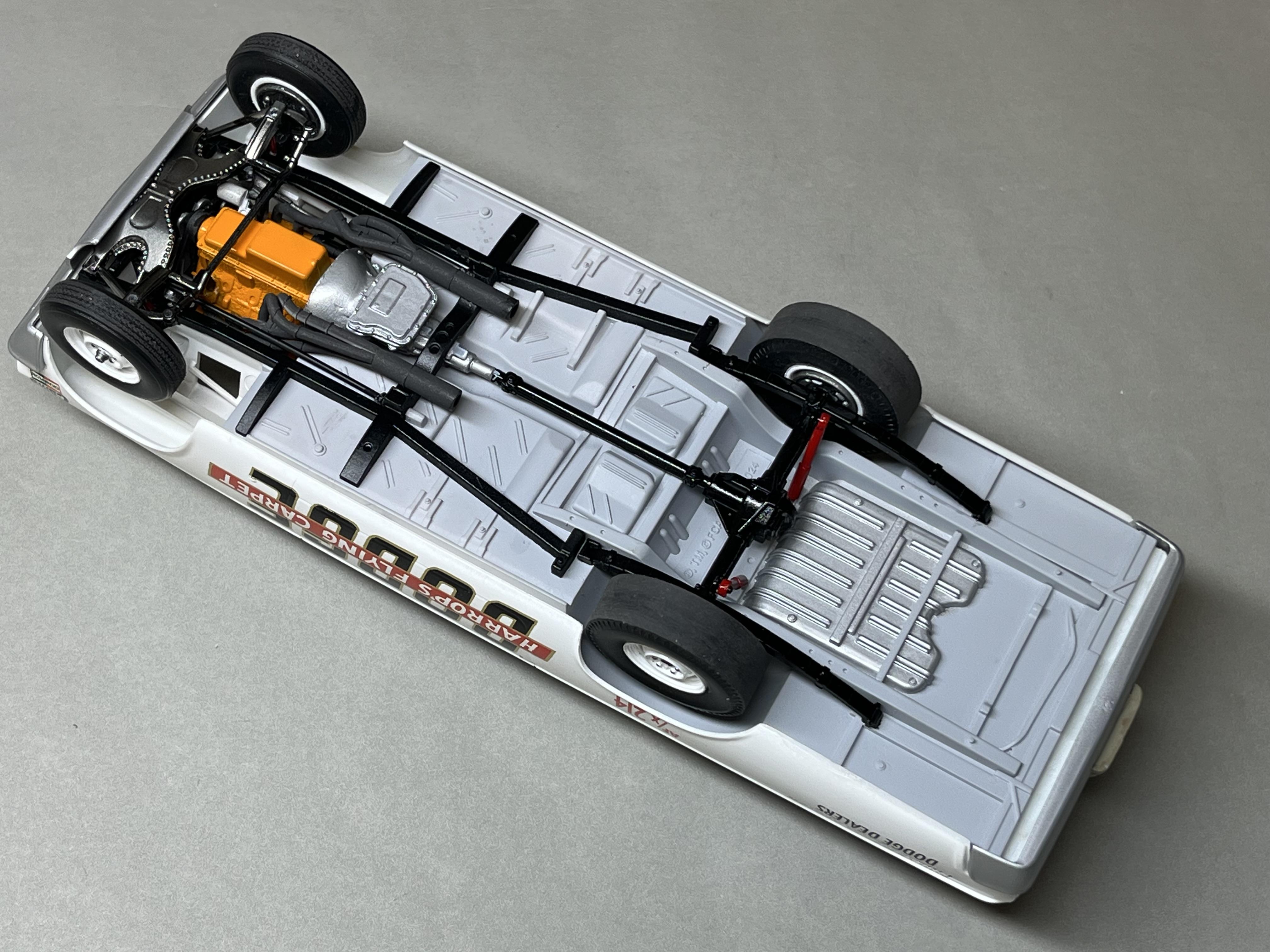 This one used the excellent Racing Racing Specialties decal set and the kit Hilborn FI. Aftermarket parts (Detail Master distributor/ wiring/ Gopher harness parts, scratch-built fuel lines same as the other builds. Love these "flying carpet" markings.