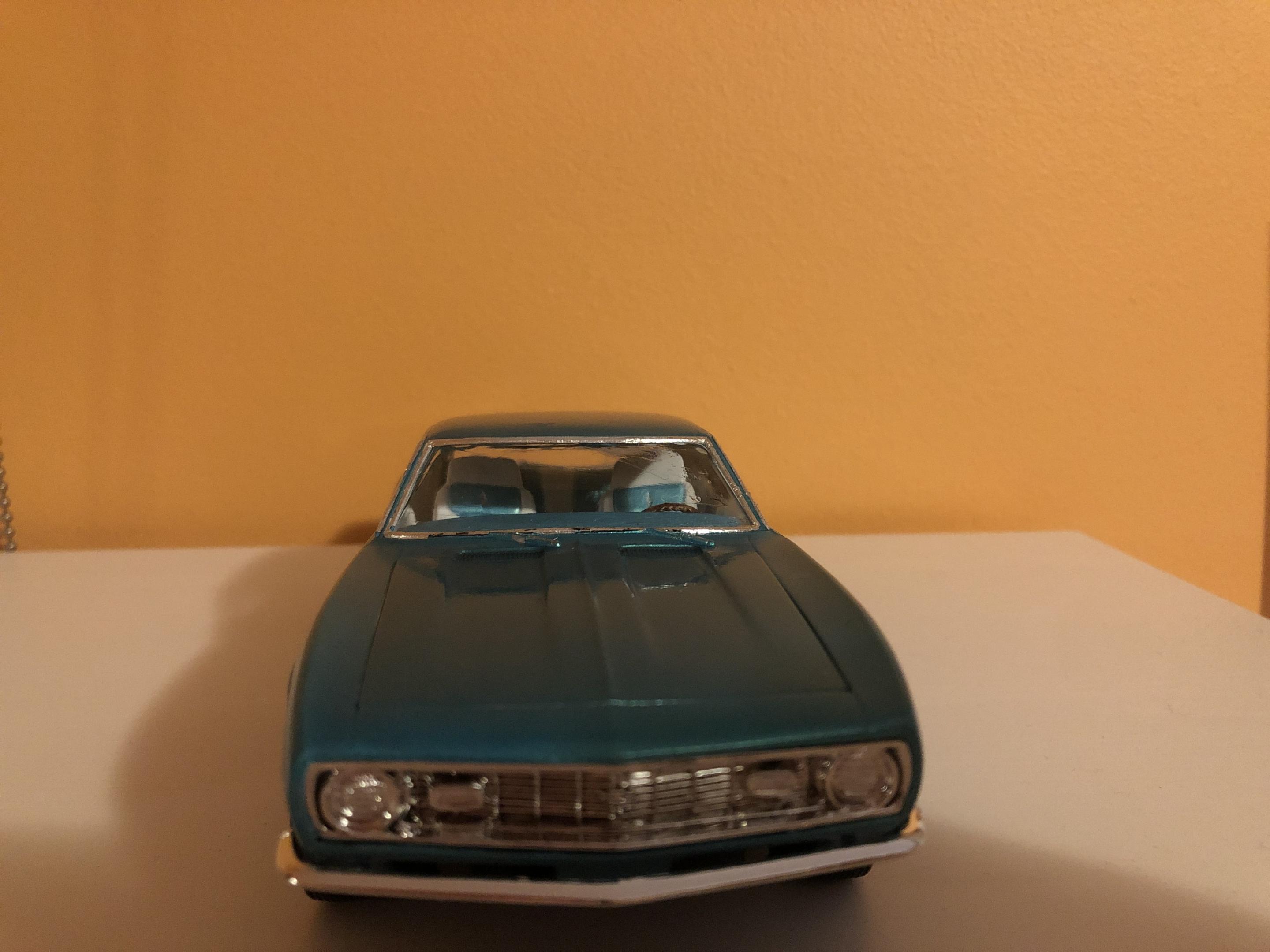 Hello! This is my first post of any of my models on this site, so be advised: Noob alert! I made this car for someone, the first time anyone has ever ASKED me to do a car, so this was actually pretty fun. The decals that came with the kit were AWFUL so I didn't use them. The colour is Mission Models Iridescent Turquoise. Note: I have never ever used bare metal foil before, and I do not like it. It was good to try, but I will never be touching it again.