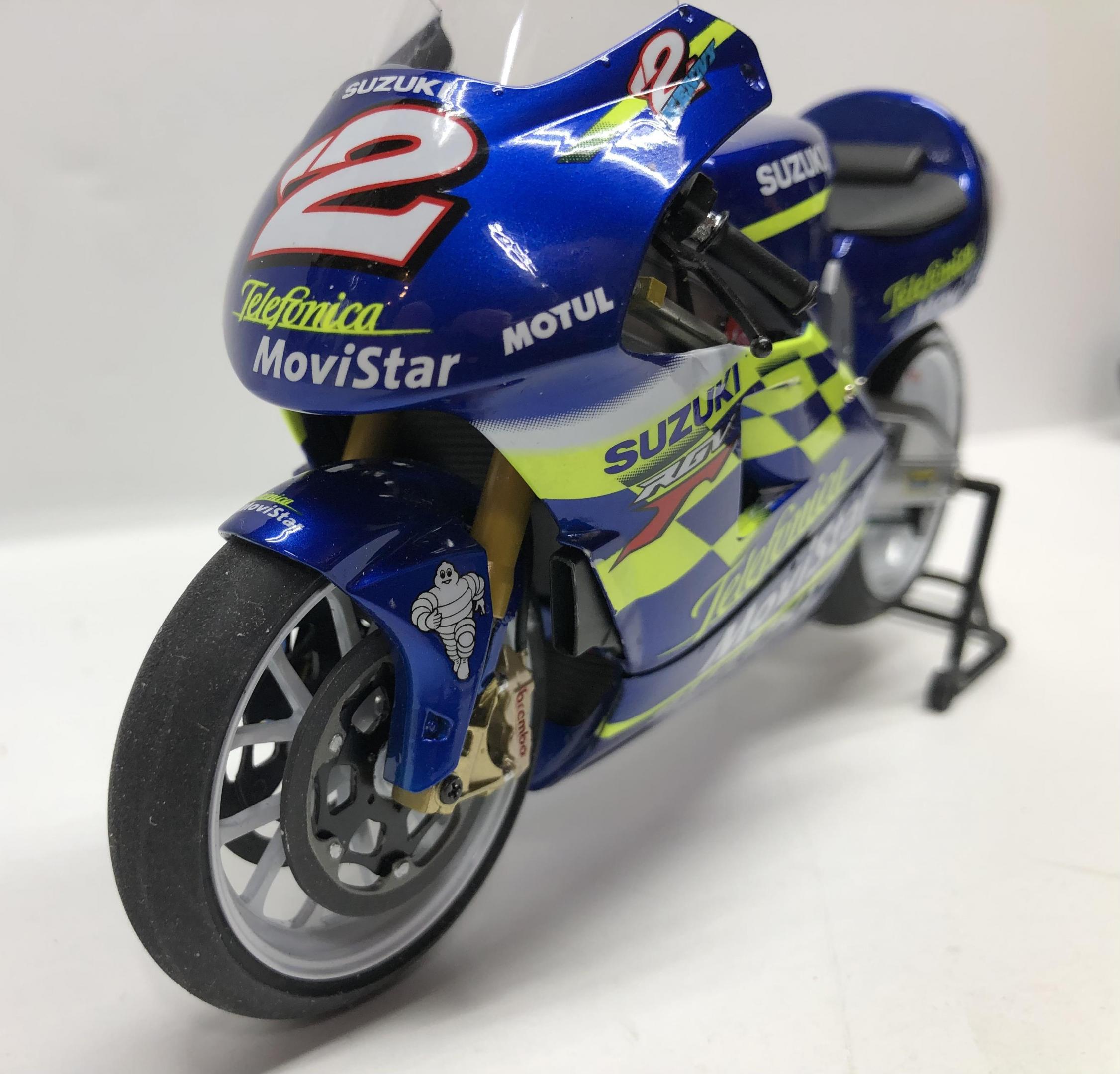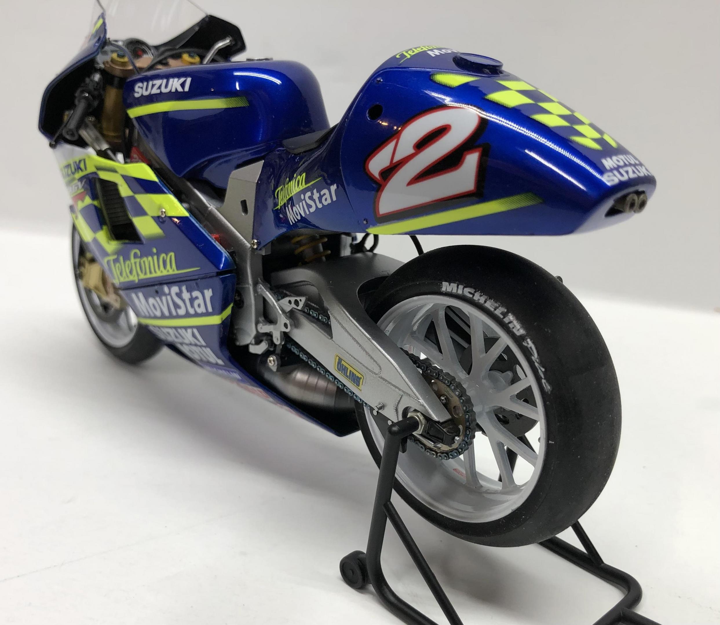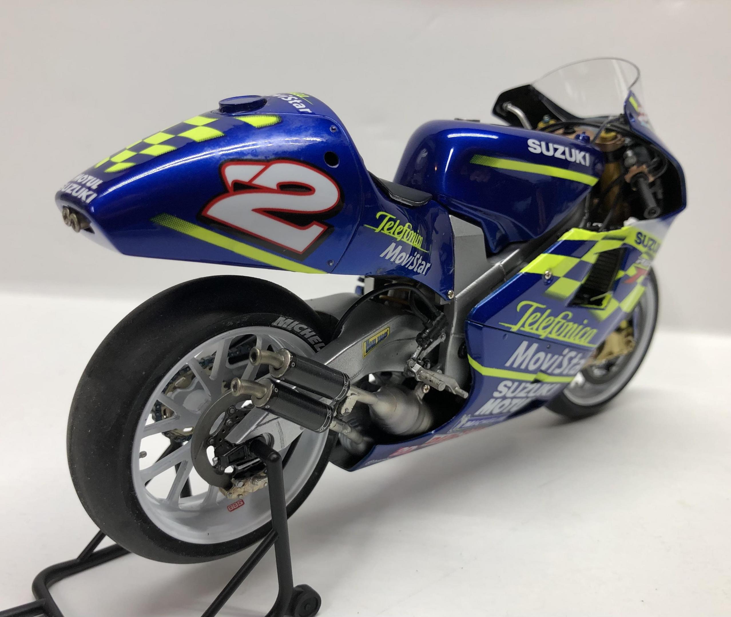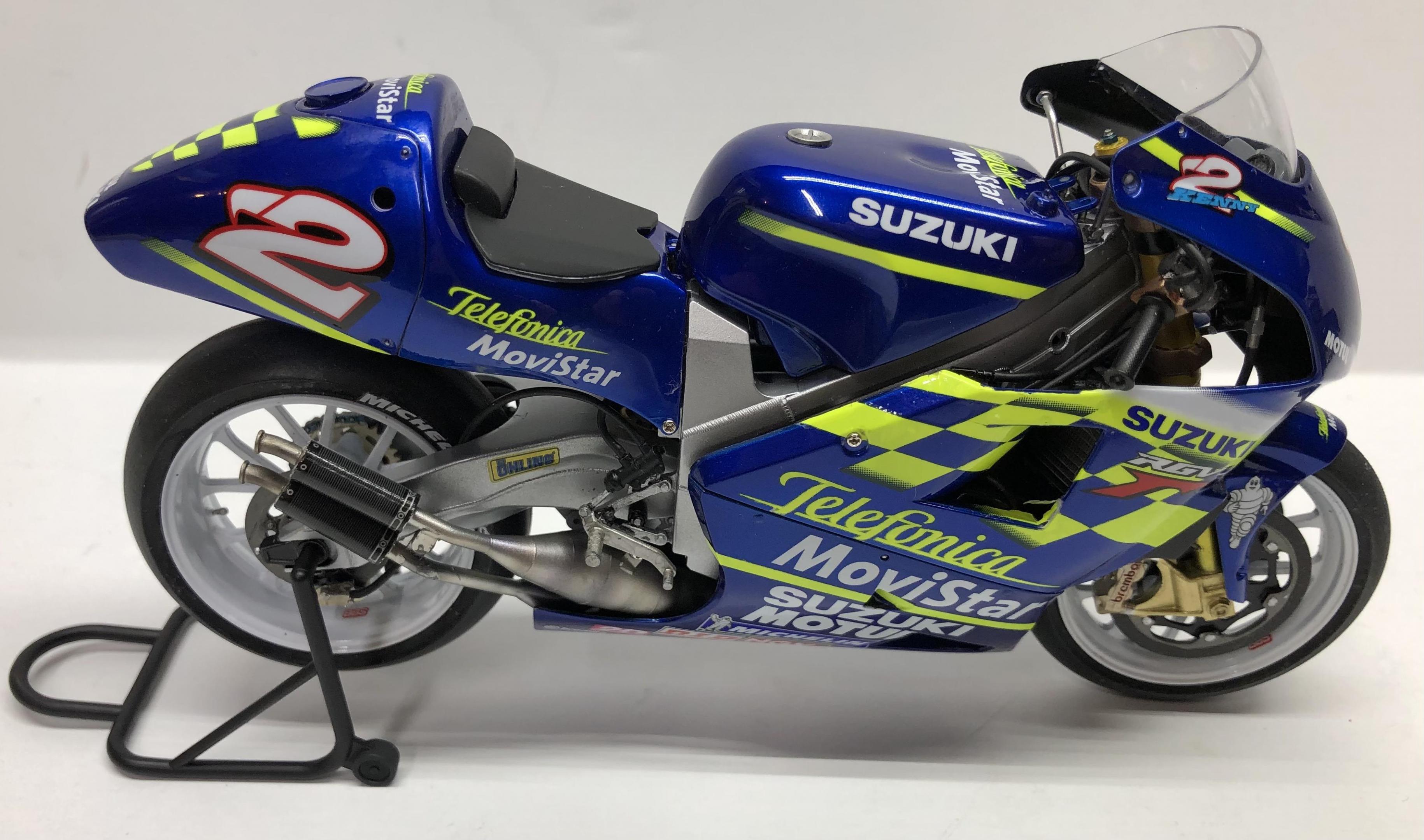 I had fun with this kit. It went together great. The primary blue is the Zero Paints Telefonica set and the 2K clear is Gravity USA. I know people have had trouble with the service from Gravity USA but my last 2 orders were delivered in less than a week and the paints really are good. The old kit decals worked fantastic with absolutely no problems. All other paints were Tamiya lacquer and acrylic for the most part. Here are some pictures. The decal on top of the fuel tank is upside down. Oh well.