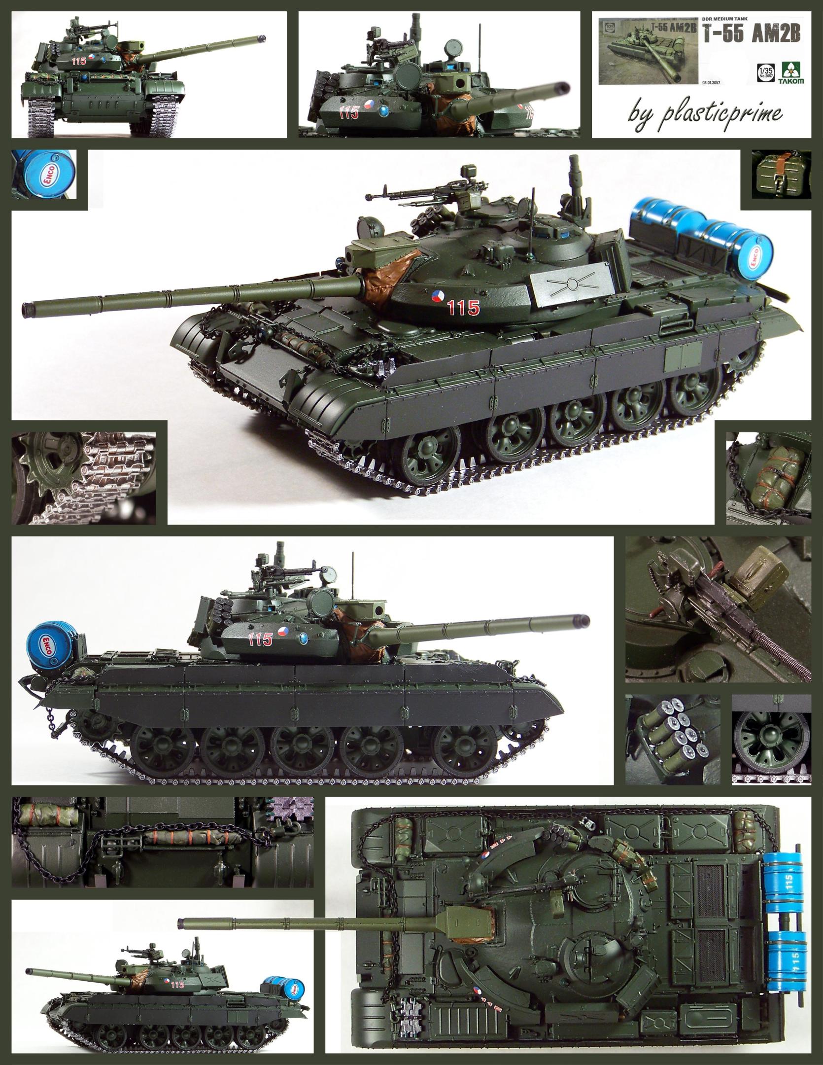 This kit truly played the part of “The Beast of 1,000 parts” oh so well. (It may not actually have been 1,000 pieces, but it had to have been pretty darn close.) If you enjoy fiddly little parts with no discernible glue points, then this kit is for you! And as an added bonus, some of the intricate detail you’ll labor so diligently to complete will be – surprise! - completely covered up by subsequent assemblies! Way cool! I found this kit so maddingly frustrating that there were numerous times when I nearly chucked it – and everything else I have associated with the hobby – into the trash. However, I persevered and eventually brought the beast to bay. But it wasn’t easy. I gave up on the individual link tracks that came with the kit (after stomping them into the ground with fiendish delight), and finally bought a set of T-Rex tracks which were incredibly easy to assemble and had fantastic detail. The kit supplied metal tow cables were also impossible to fit, so I settled for a tow chain instead that I made from jewelry chain. There were innumerable instances where I drilled itsy bitsy holes in parts and used wire pegs to affix them as there seemed no other way to do it without drowning the darn thing in glue. I used rattle cans for almost all of the painting and carefully used Tamiya masking tape, which came in especially handy for the side skirts. The primary color was Tamiya TS-2 Dark Green, and I used other shades of green for the barrel, turret accessories, stowage, etc., to provide some color contrast. I recalled a T-55 reference photograph in which a single fuel drum was a light blue, and I had some light blue handy, so used it for both, along with some oil-related decals from the spare box (the oil-related company referenced in the decals was a US brand that ceased operations years before the T-55 AM2B went into service, but ask me if I care). The psychopaths at Takom that designed this kit should be forced to build it themselves – would serve them right. Main lesson learned from this build? Easy! - it’s only Tamiya armor kits from now on!