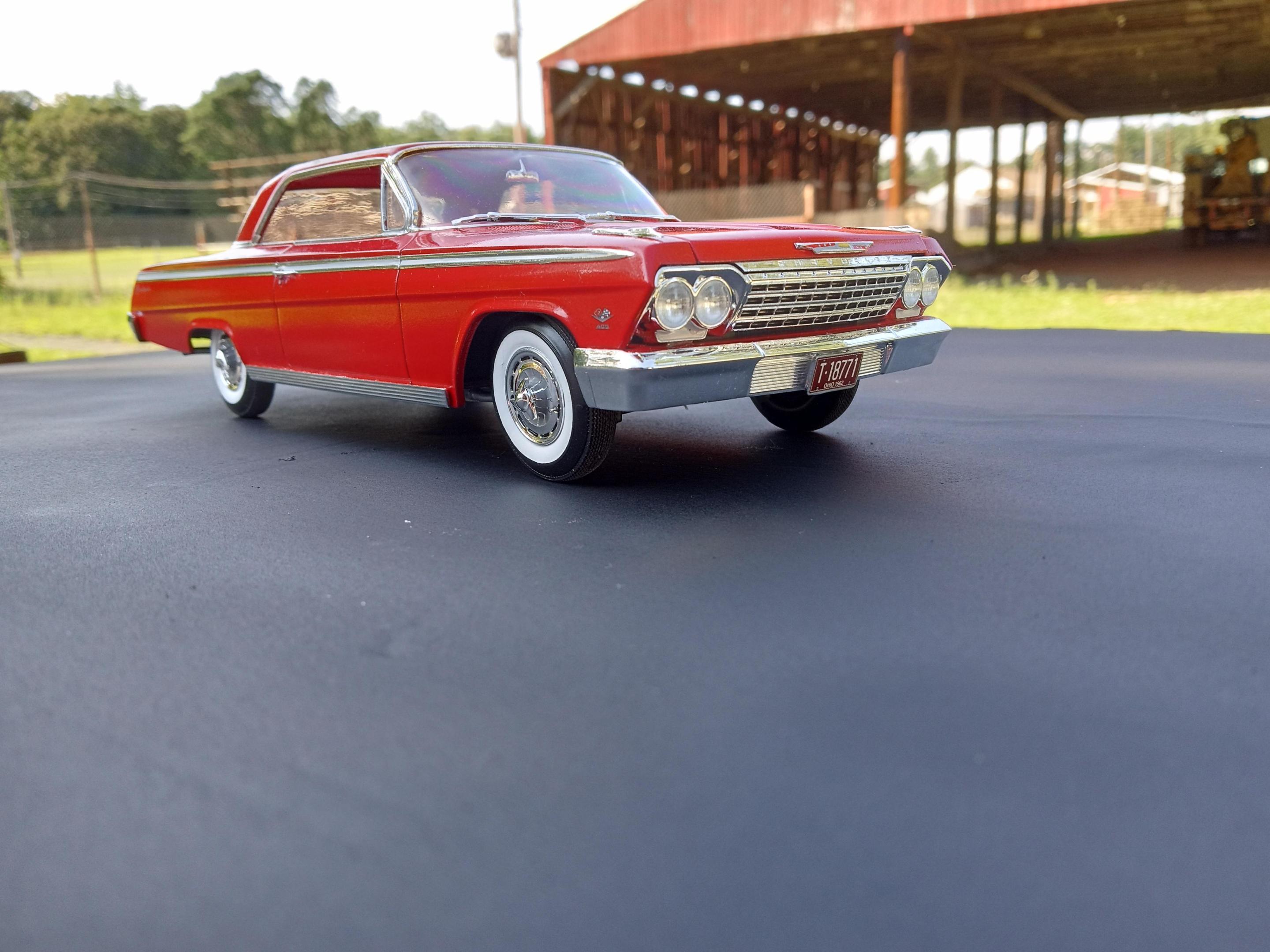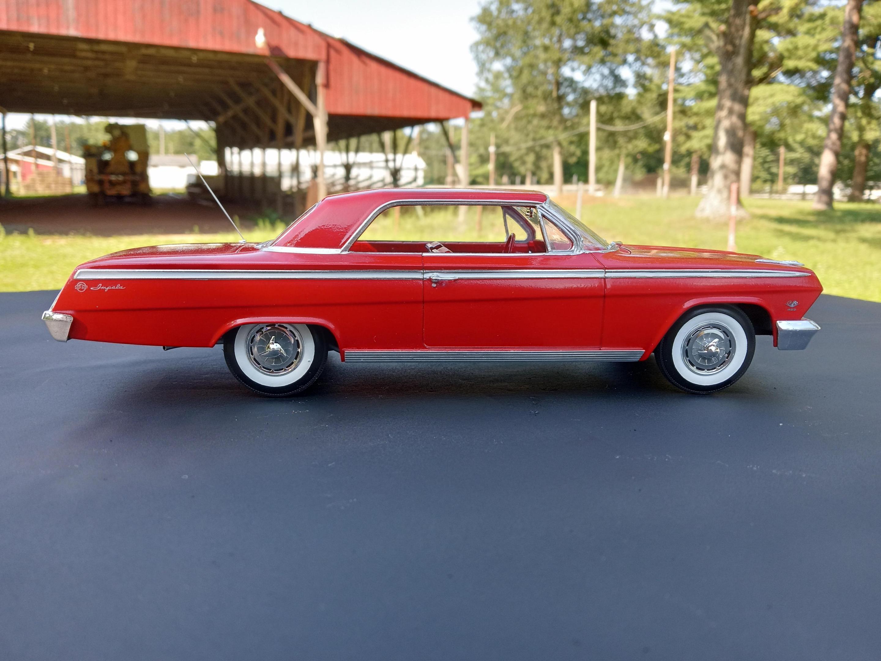 Fresh from the bench, an out of box 62 Impala. Added antenna, and wide white walls. Not so enthusiastic about them, but didn't want a blackwall either.