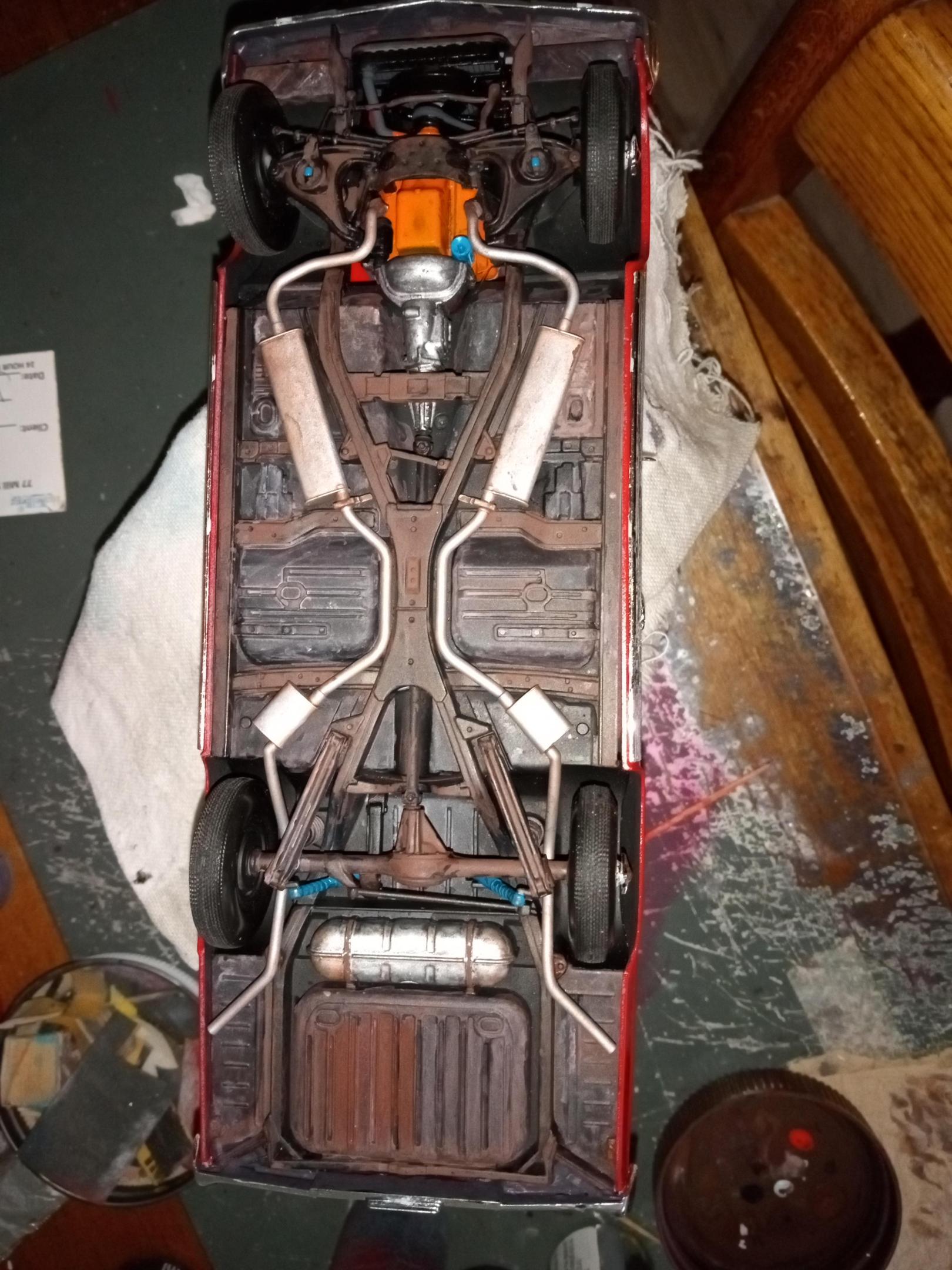 Here, we have the latest release of the AMT 62 Impala SS convertible. Very detailed kit without a whole lot of fit issues. In my opinion this is one of AMT's better kits. One error that I noticed was in the molded rear emblem on the passenger side rear quarter panel. The "SS" should be at the rear instead of the front. They got the decal for it right, but when you go to overlay it, it's reversed! I should have BMF'd the emblems before I applied the decals, but for now I'm calling it done. I may go back and BMF it and paint in the details if I get the urge. Good enough for the shelf.