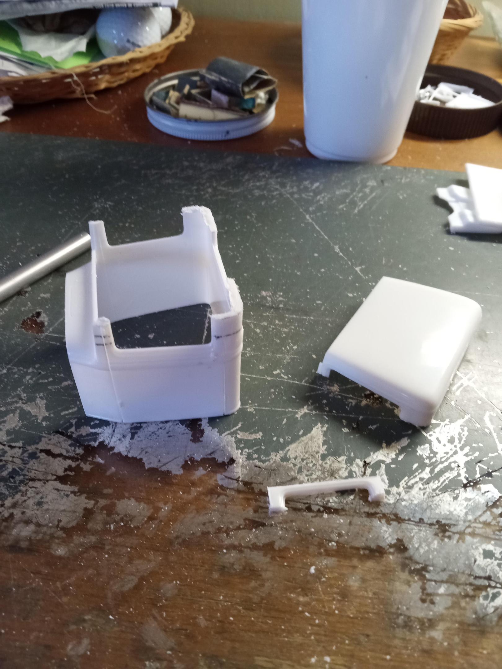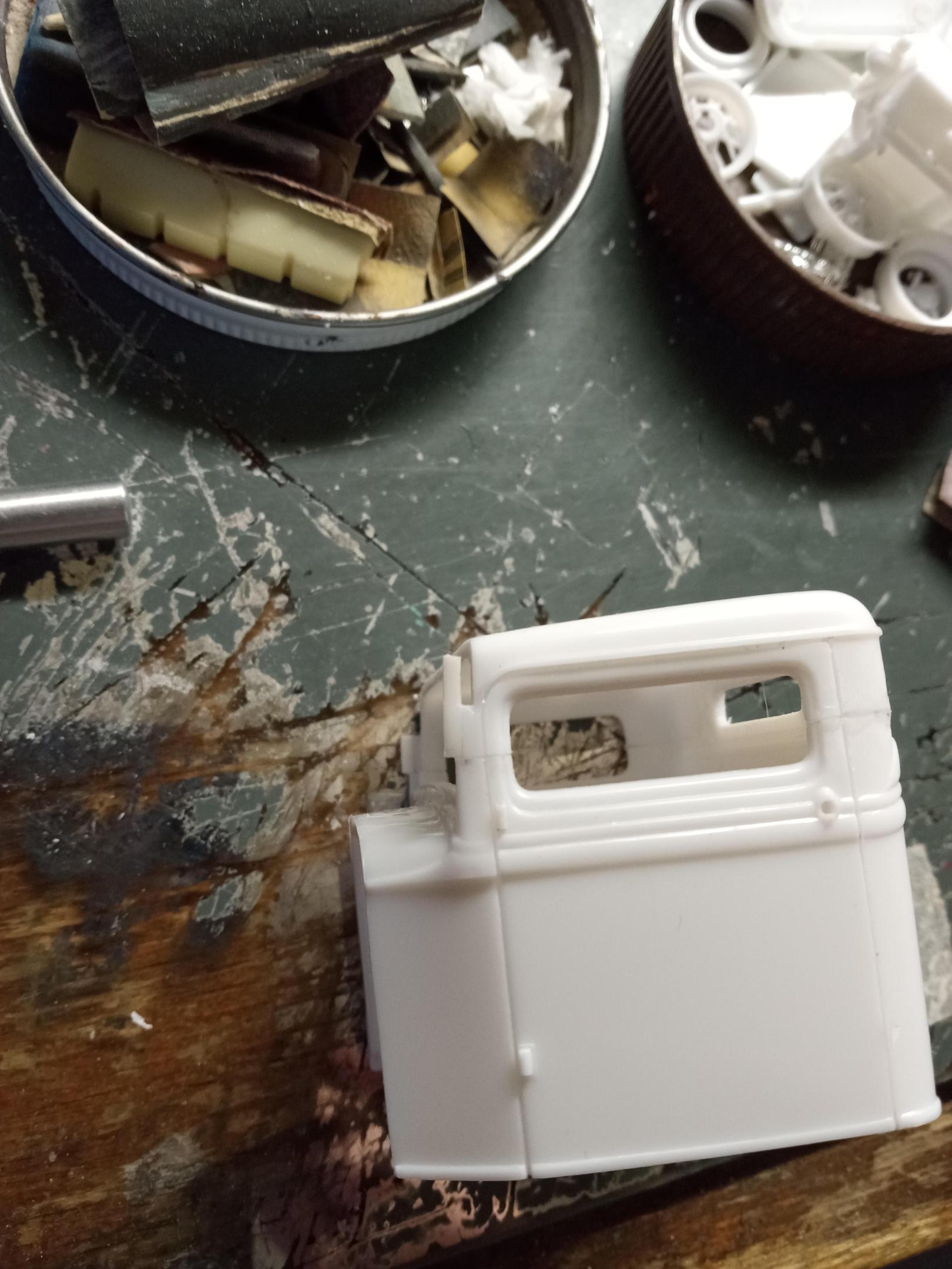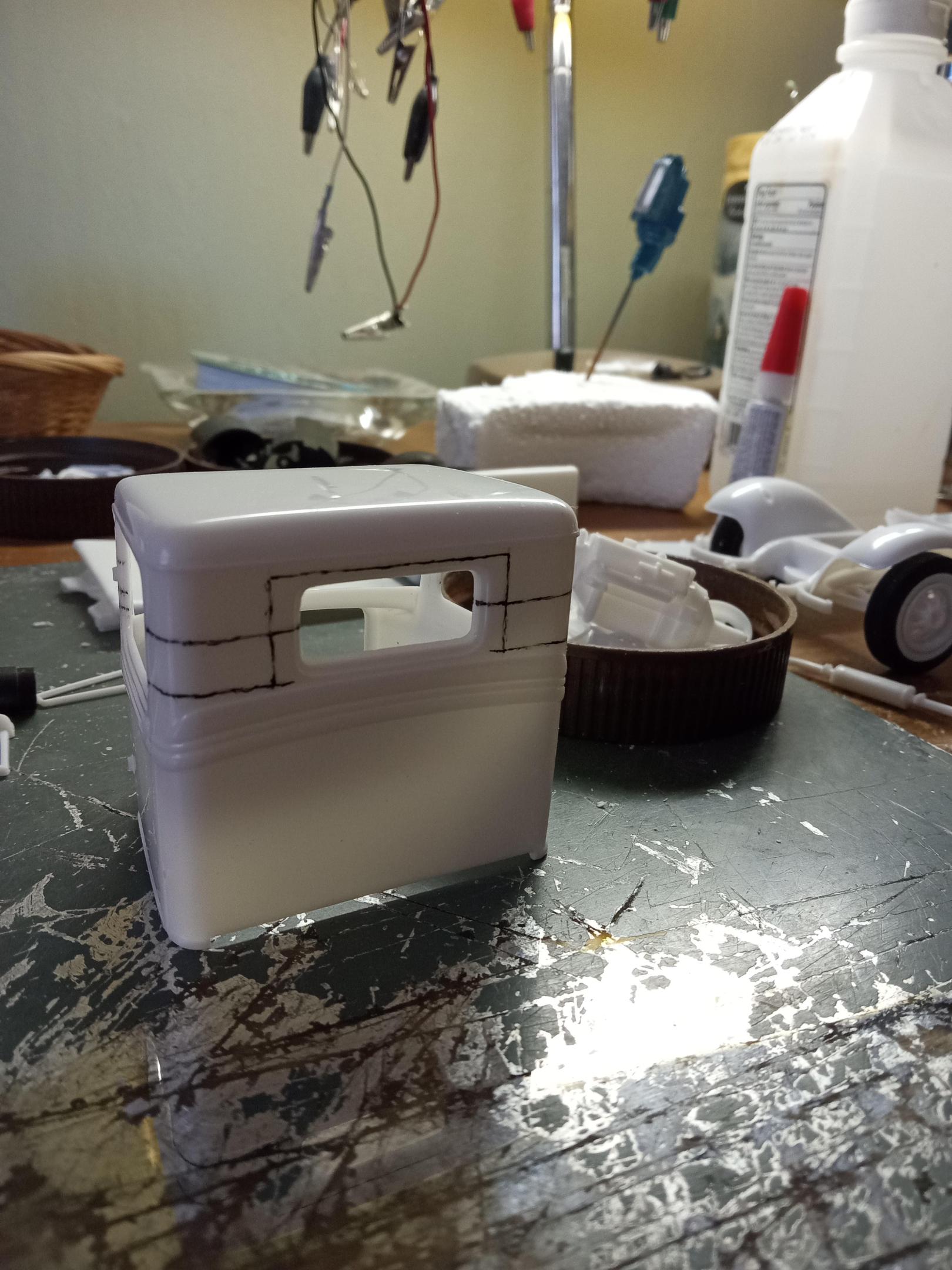 Marking the cab. I chose to chop this one because its basically a 6 scale inch vertical drop. Easy peasy. In order to preserve the body lines the bottom half of the rear window will stay in place.