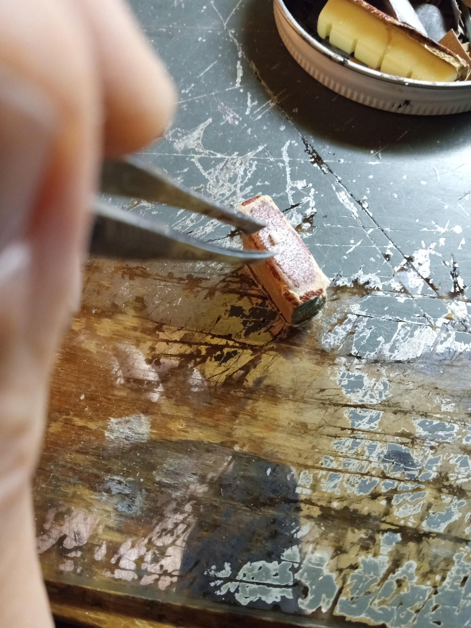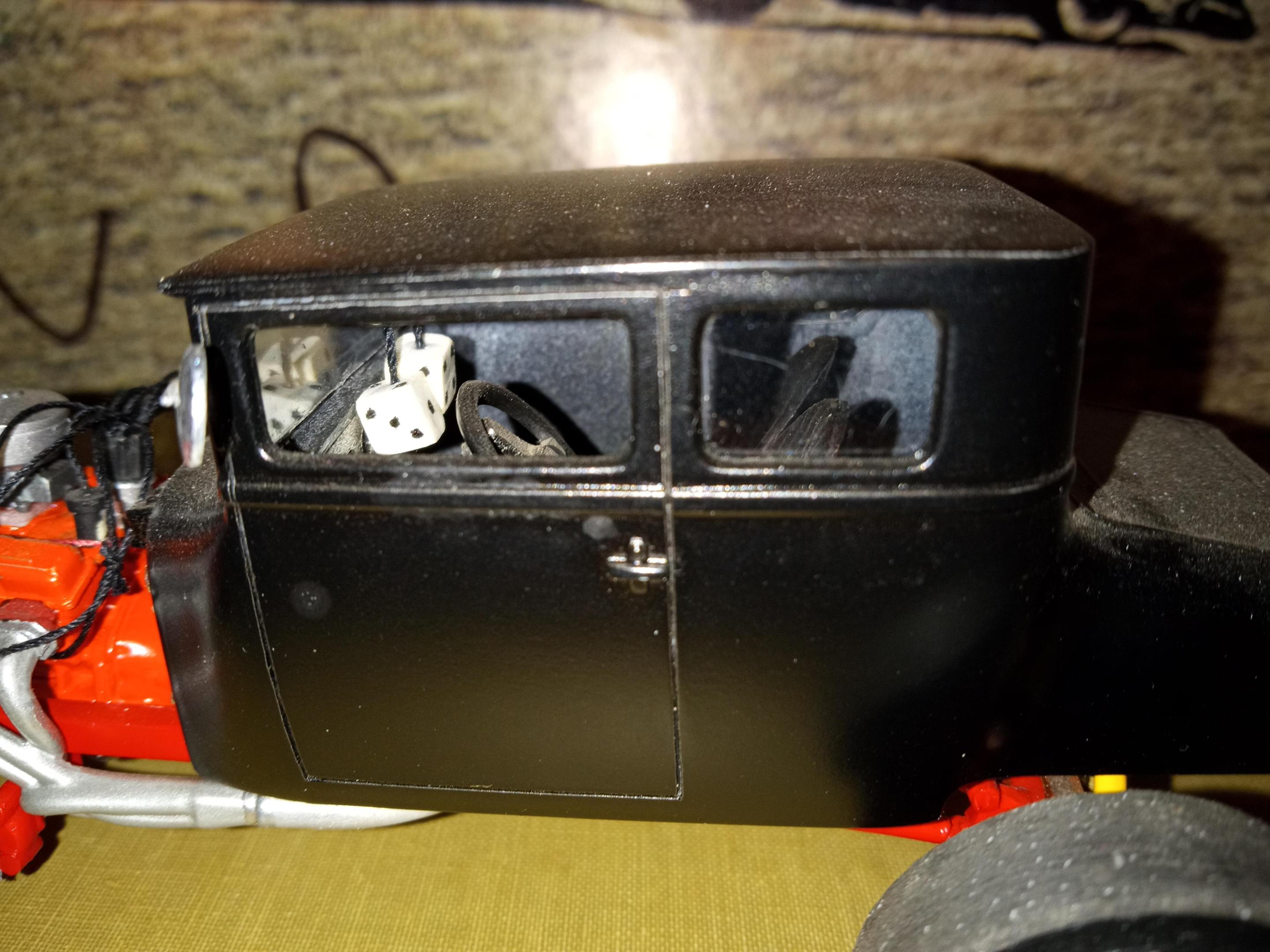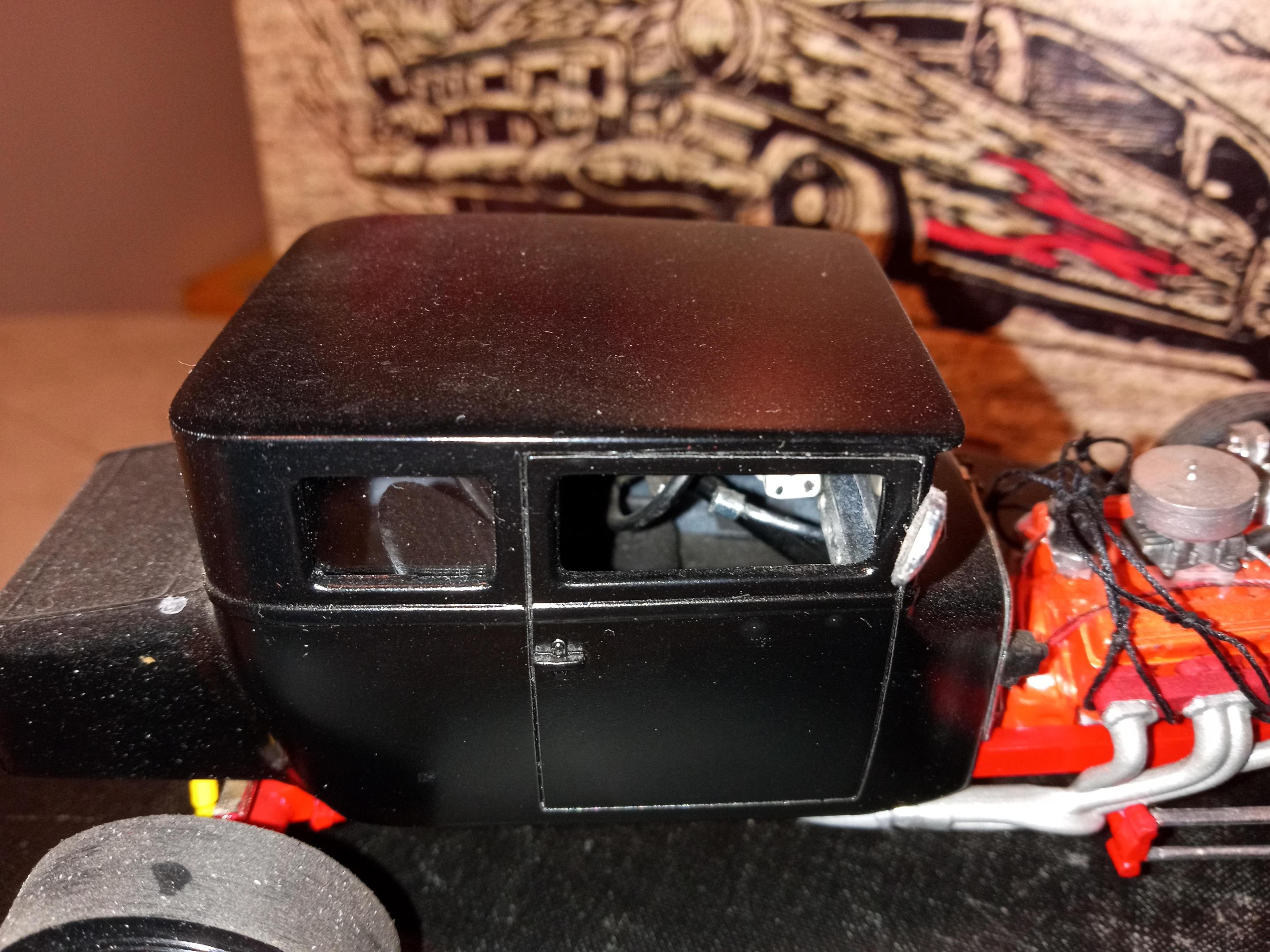 Cutting the windshield frame to fit the chopped opening. Now in real life the wiper would interfere with the shortened frame. But in modeling life it sort of looks cool in my opinion so it stays in there. 🙂