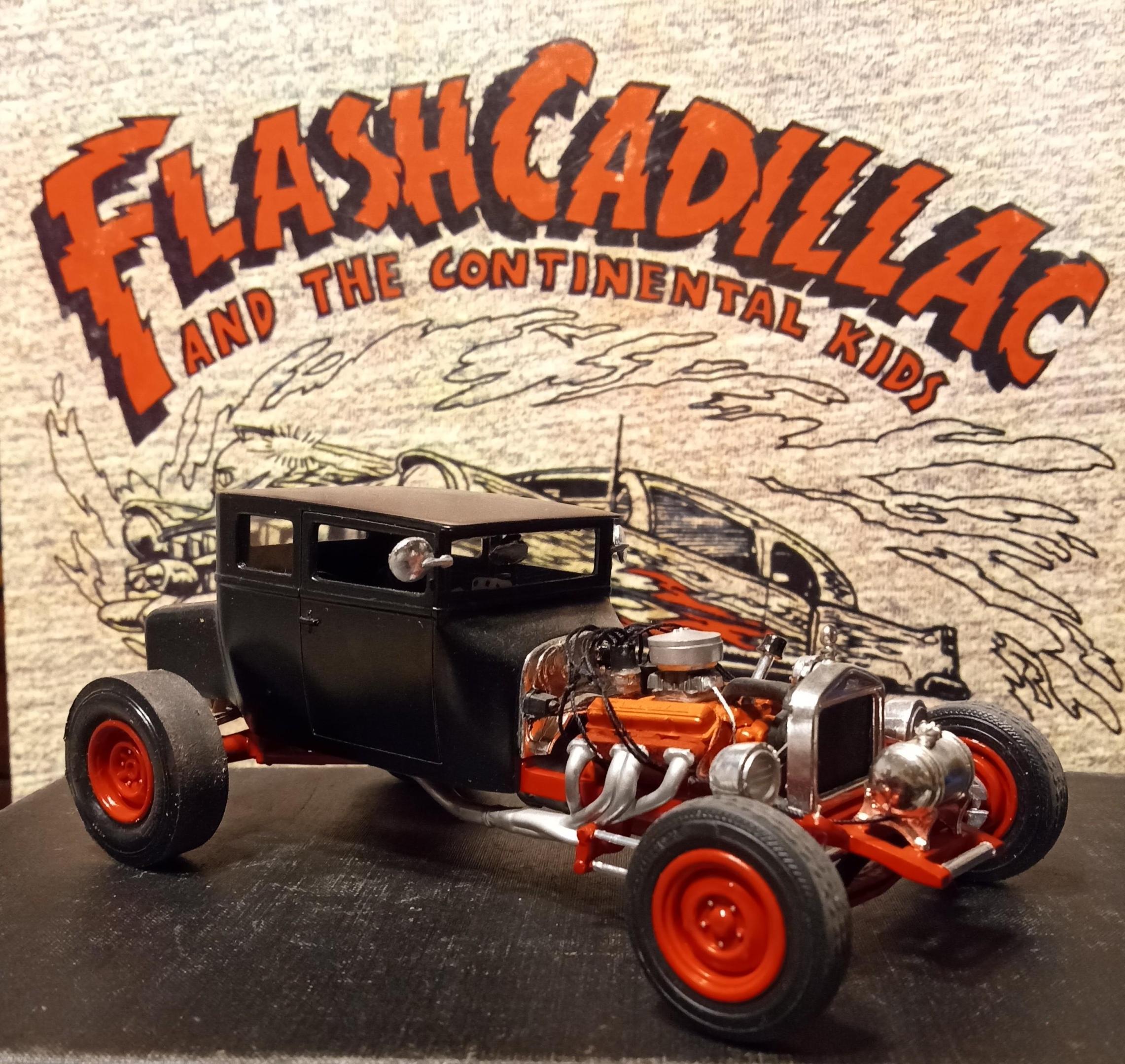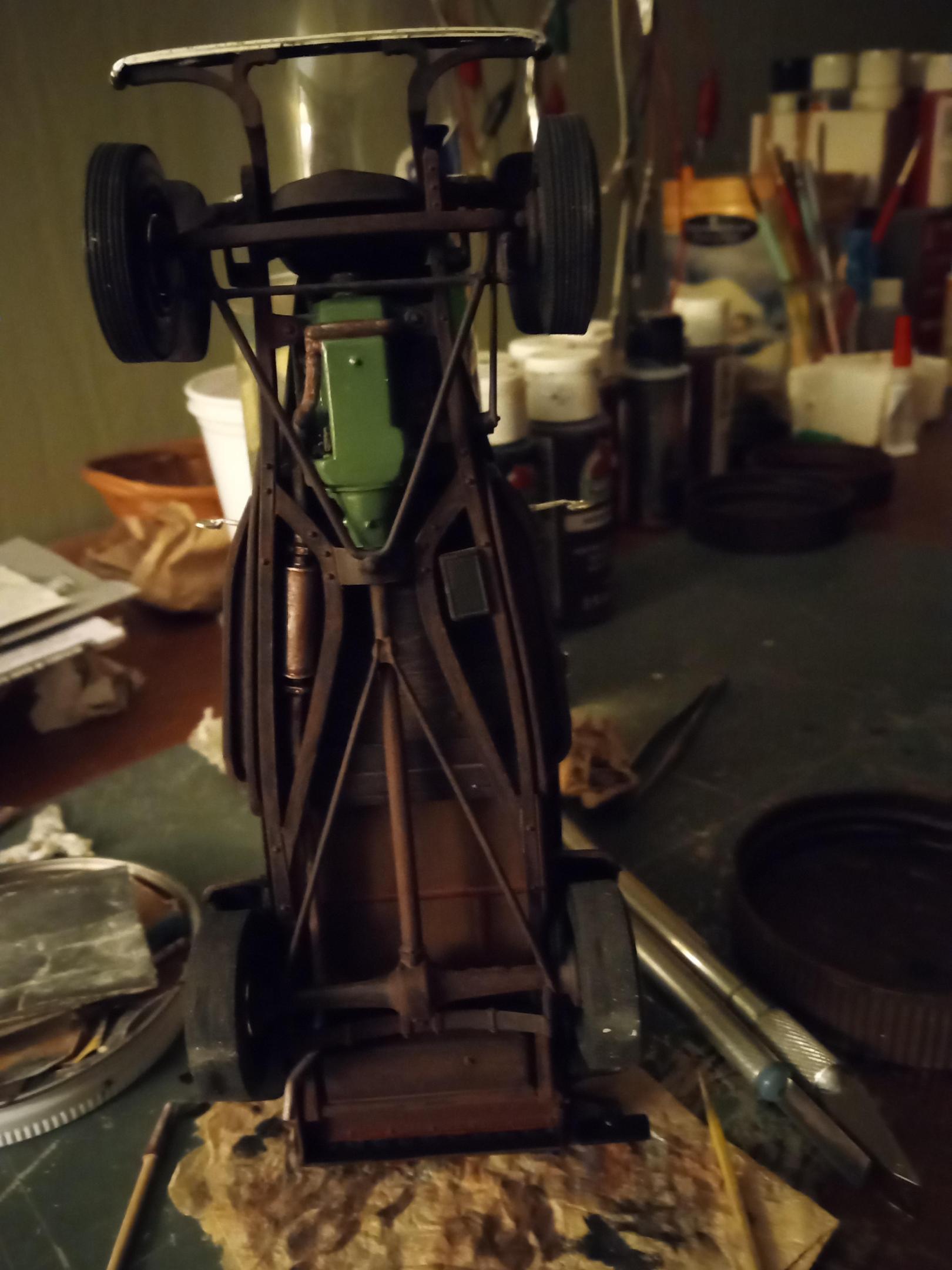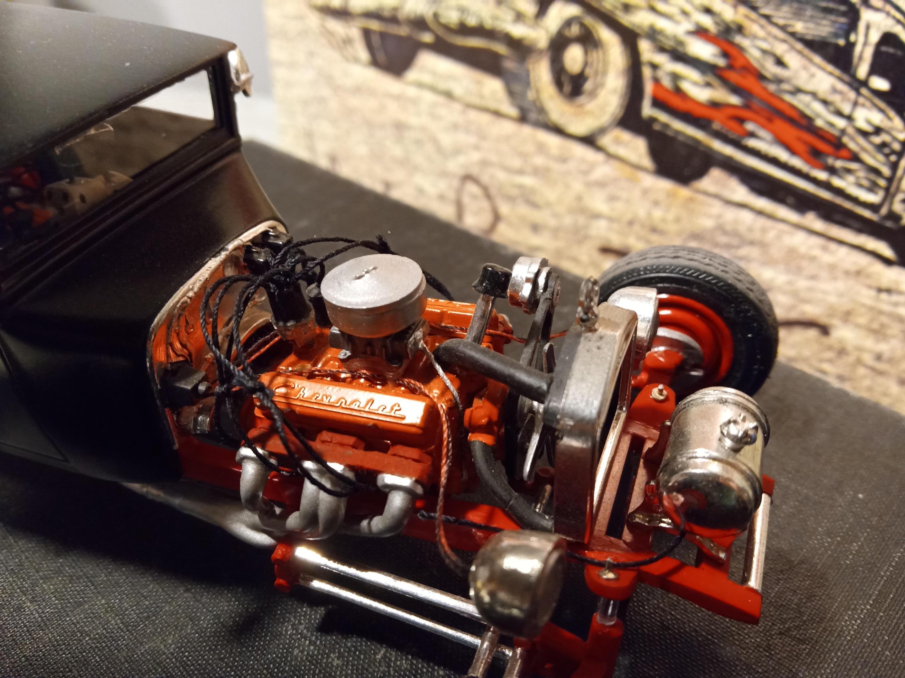 Built decades ago from scrap parts and an original amt body from 1961, I thought about giving it patina but opted to leave it the way it was built. Back then I used thread for plug wires. Frame and front end scratchbuilt. Engine is SBC.