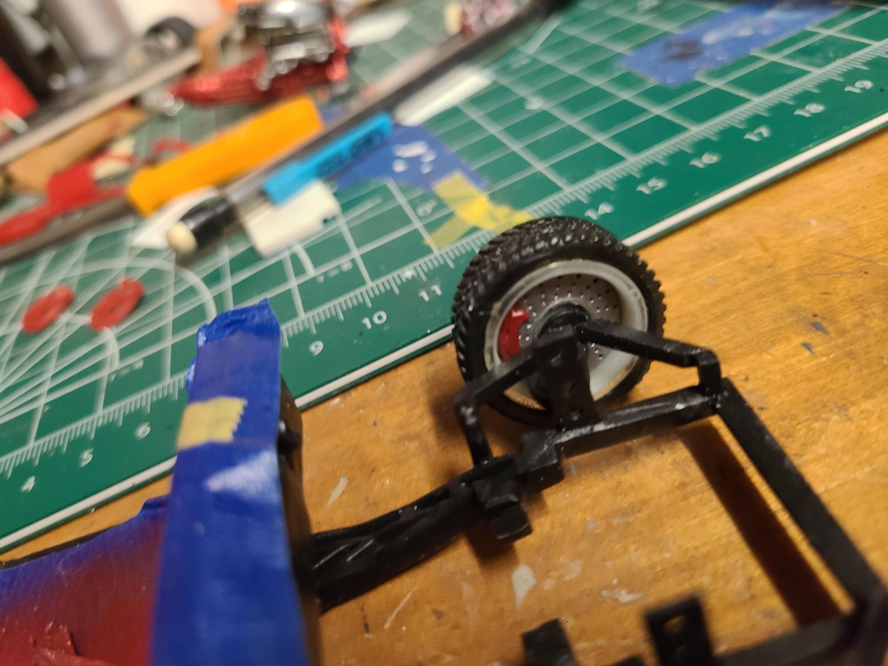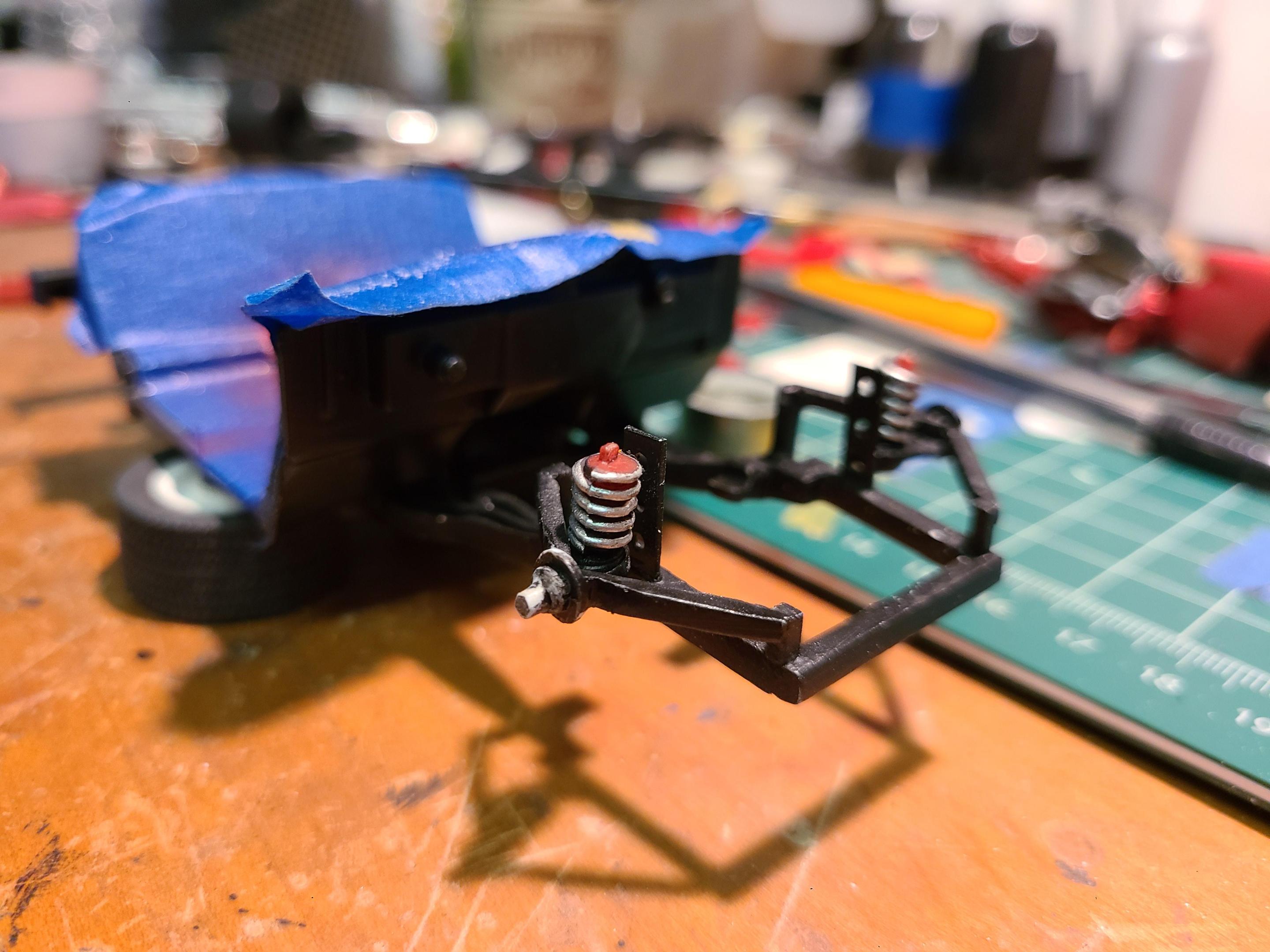 Getting the suspension fit for the rear from the Mach, scratch built the front suspension completely and getting it to the right ride height...