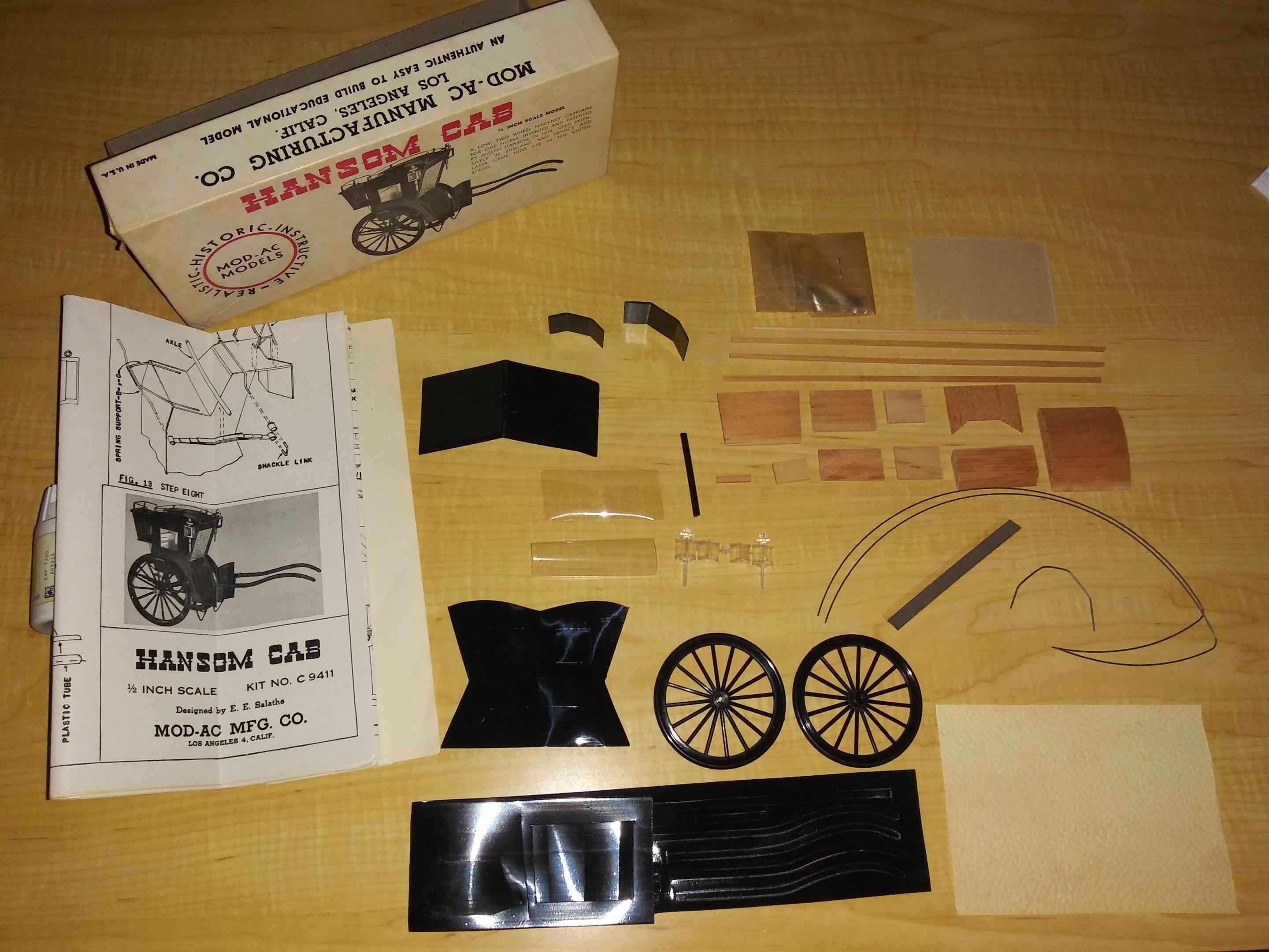 15. The weeks newly acquired kits. I've always liked Speeds Mach 1 even though it's a simplistic kit. The Borsch kit was ridiculously cheap and the seller offered even more of a discount, the '61 Cougar kit was also a cheap kit due to the nature of the box condition, crushed and ripped badly but I was able to bring new live to the cardboard mess. You can see my efforts in the "what pleased me today" The '61 Galaxie kit was because my dad had one when they rolled out of the factory. He had traded in his two tone Black and white '55 Ford vic for it. My mother was furious but when he went back the next day to undo the deal his '55 was already sold. He never forgave himself neither did my Mom.. The other photo is of the 1940's Hanson cab kit I bought with the possible intentions of a crazy Tom Daniels type dragster? But after getting the kit the plastic pieces of the main assembly are wrapped. My thought is all new sheet styrene to duplicate those parts when I get to this future project. ?